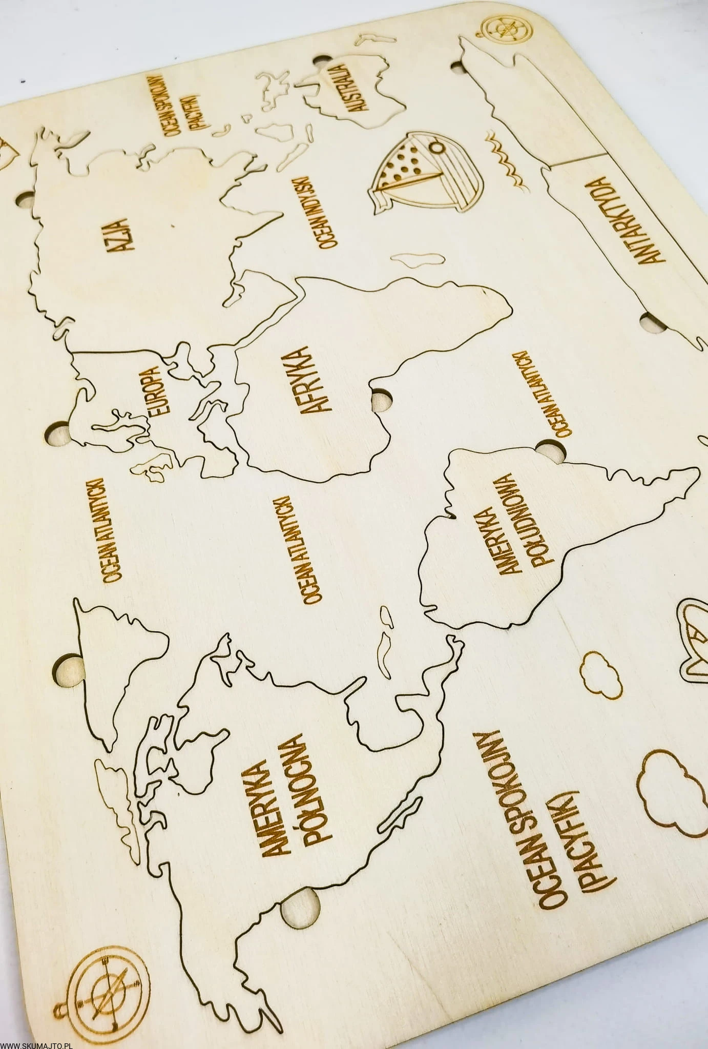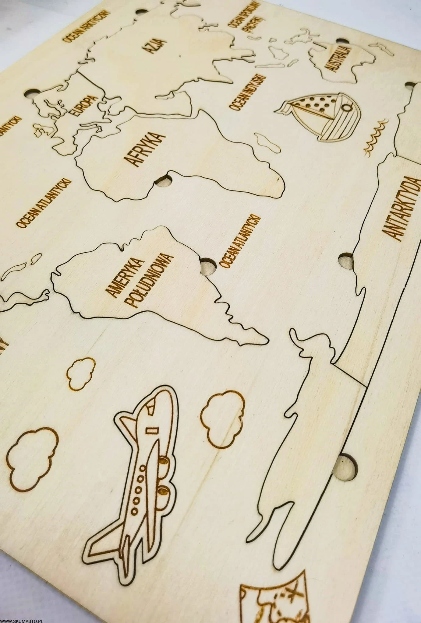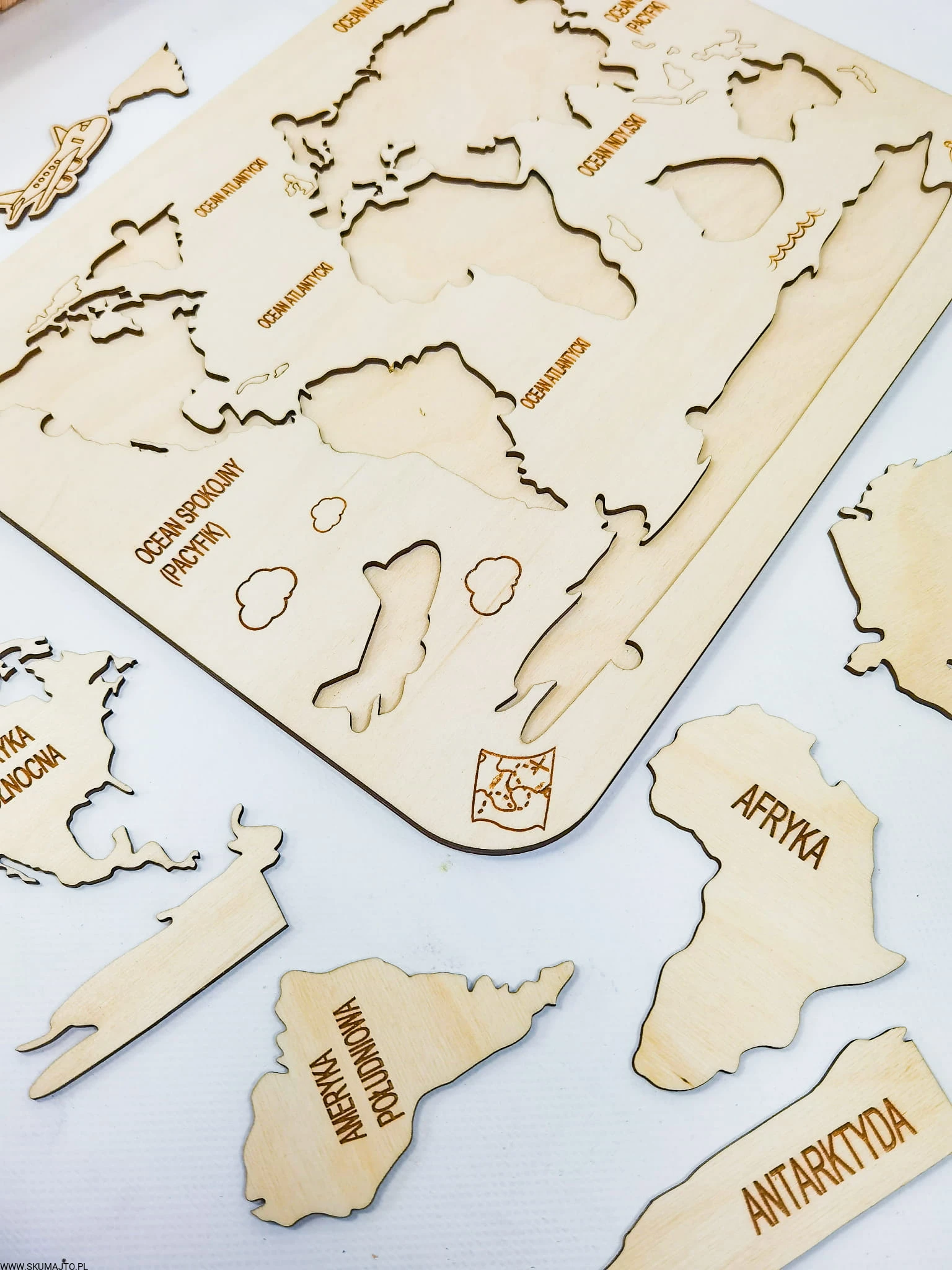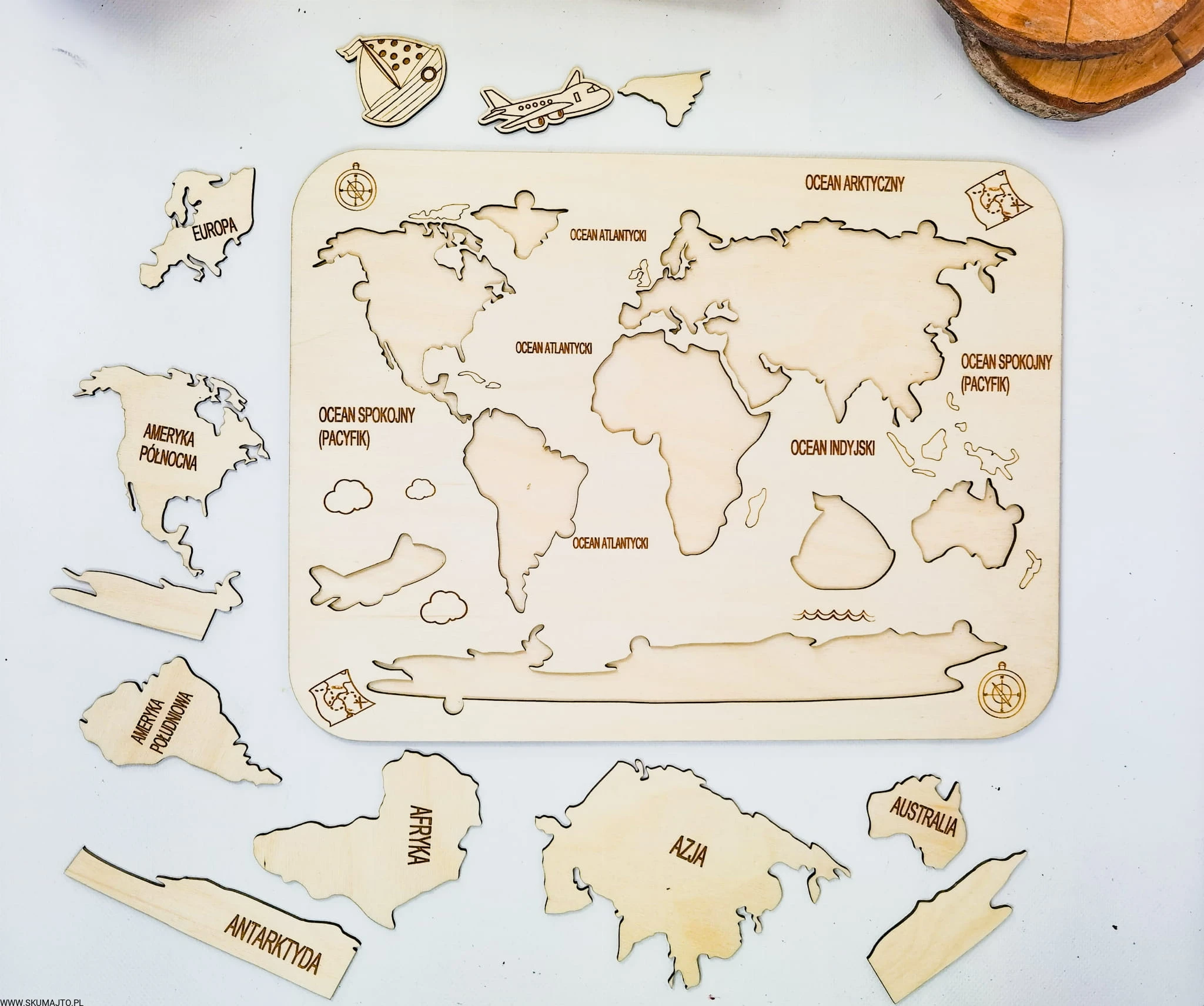 Drewniana Mapa Świata, drewniana mapa, nauka kontynentów