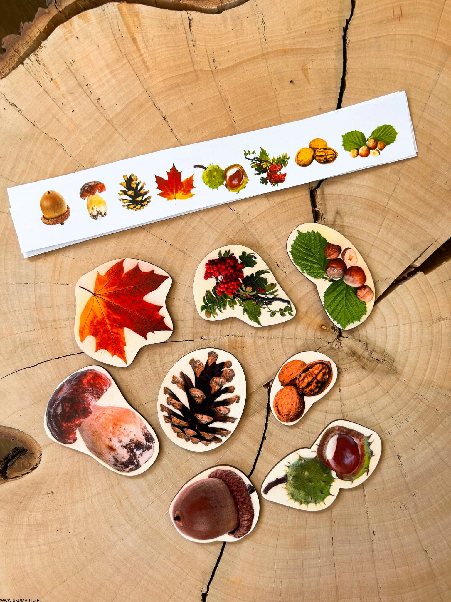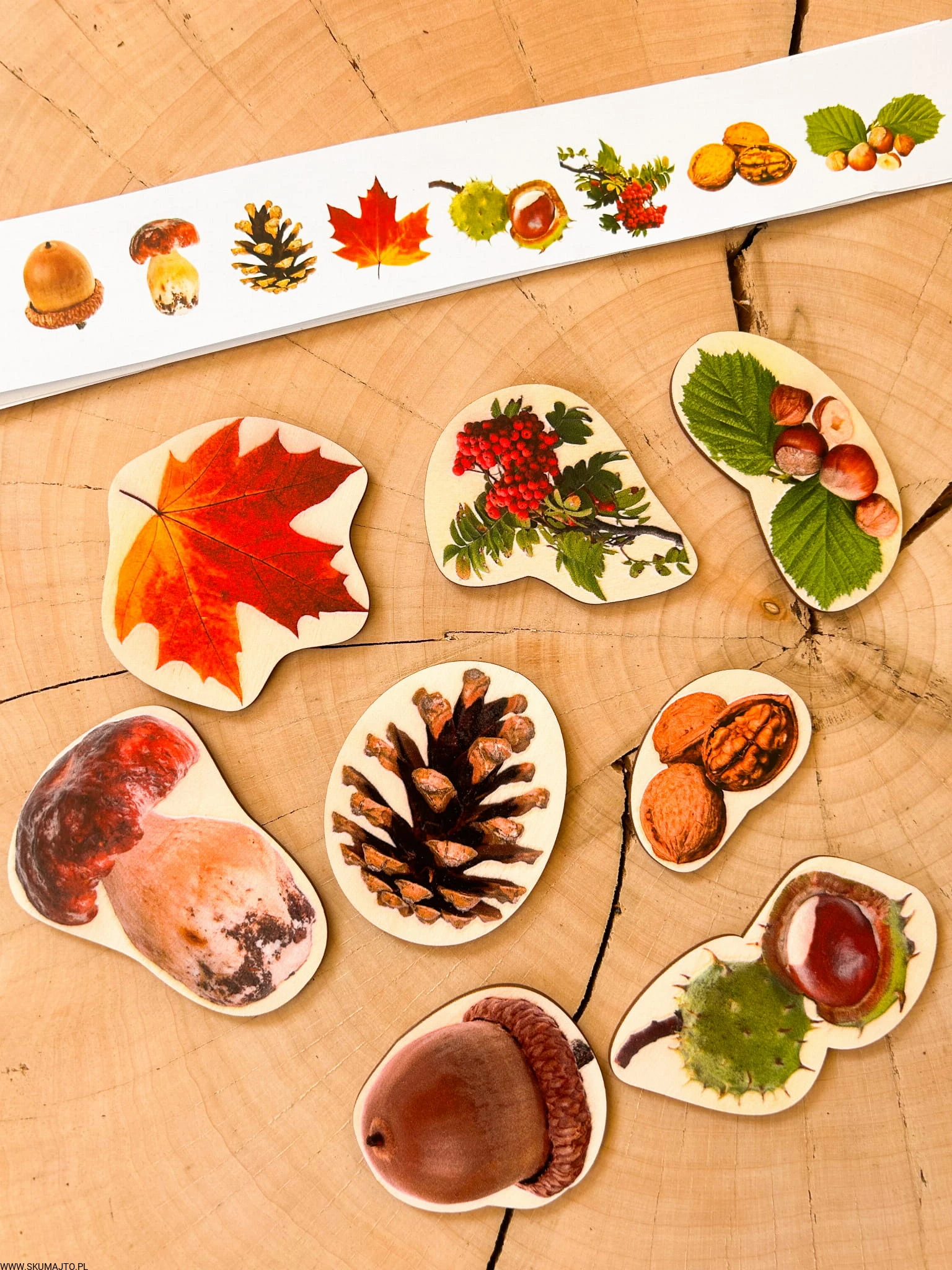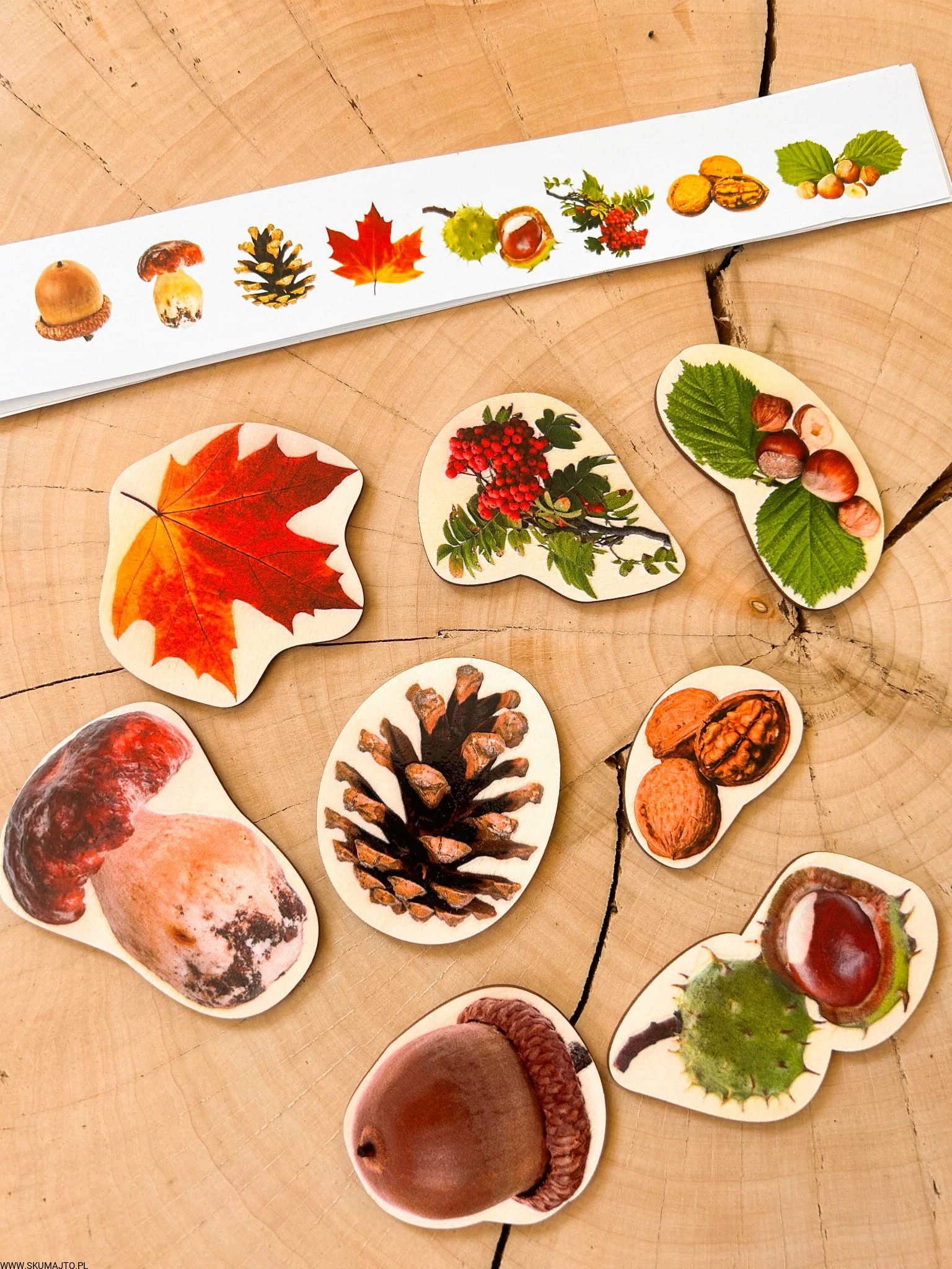 Drewniane skarby jesieni, odwzorowywanie, 8 kolorowych elementów