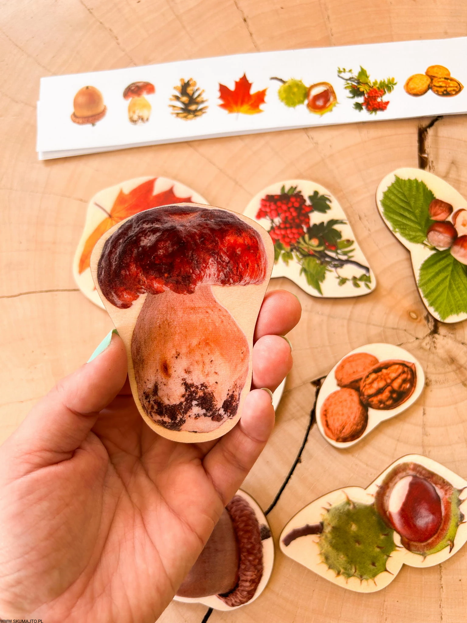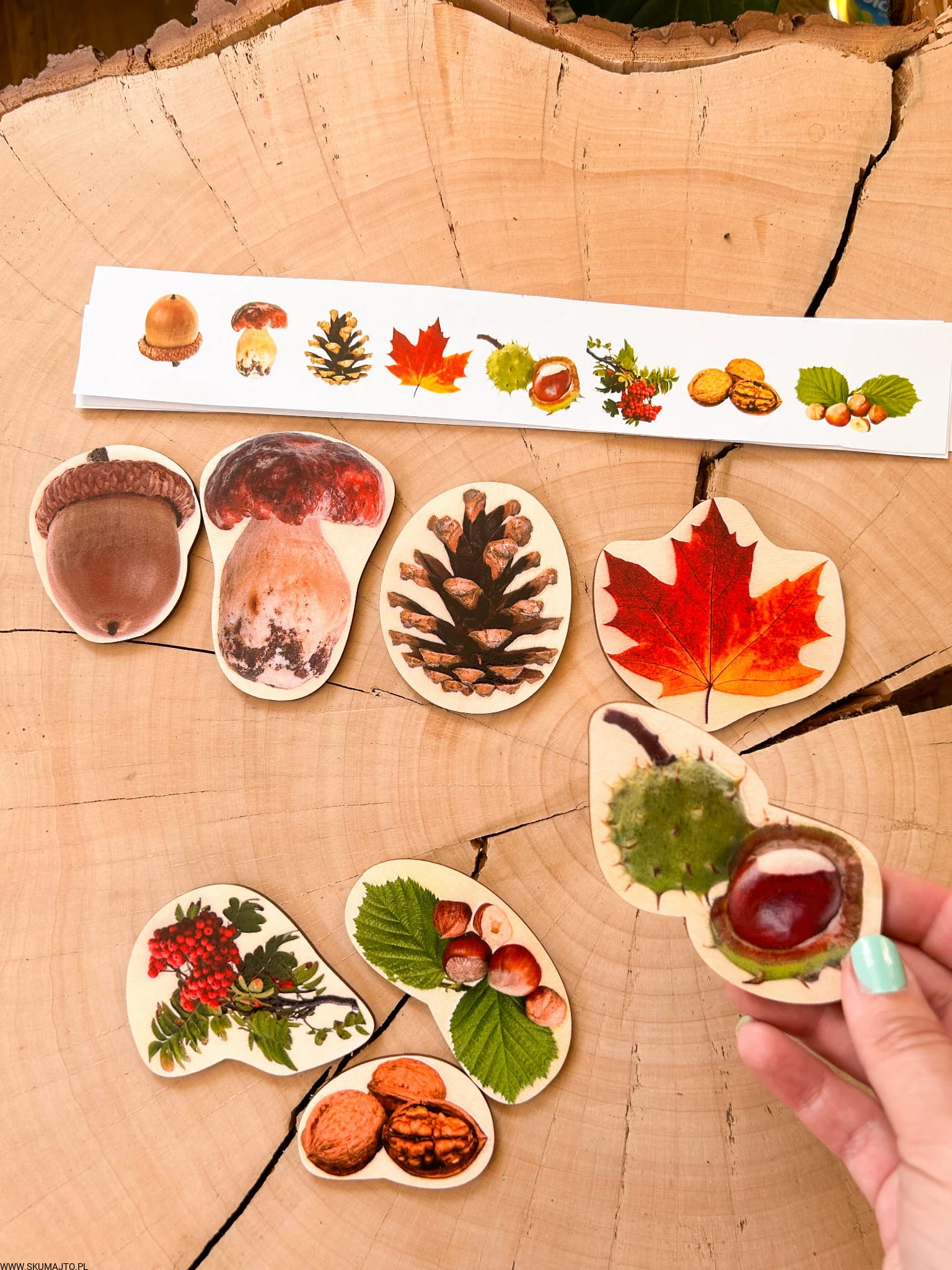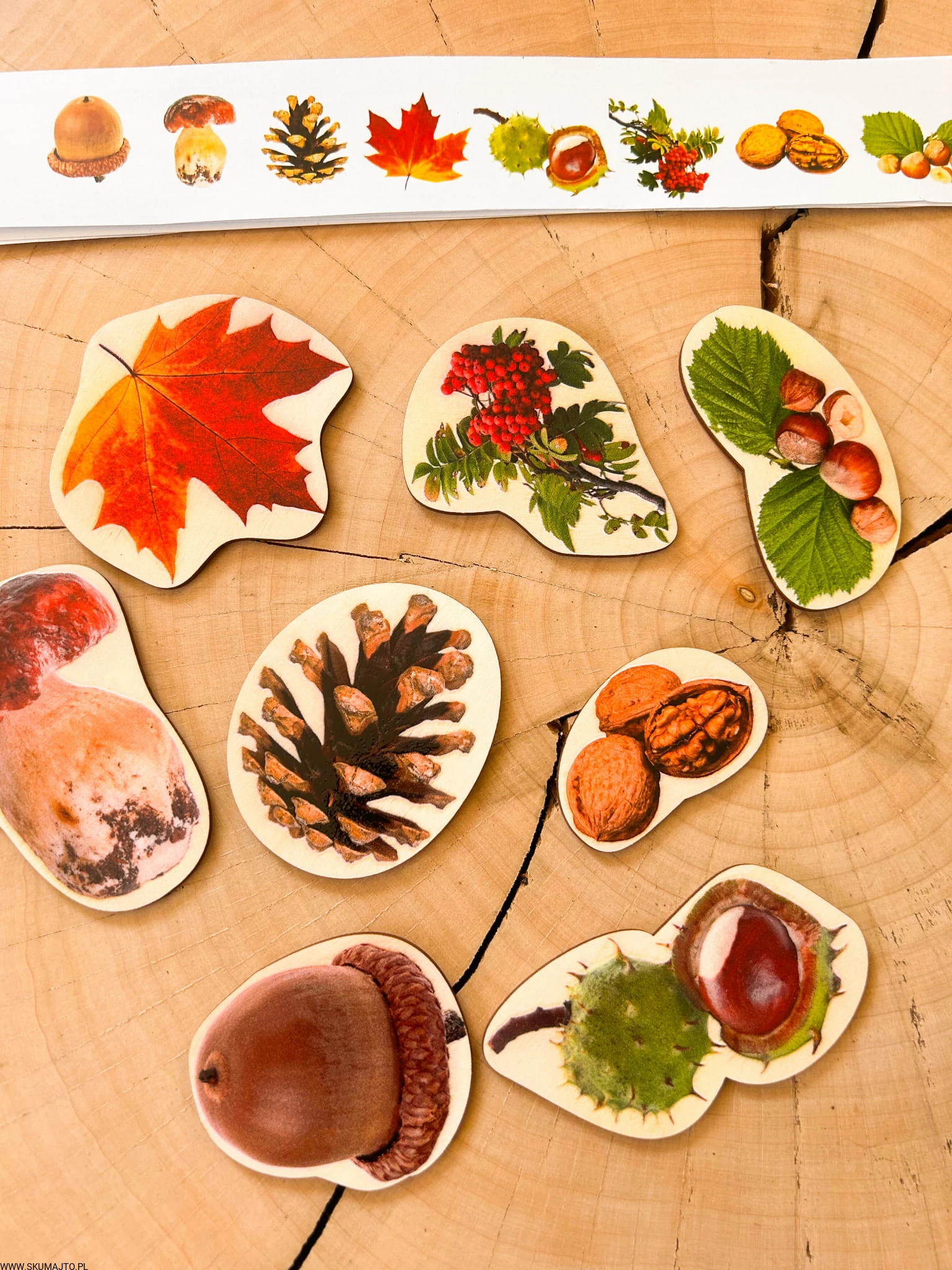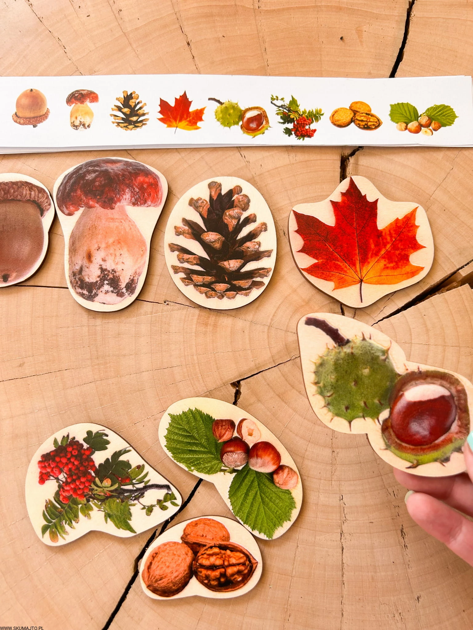Drewniane skarby jesieni, odwzorowywanie, 8 kolorowych elementów