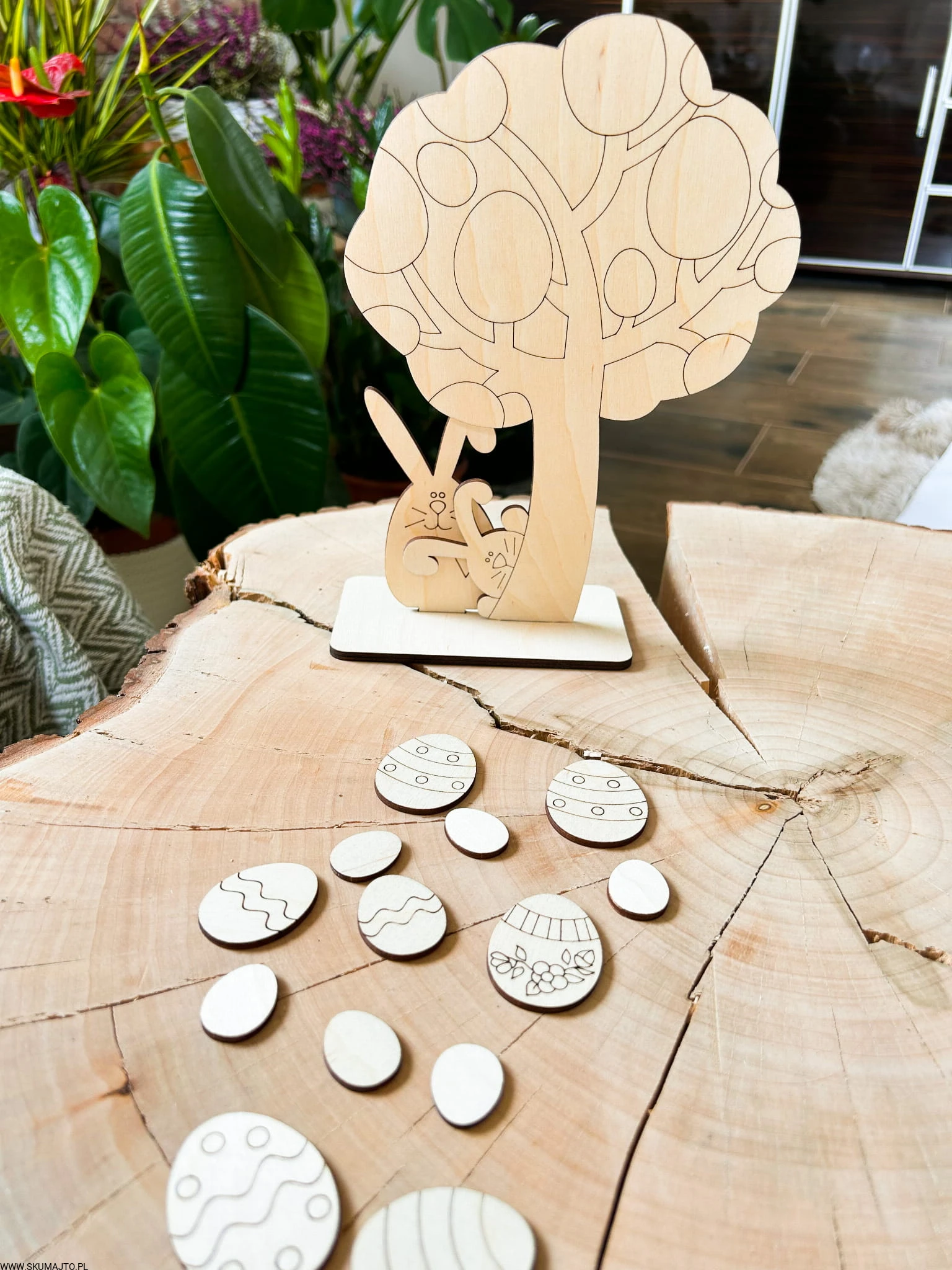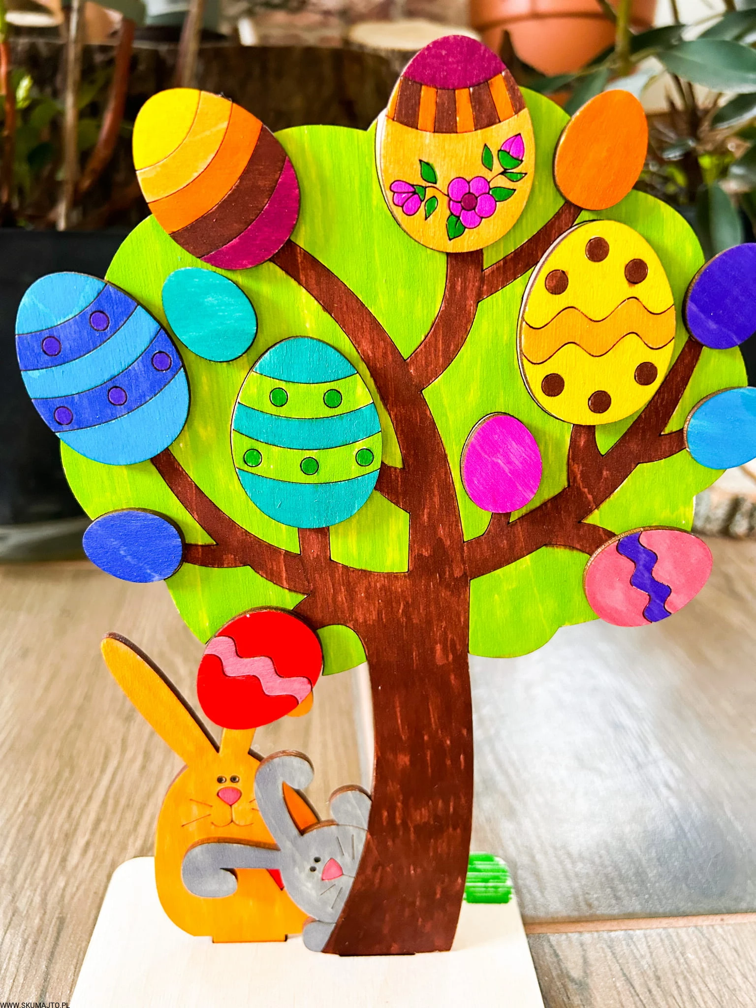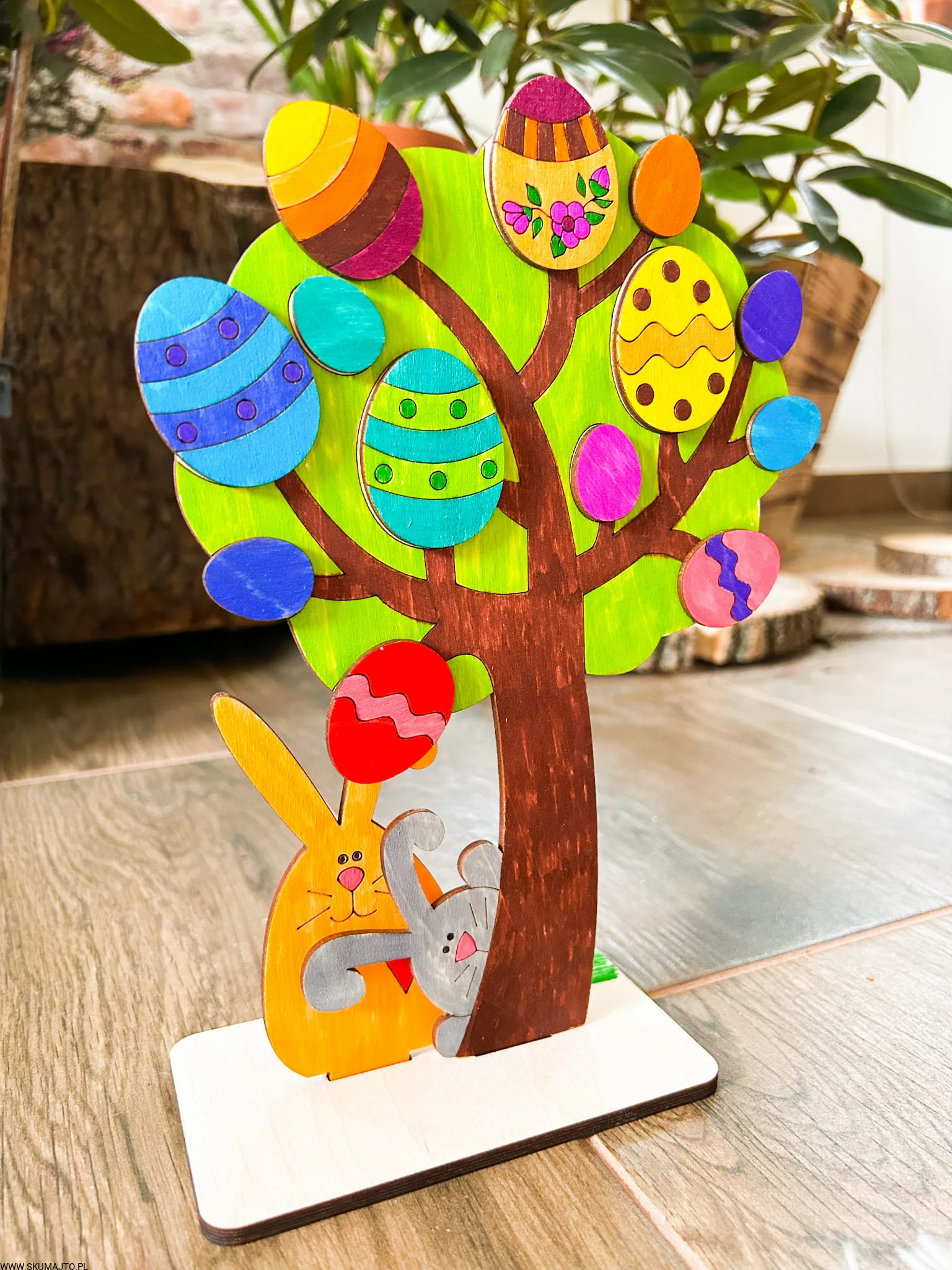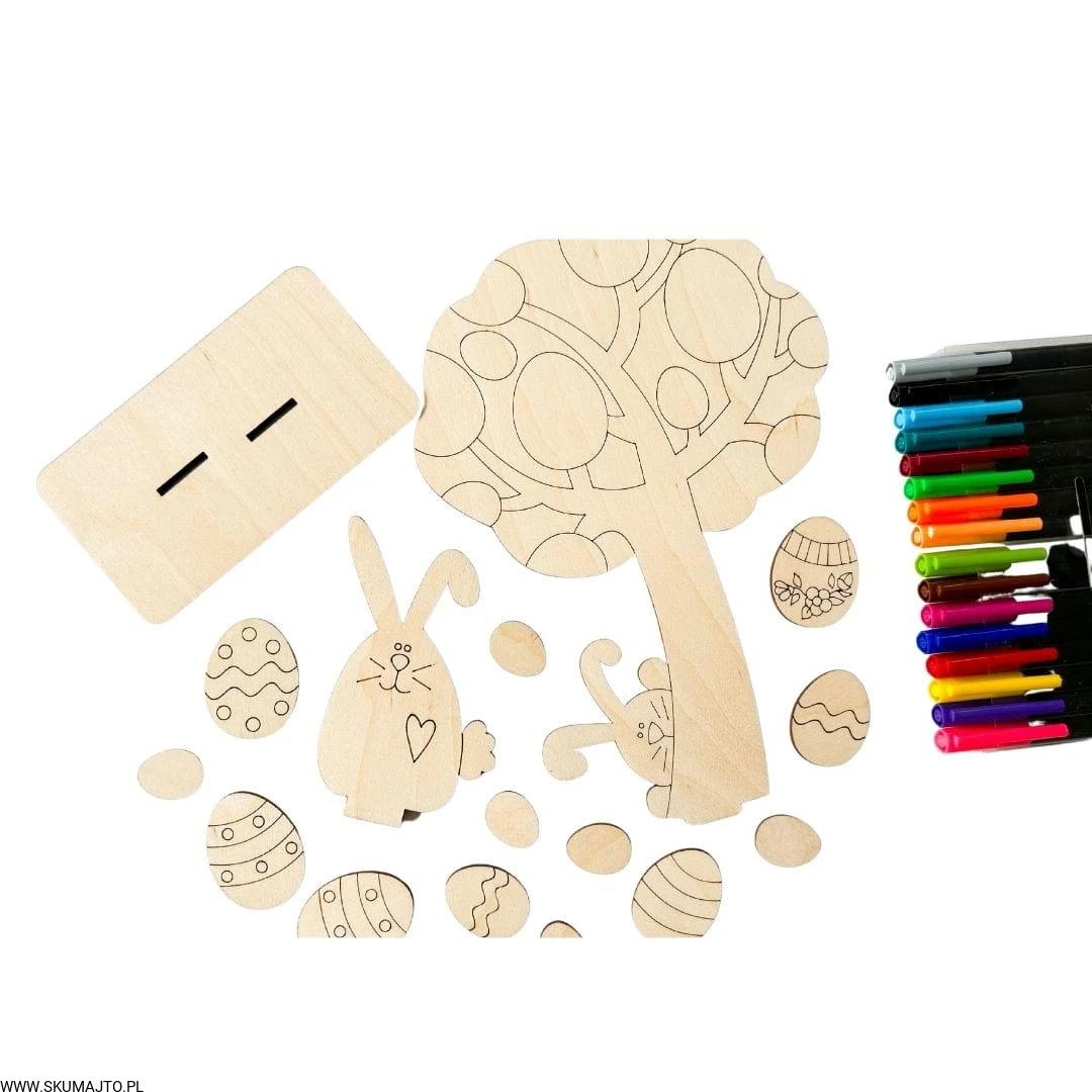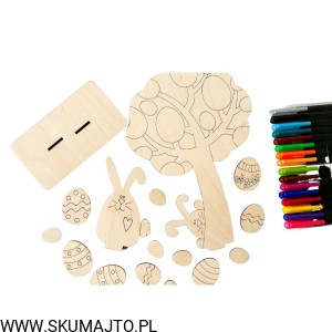 Drzewko wielkanocne, drewniana kolorowanka, prezent na zajaczka