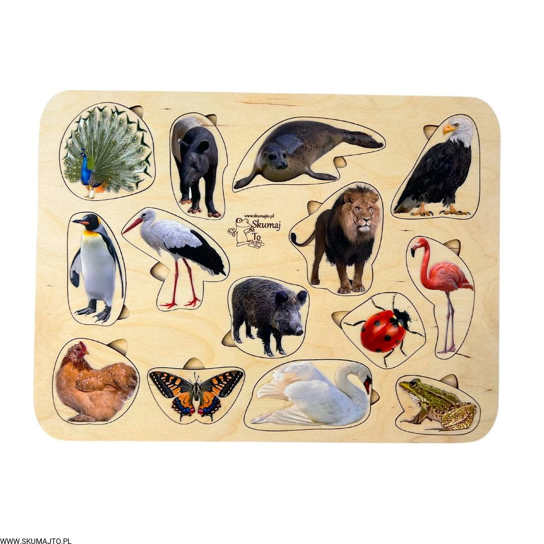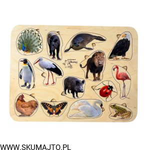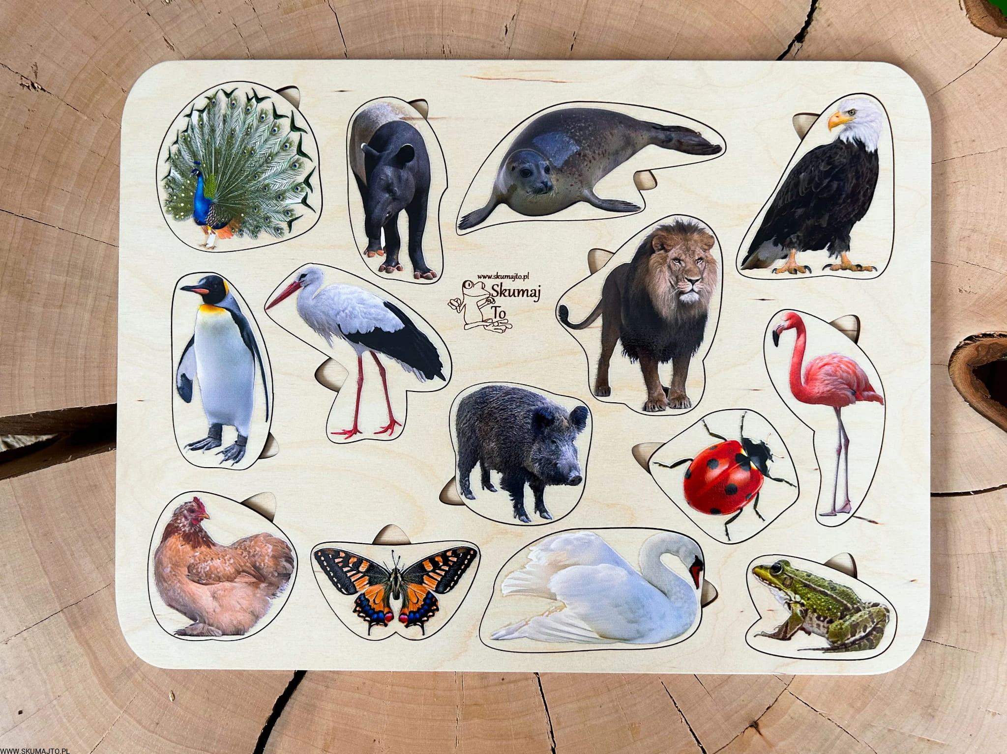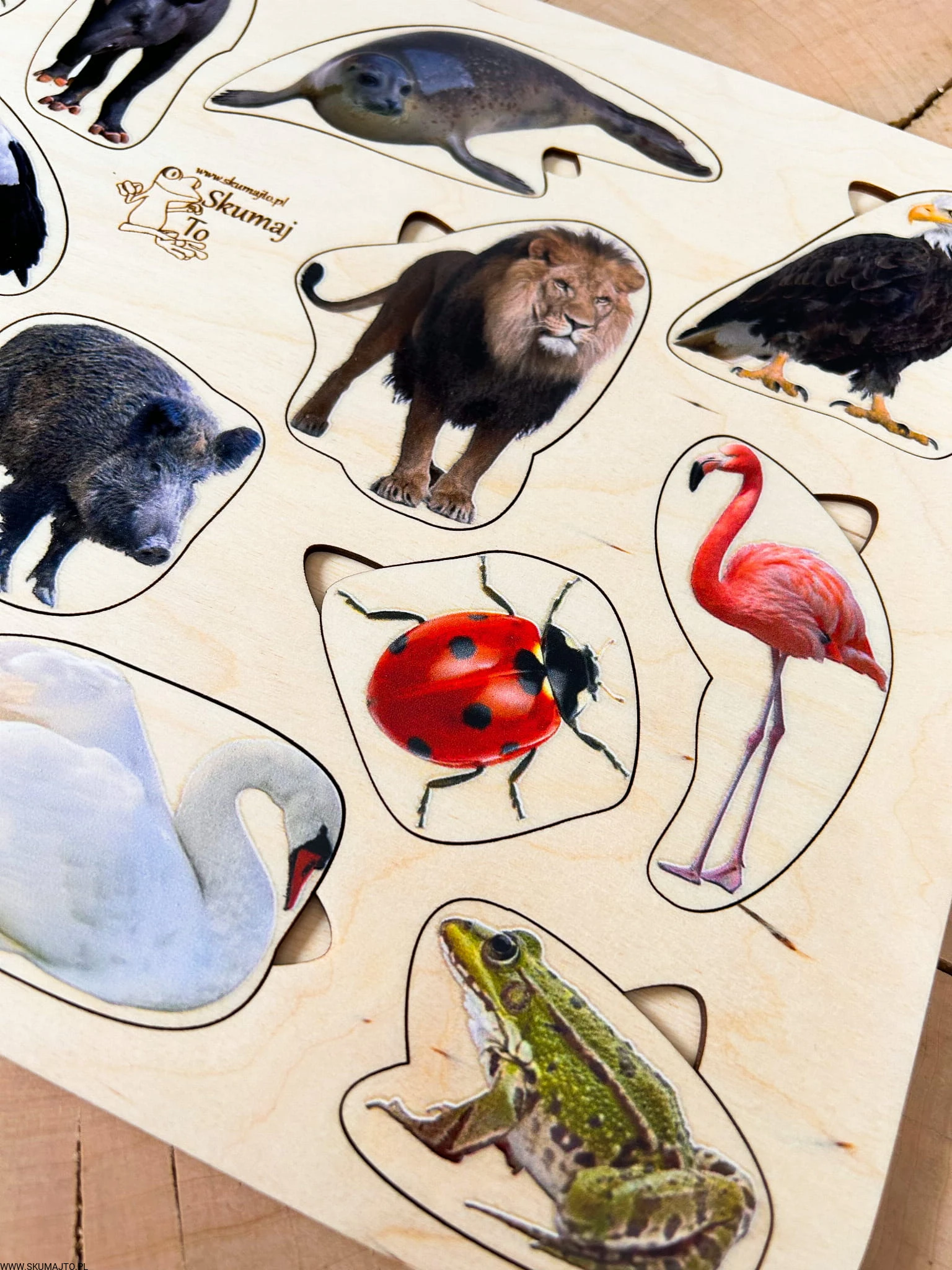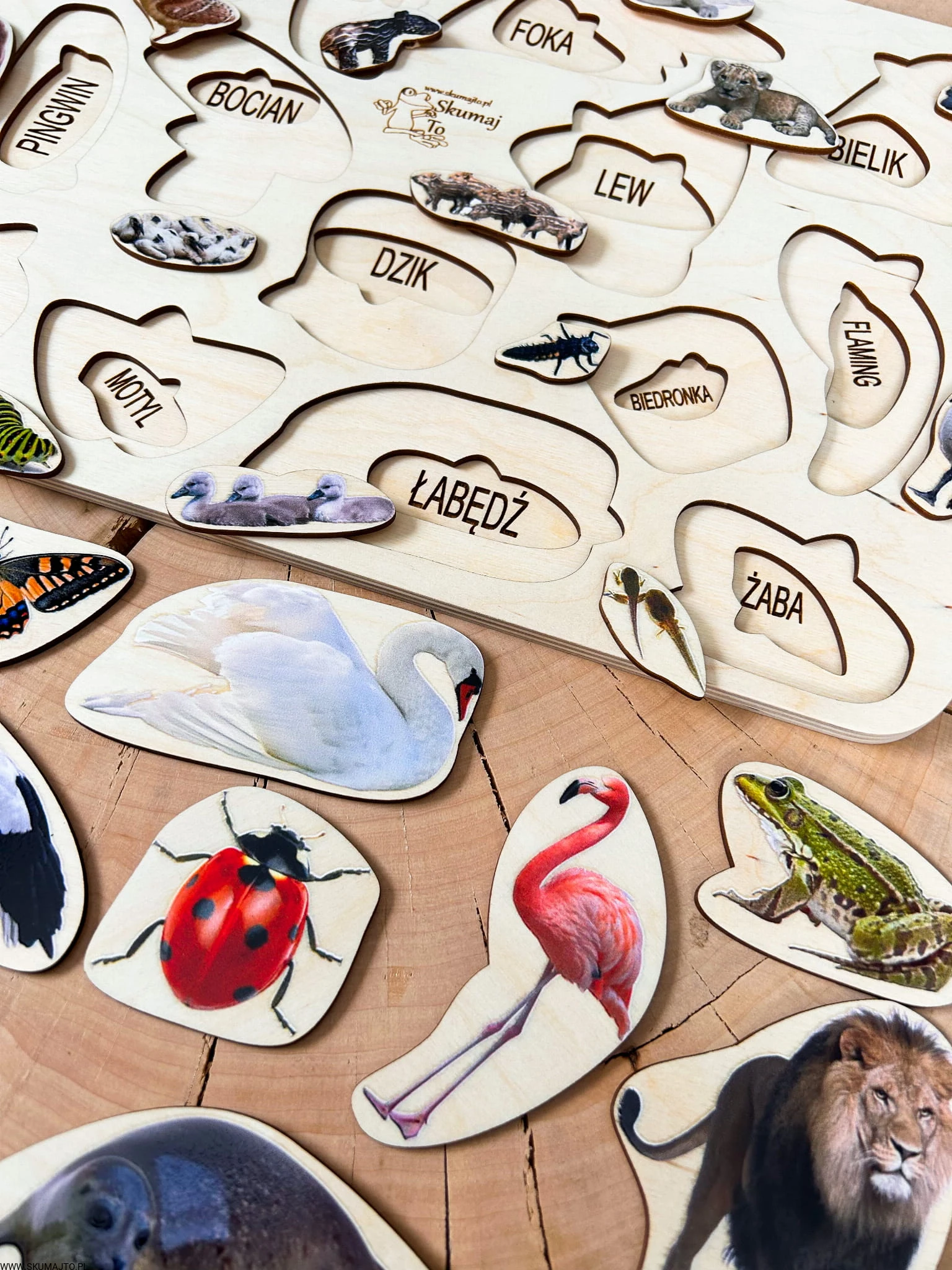 Dzieci zwierząt, drewniana układanka warstwowa, zwierzęta i ich dzieci, nauka zwierząt