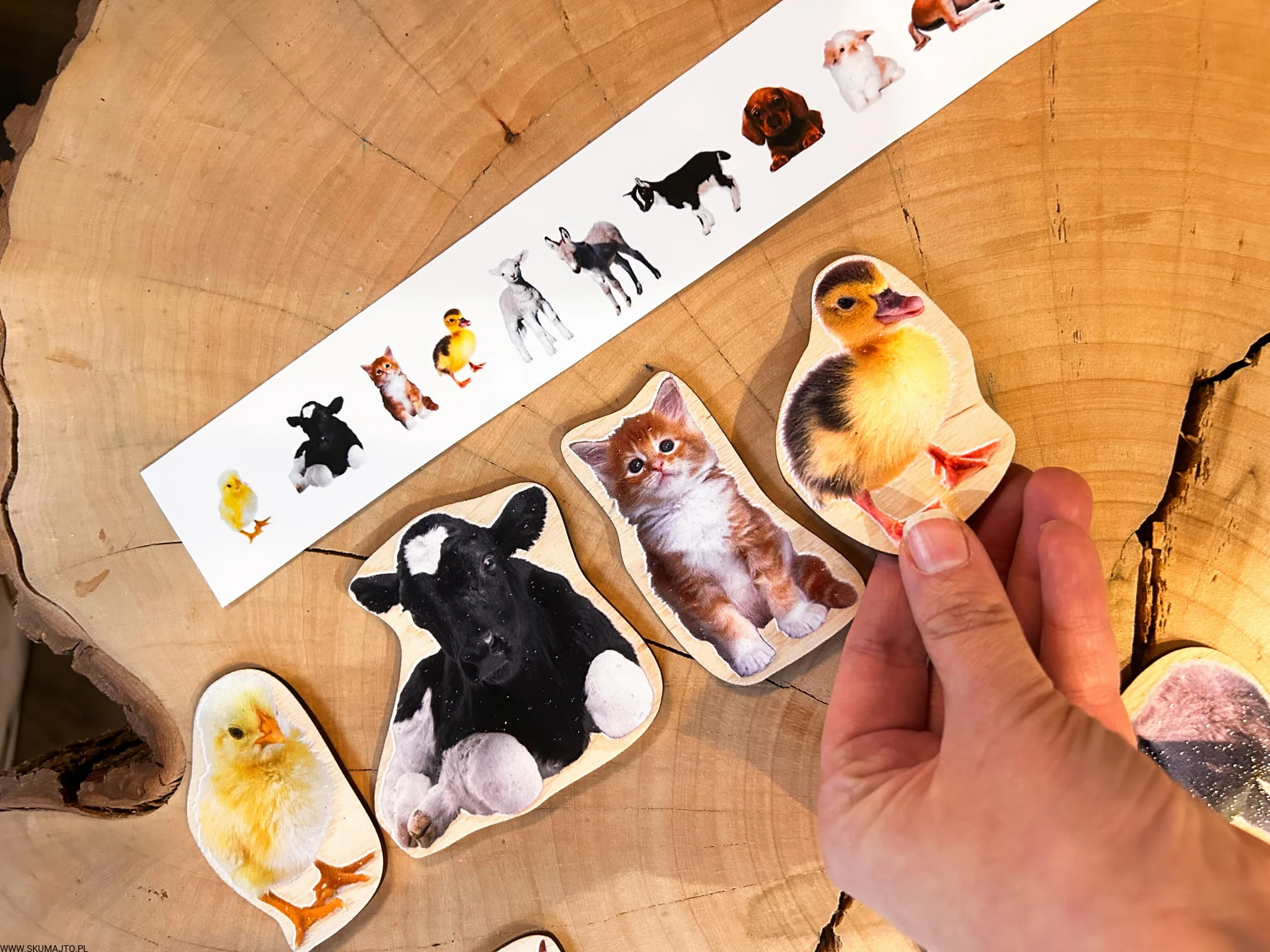 Zadanie jest proste, ale pełne możliwości: dziecko może dopasowywać figurki zwierząt do obrazków na kartach, tworzyć własne scenariusze zabaw, uczyć się nazw poszczególnych zwierząt i odgłosów, jakie wydają. Można zorganizować farmę na dywanie, zapraszać zwierzęta do rozmów lub naśladować ich zachowania – każda chwila to nowa okazja do odkrywania.