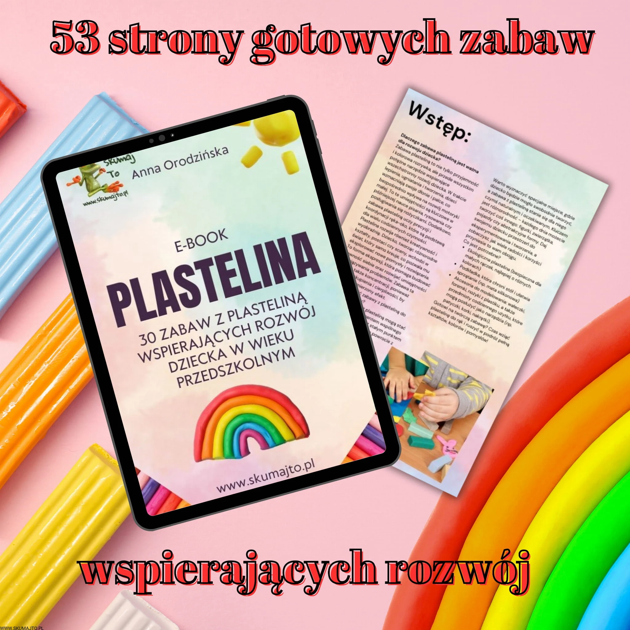 - 53 różnorodne zabawy z plasteliną, dostosowane do wieku i umiejętności dziecka.