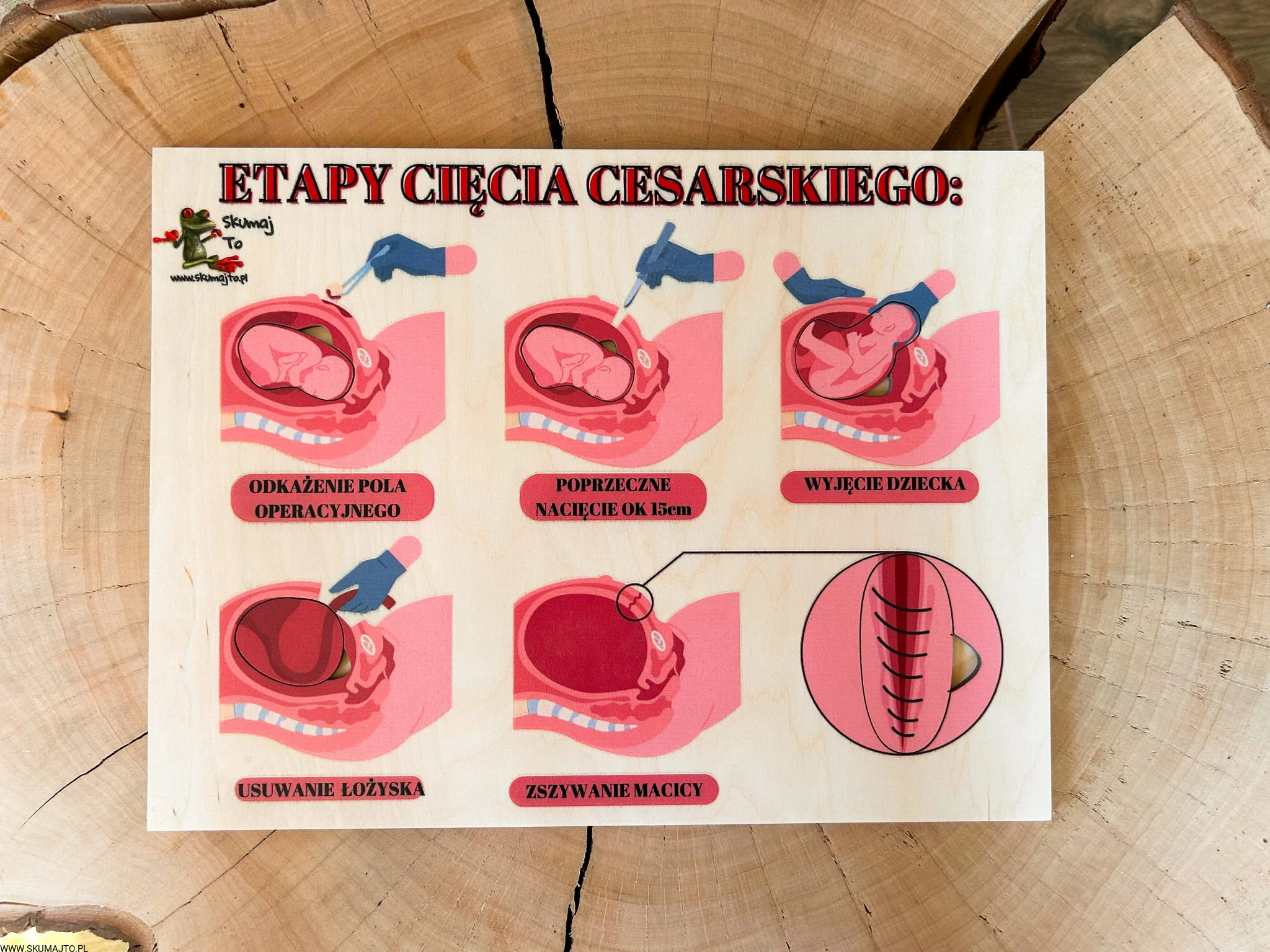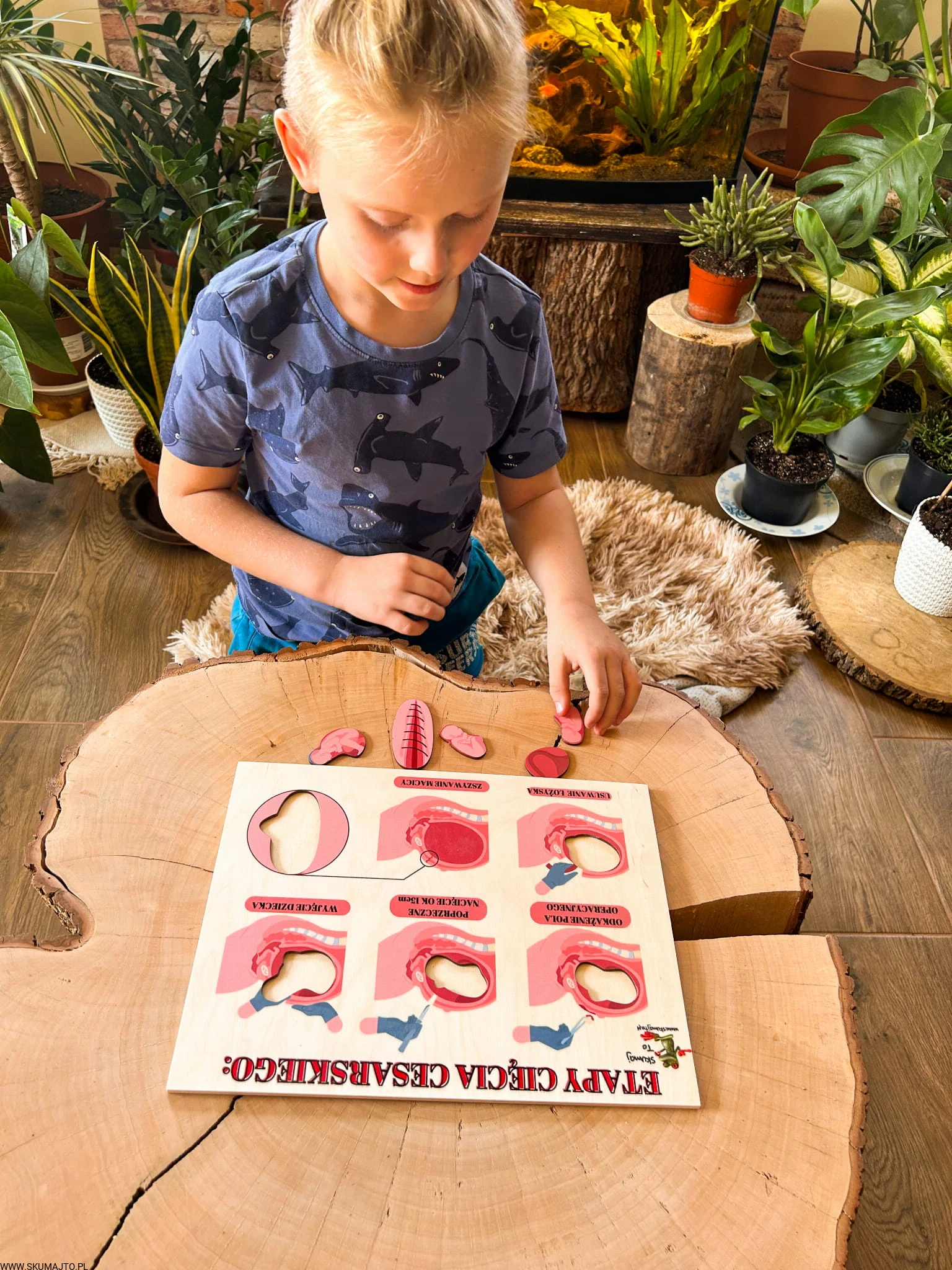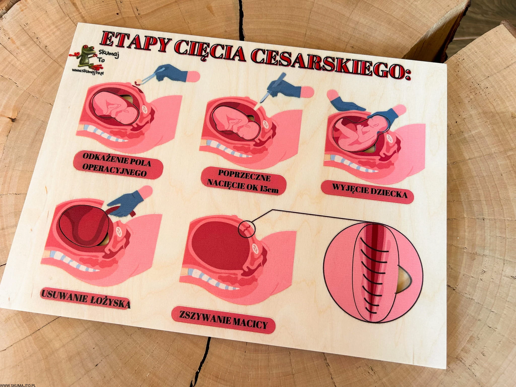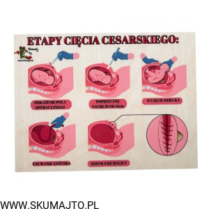 Etapy cięcia cesarskiego układanka drewniana, poród, ciąża