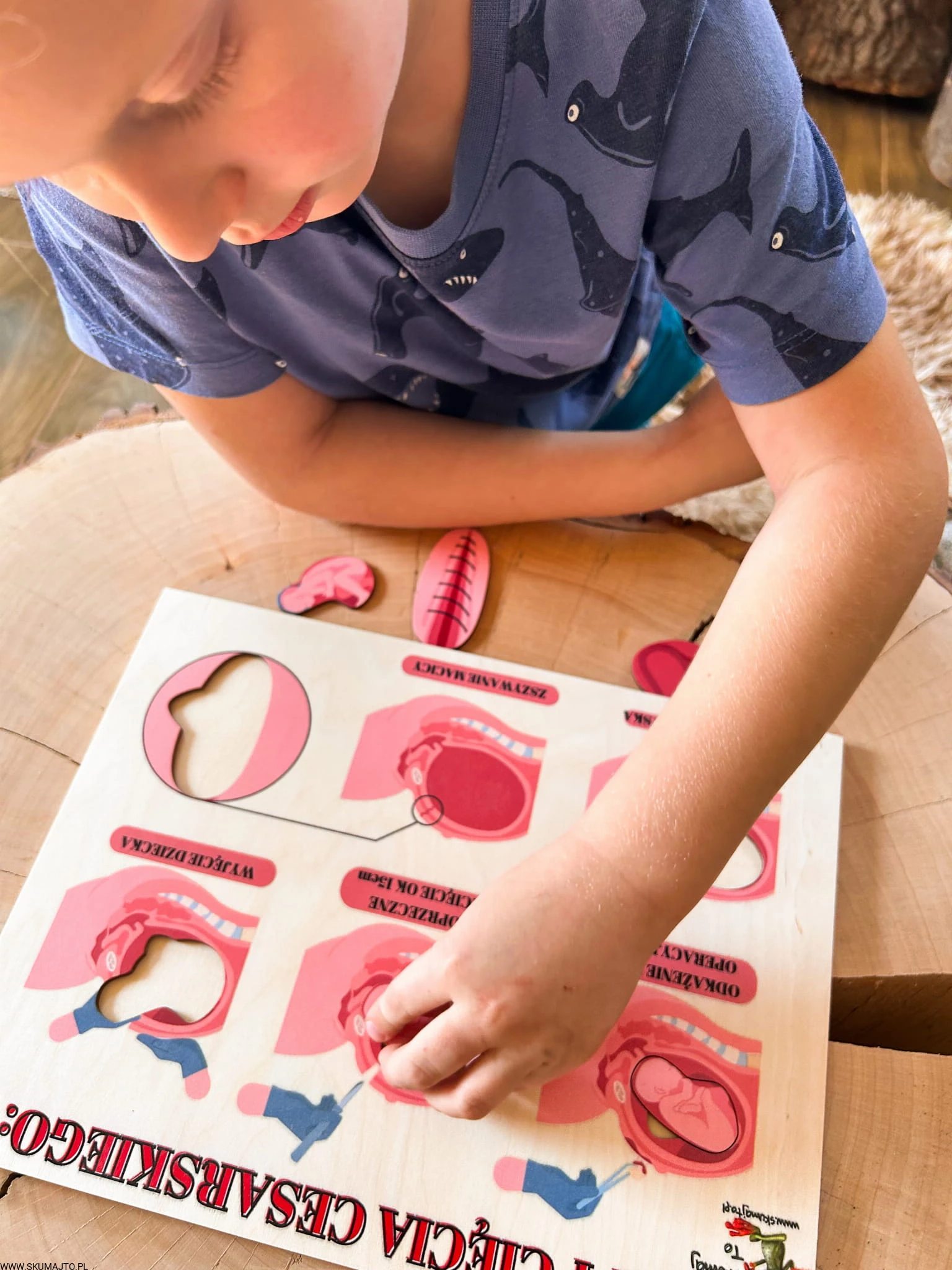 3. Edukacja o Ciele i Procesie: Nasza układanka pomaga dzieciom zrozumieć, jakie są różnice między narodzinami naturalnymi a cięciem cesarskim oraz jak działają narządy wewnętrzne w trakcie tego zabiegu.