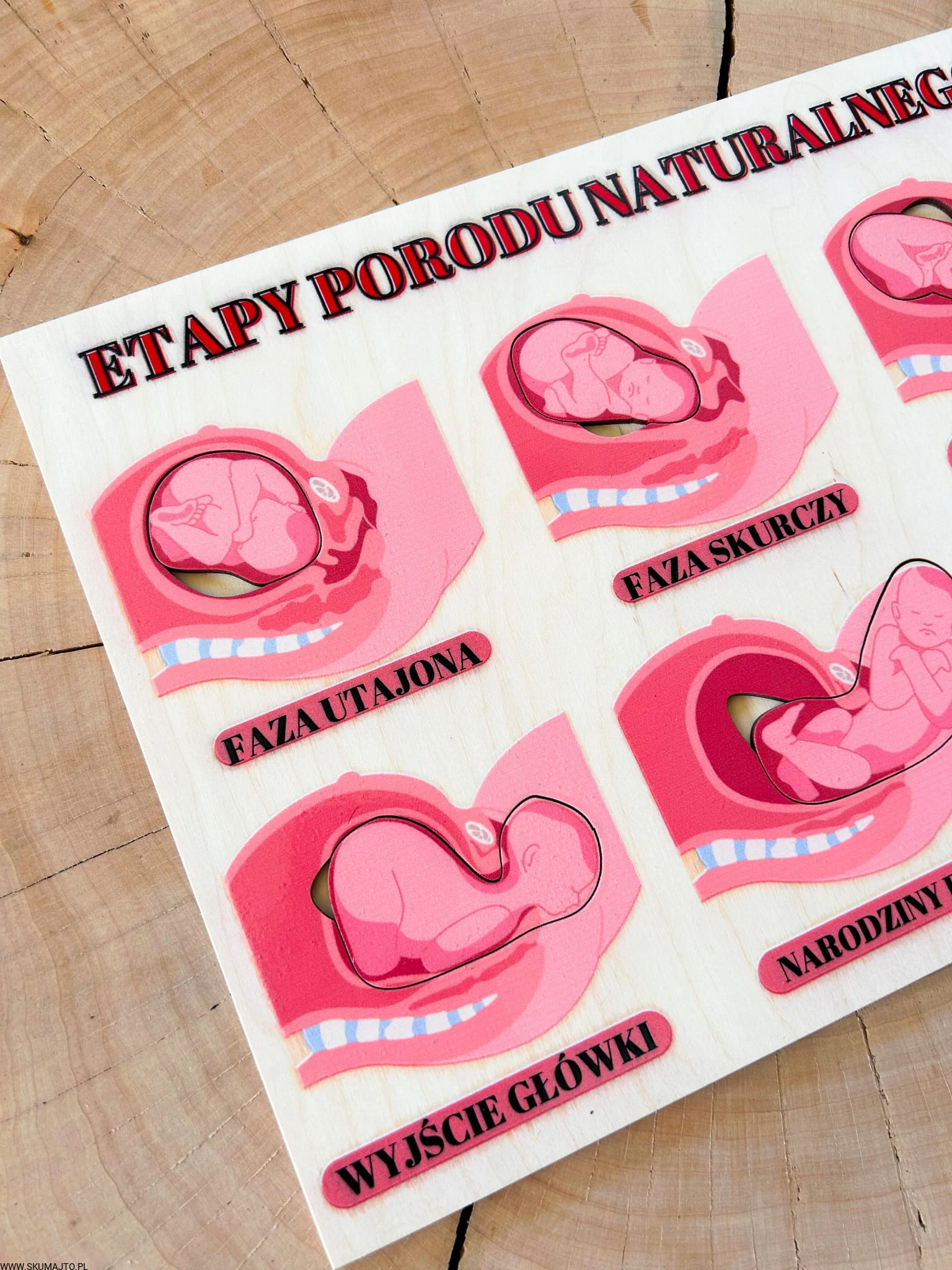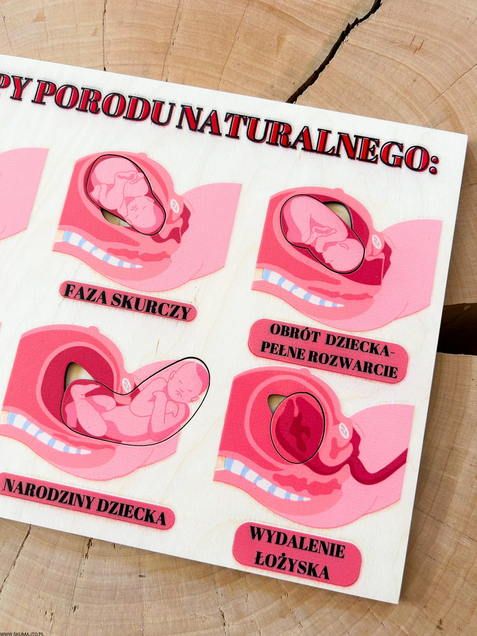 Etapy porodu naturalnego układanka drewniana, ciąża, poród