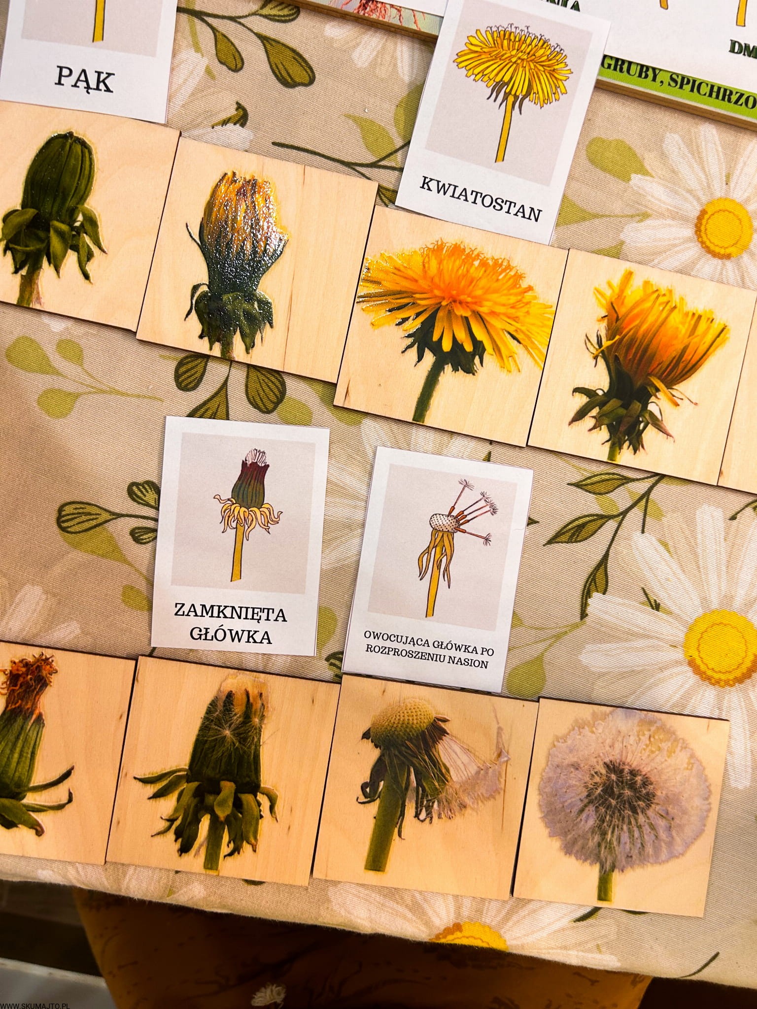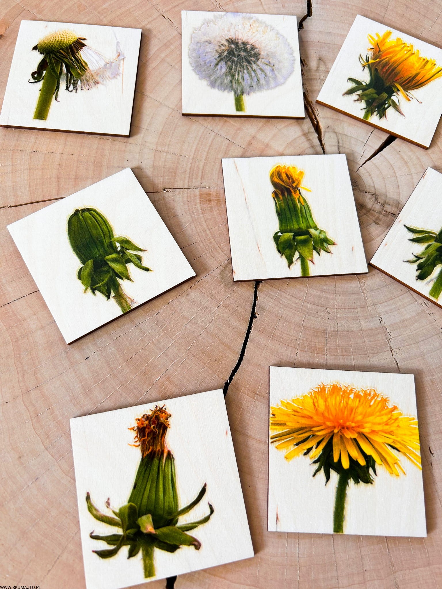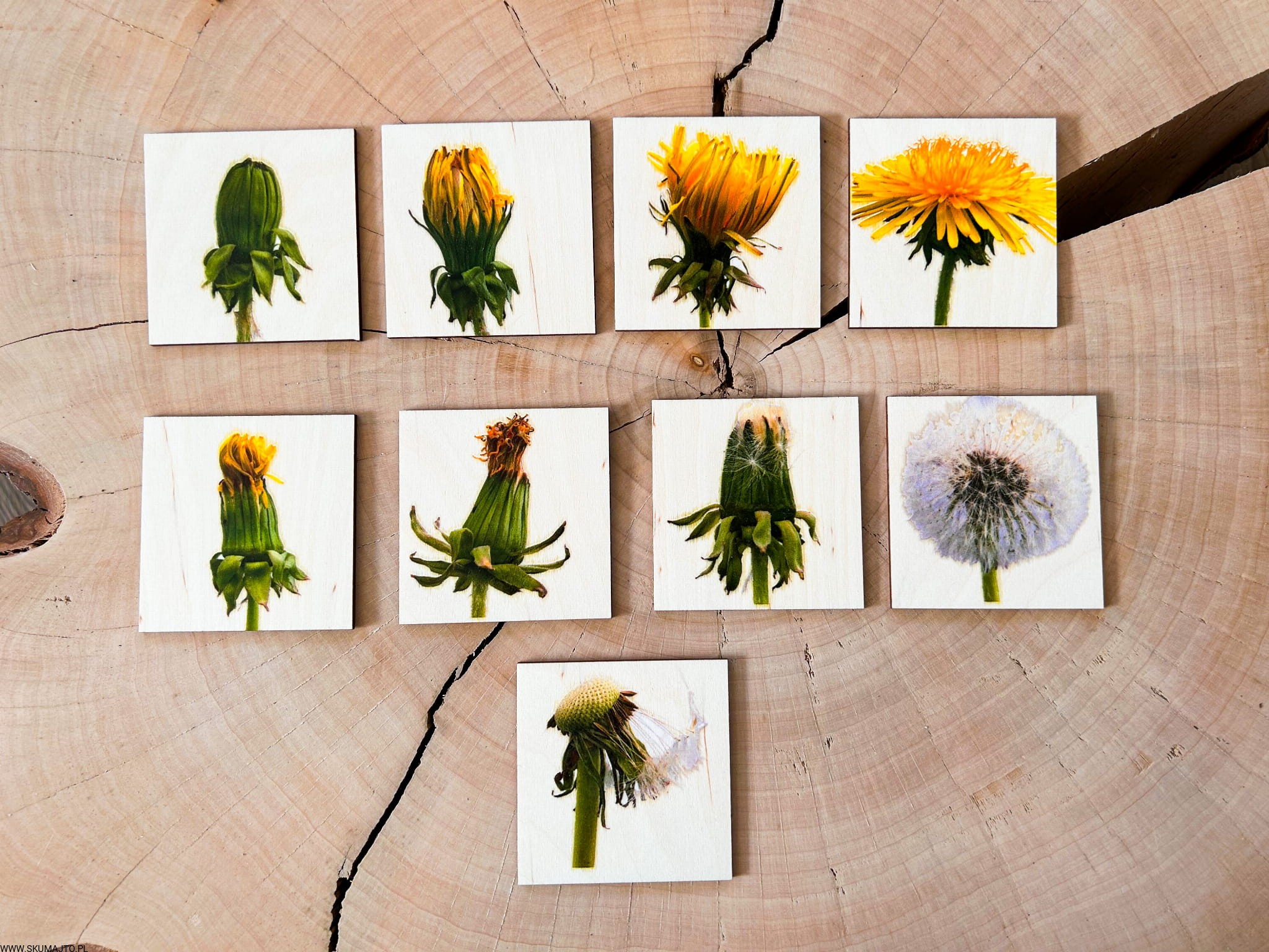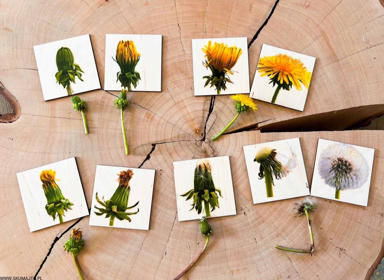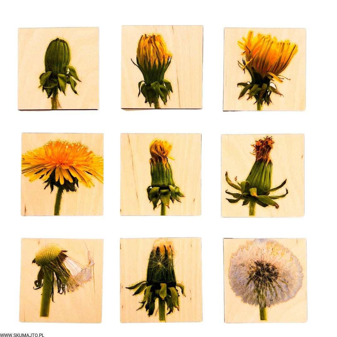 Etapy rozwoju kwiatostanu Mniszka lekarskiego drewniana układanka