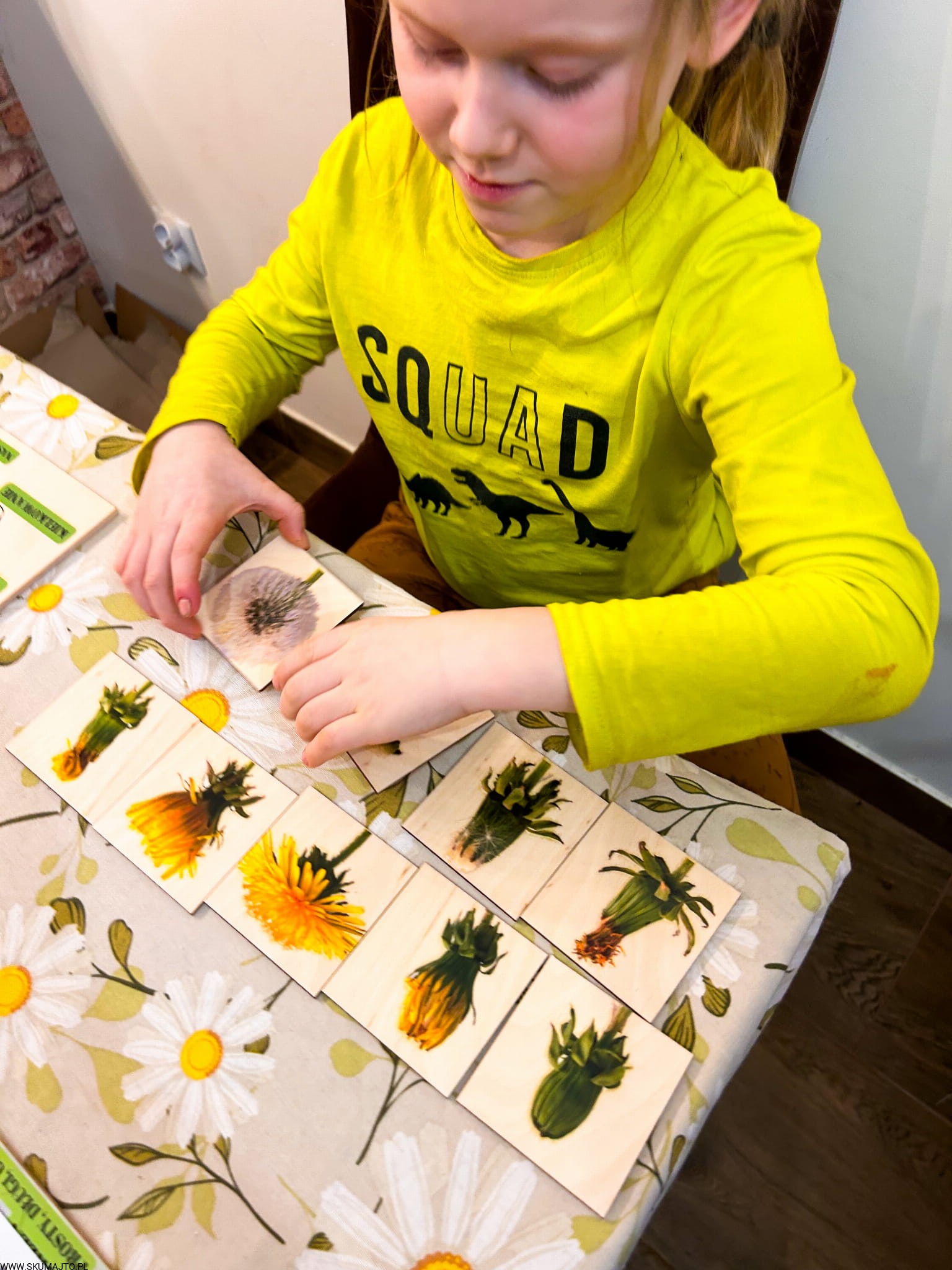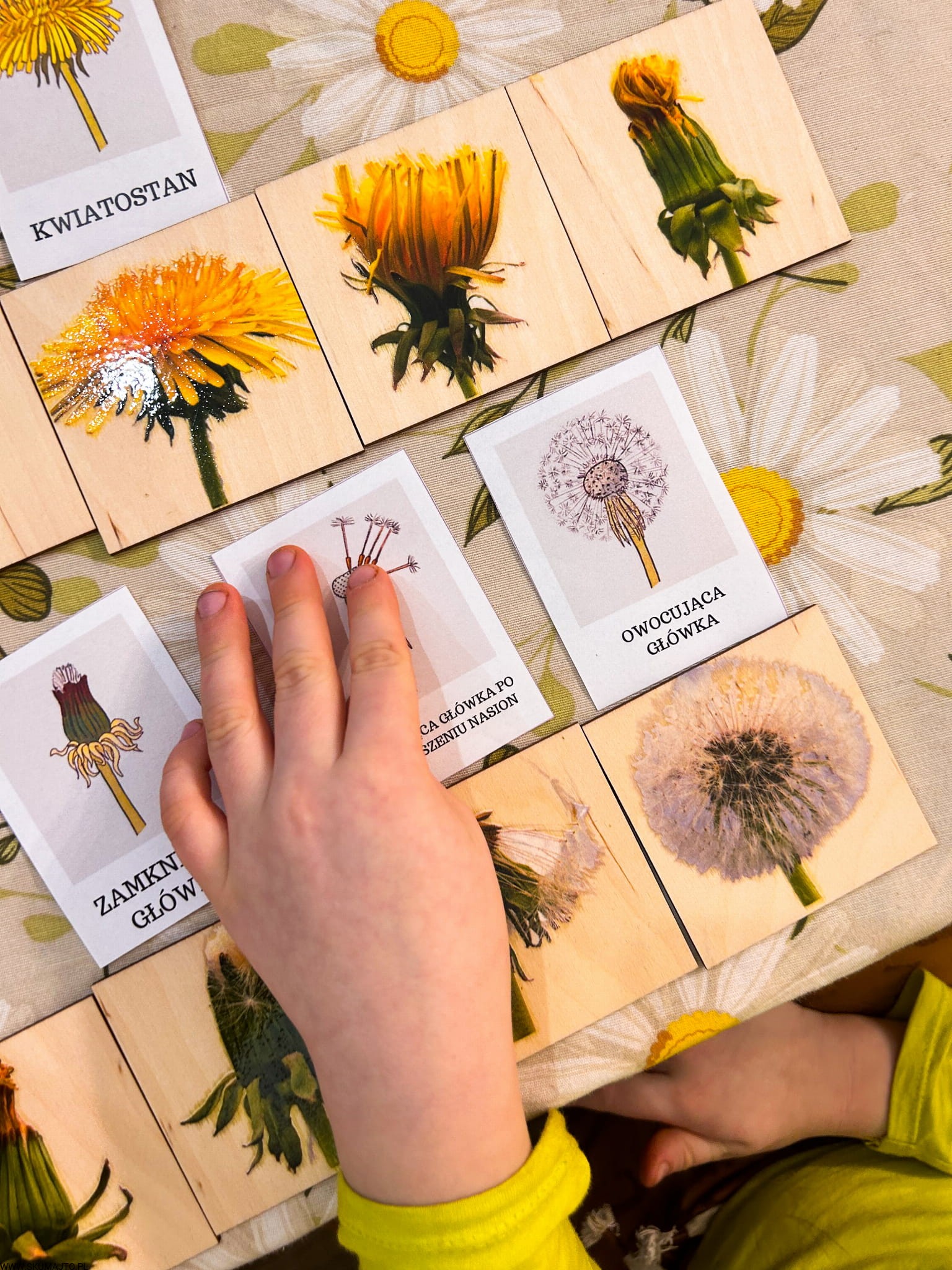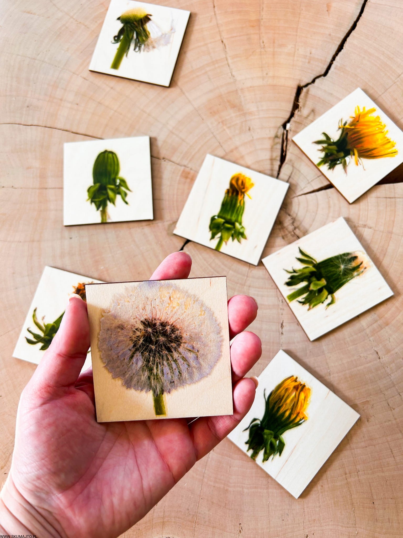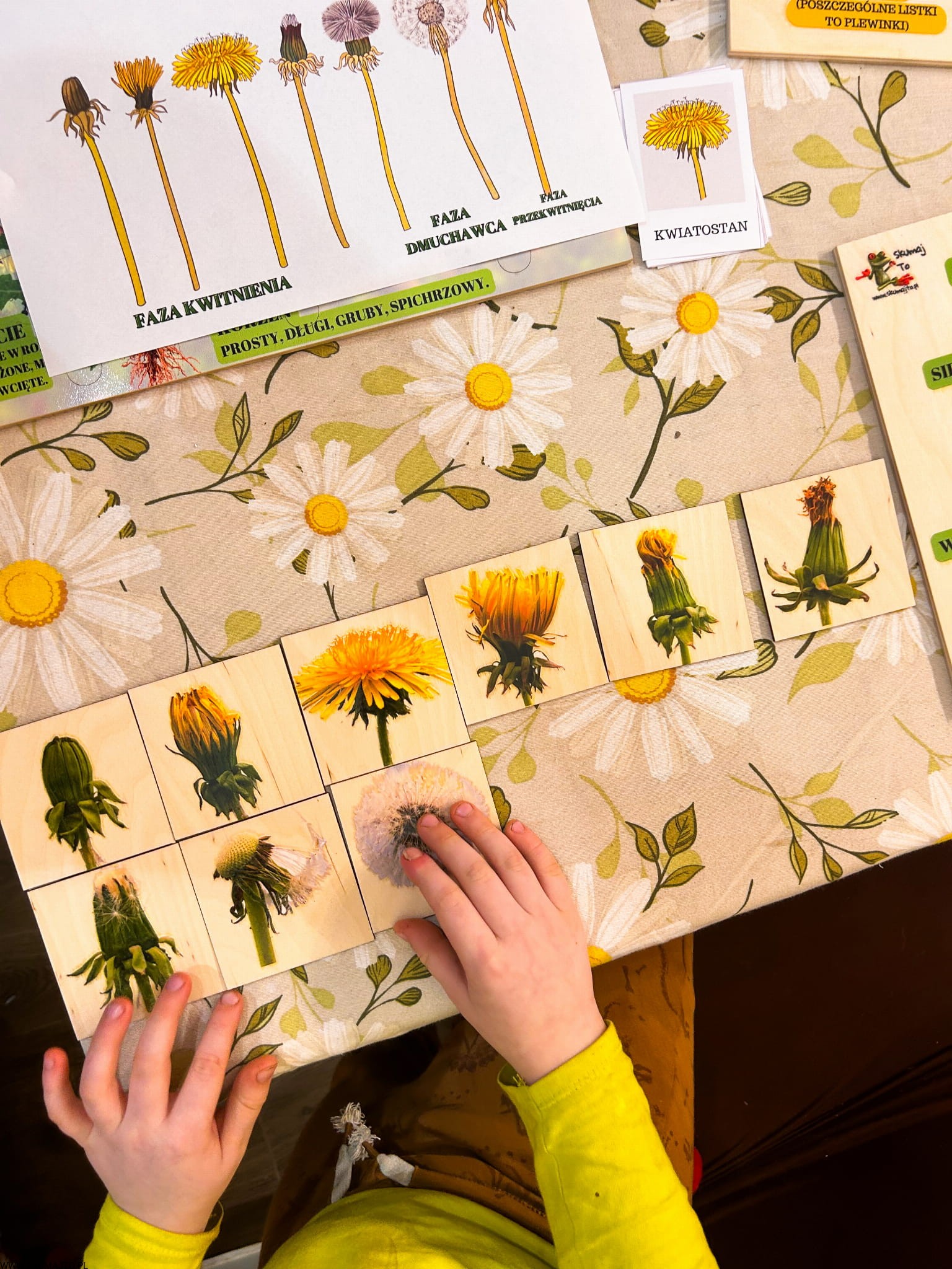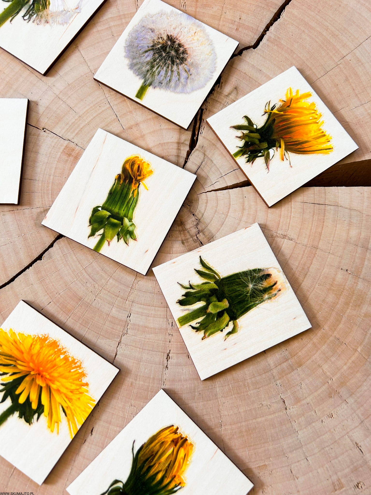 Etapy rozwoju kwiatostanu Mniszka lekarskiego drewniana układanka