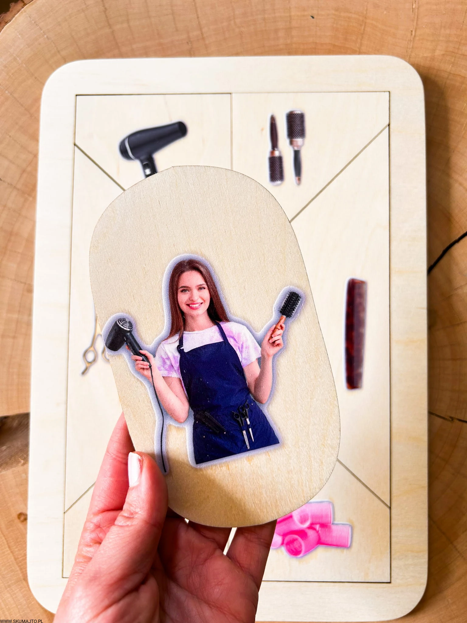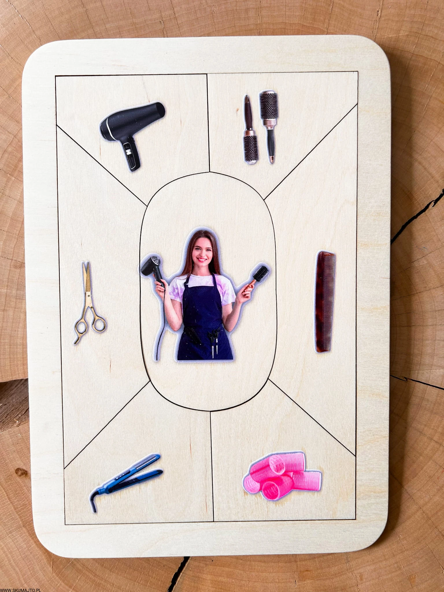 Drewniana układanka edukacyjna „Zawód: Fryzjerka” – kreatywność, estetyka i pewna ręka od najmłodszych lat
