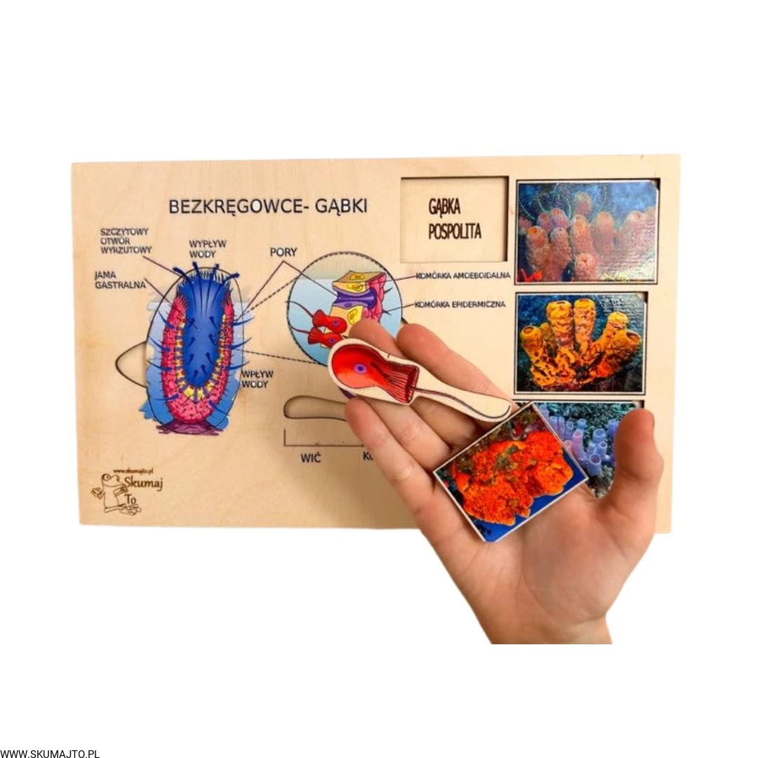 Gąbki, drewniana układanka, ciekawostki o gąbkach, pomoc biologiczna