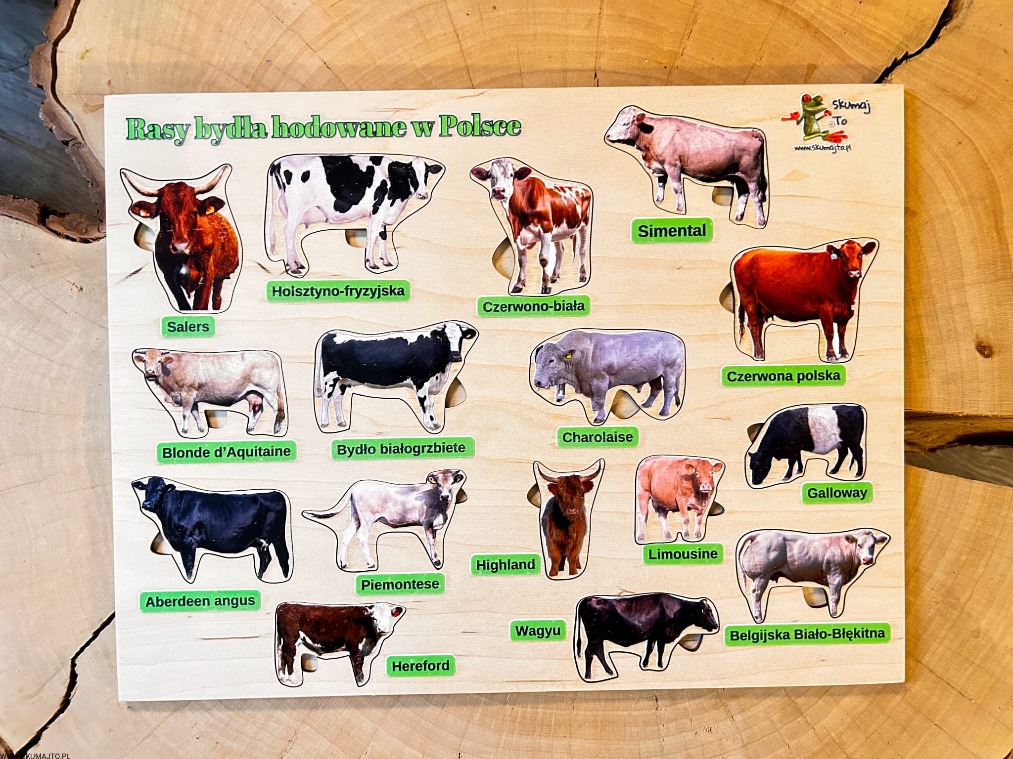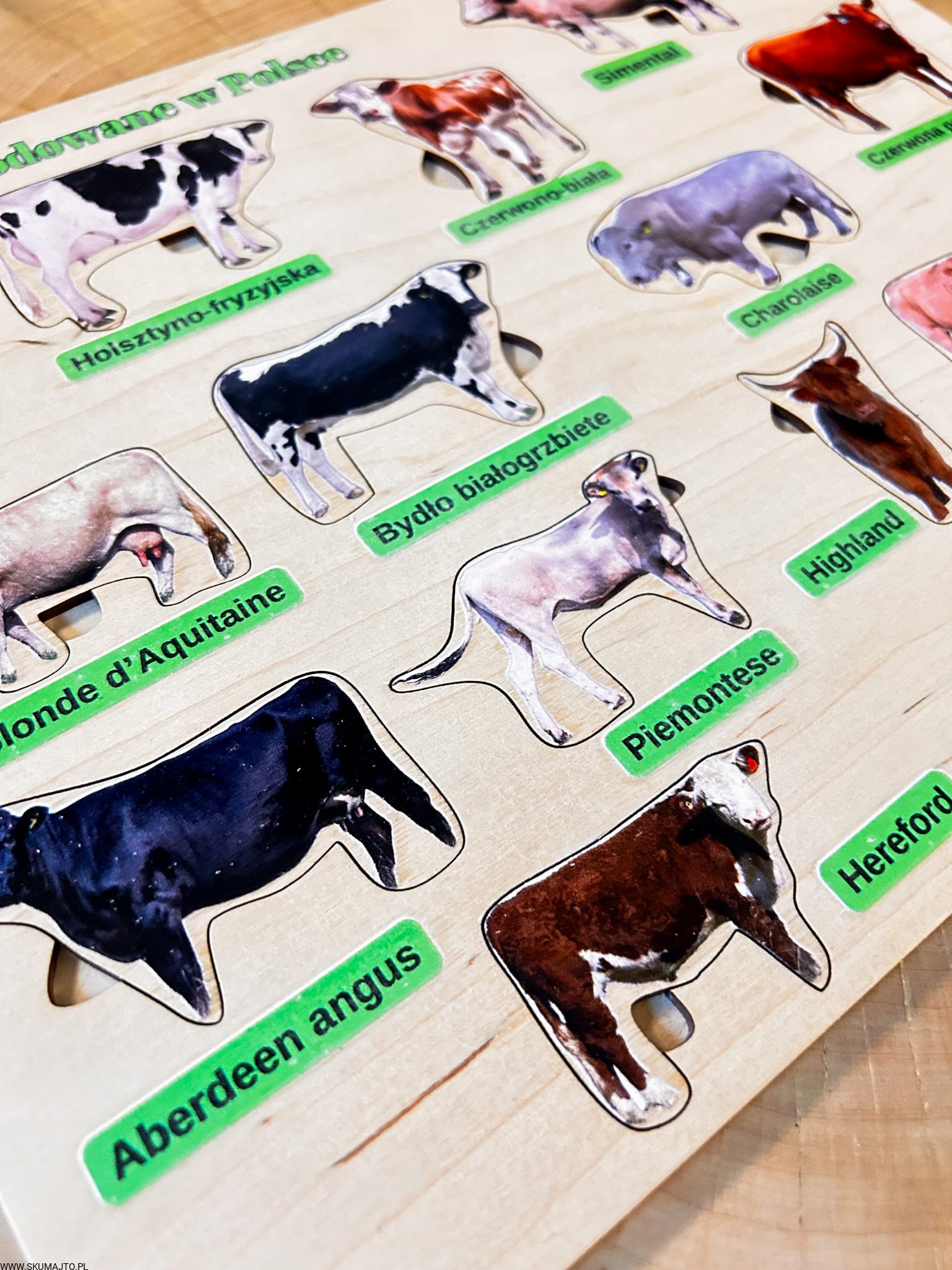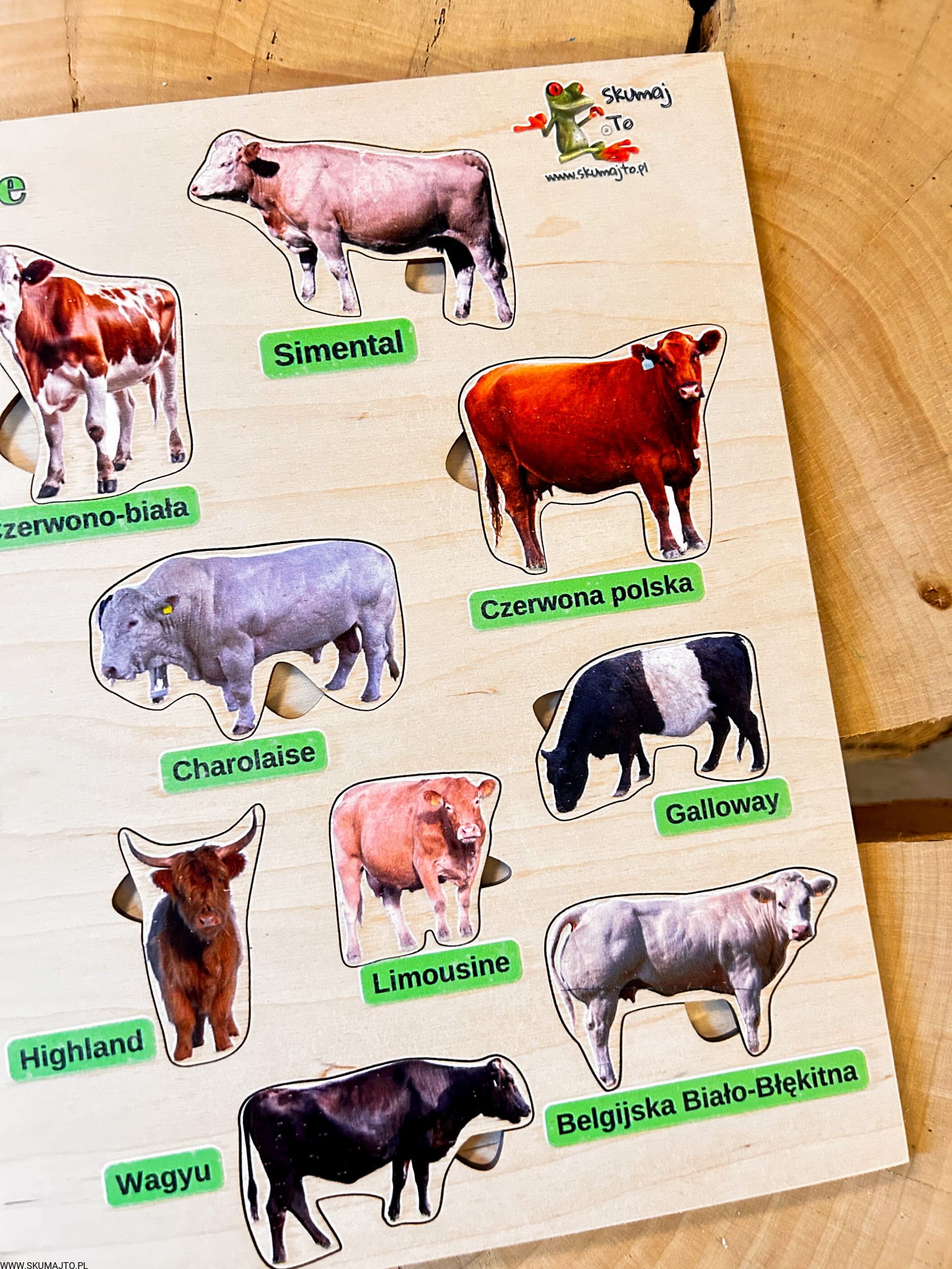 Gatunki krów hodowanych w Polsce, drewniana układanka