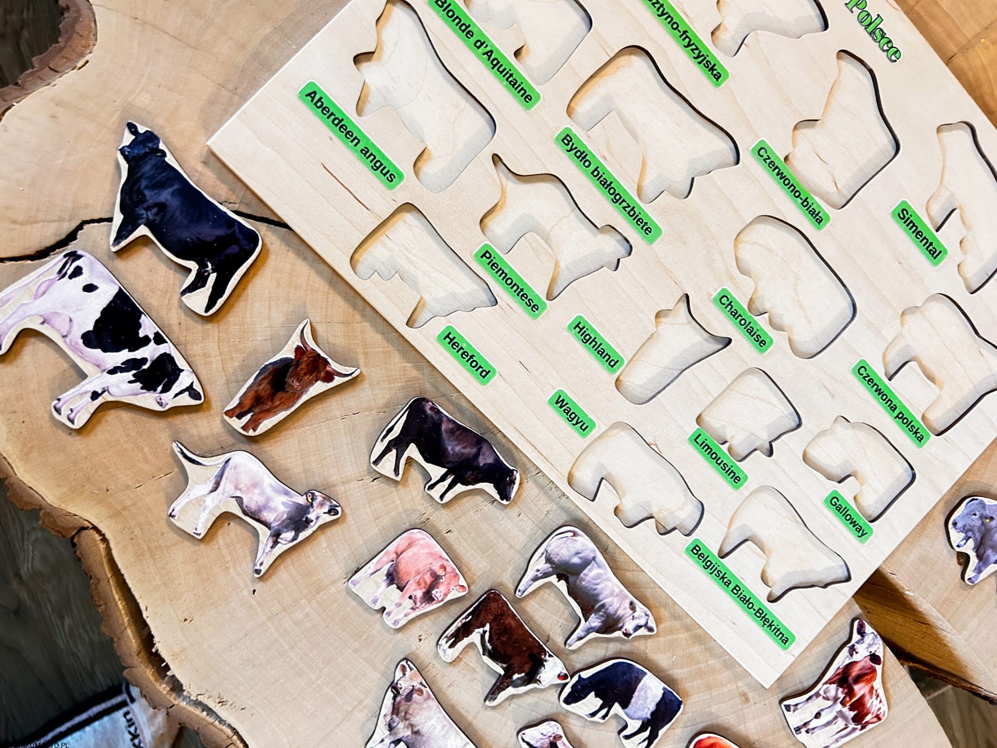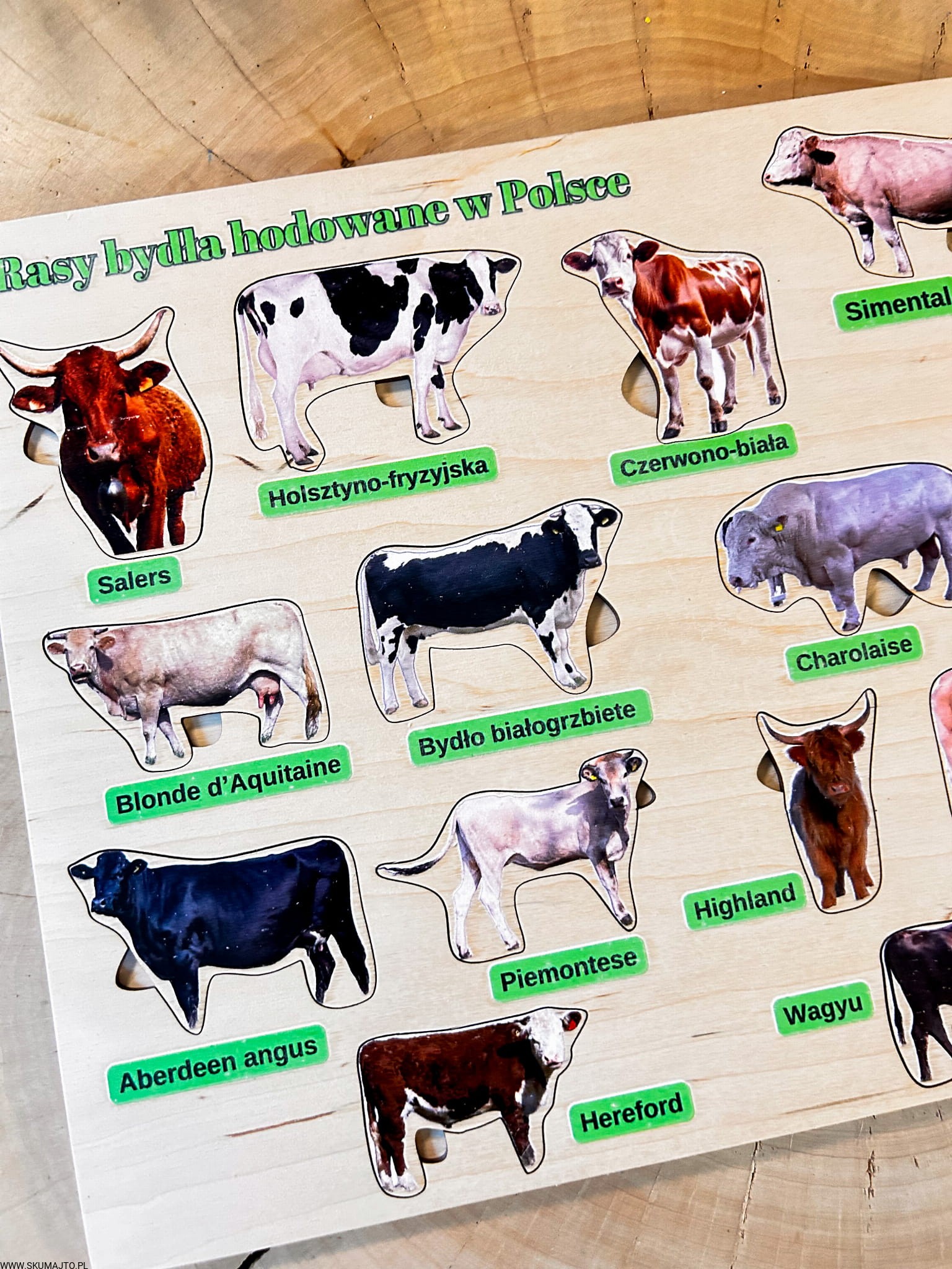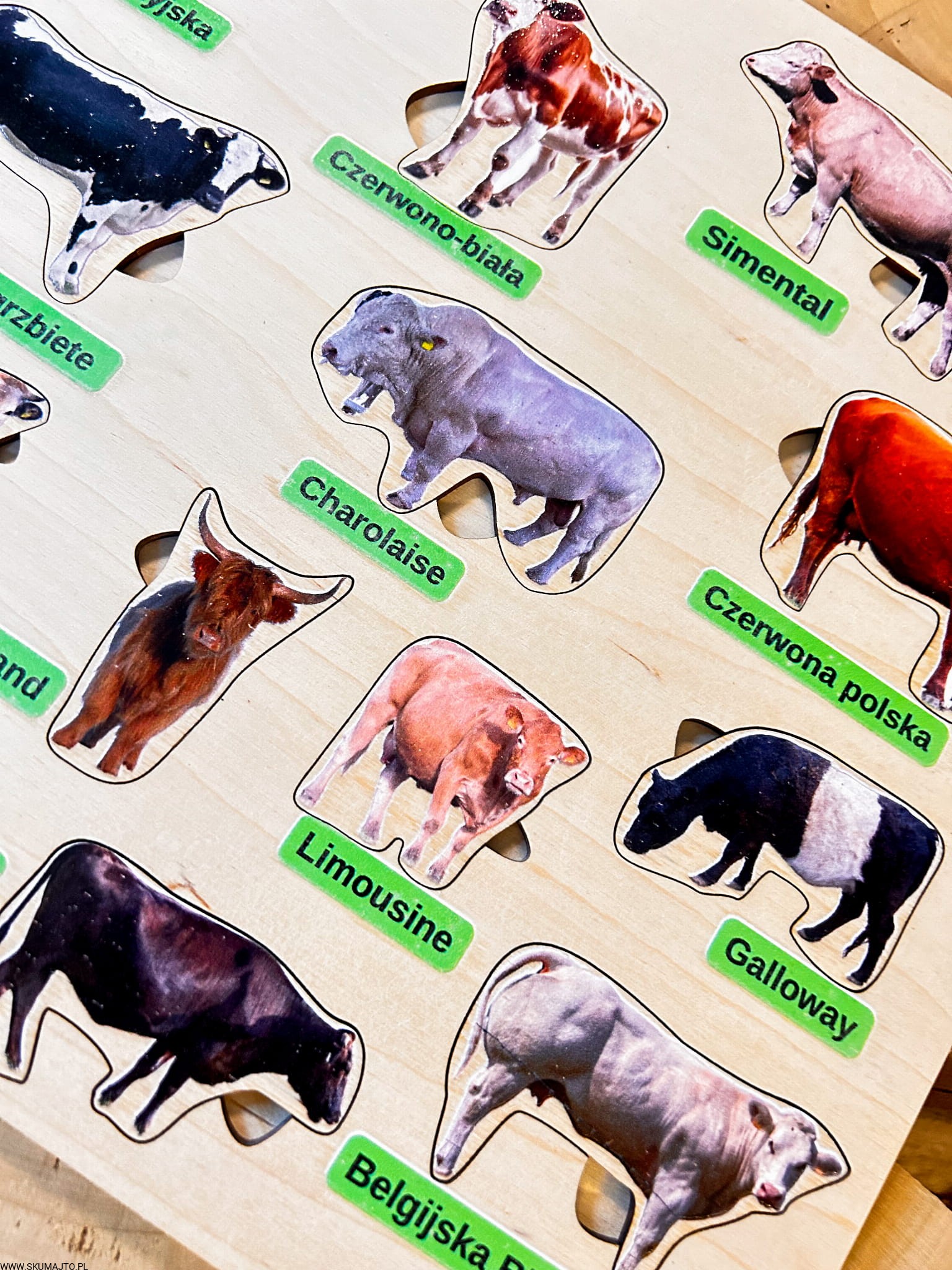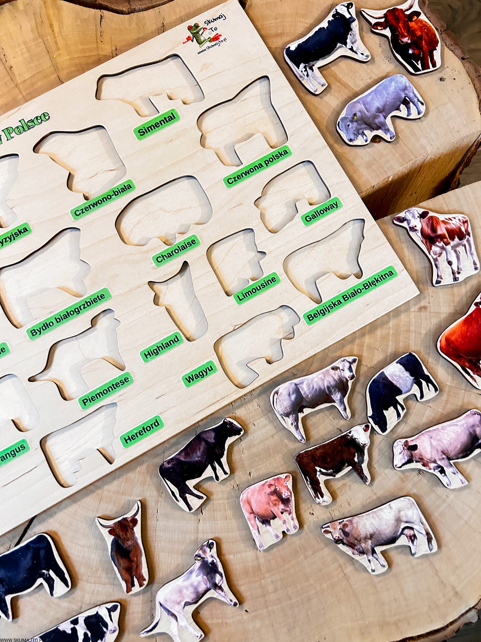 Gatunki krów hodowanych w Polsce, drewniana układanka