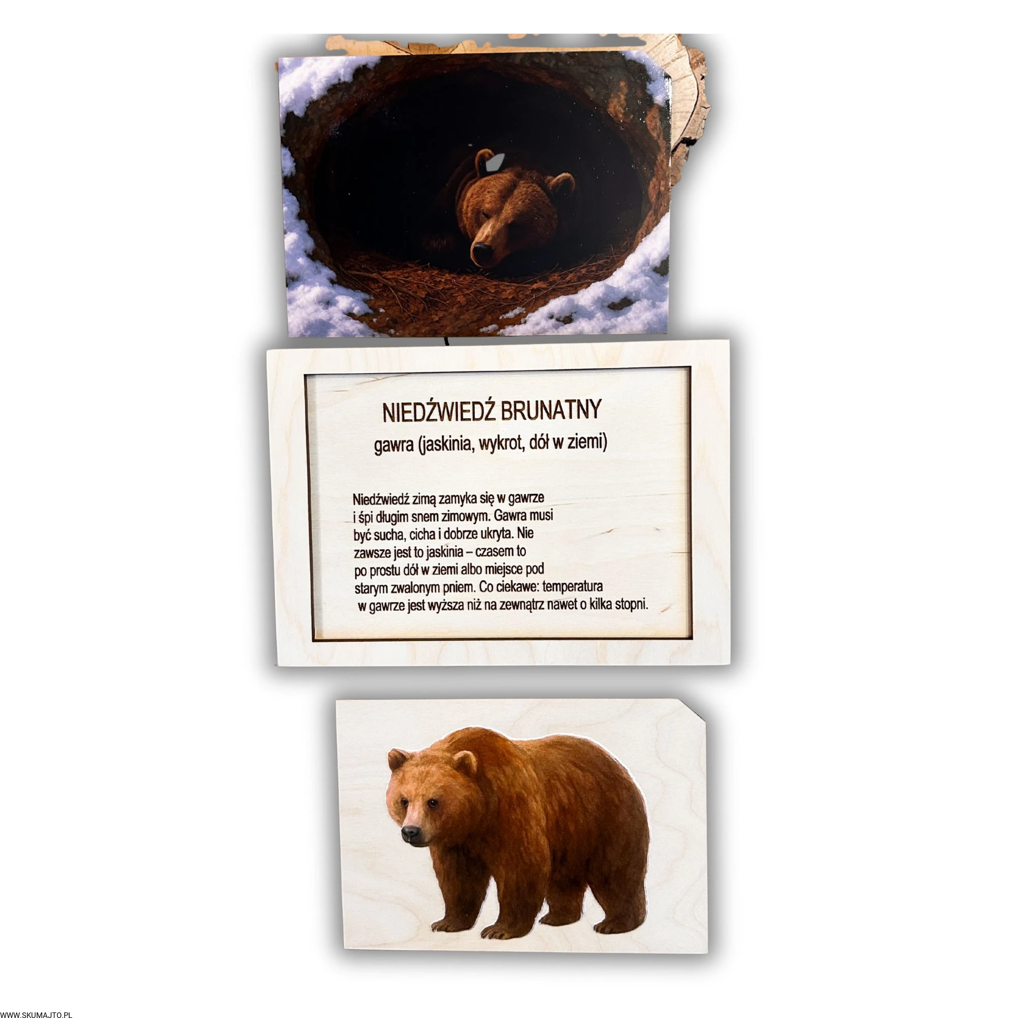 Poznaj fascynujący świat dzikich zwierząt i ich naturalnych kryjówek dzięki edukacyjnej układance „Gdzie śpi niedźwiedź brunatny?”. To wyjątkowa pomoc dydaktyczna, która w angażujący sposób ukazuje, gdzie i jak zimą śpi jeden z największych drapieżników Europy.
