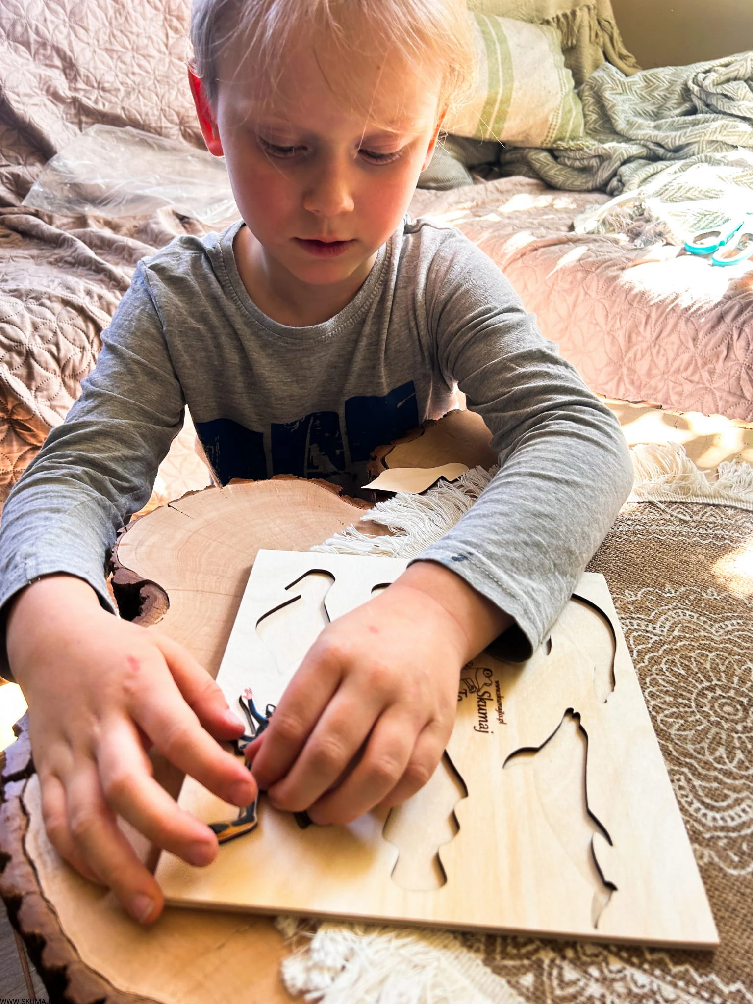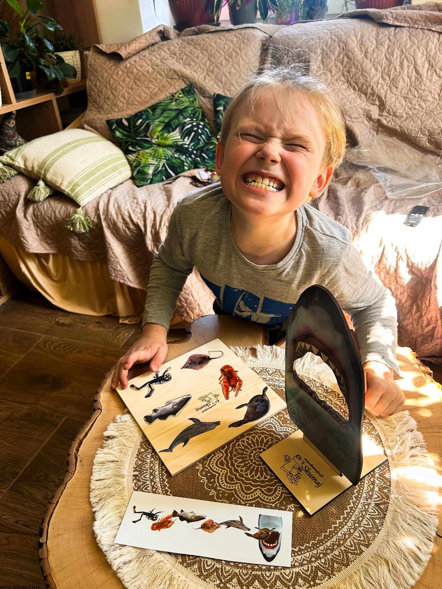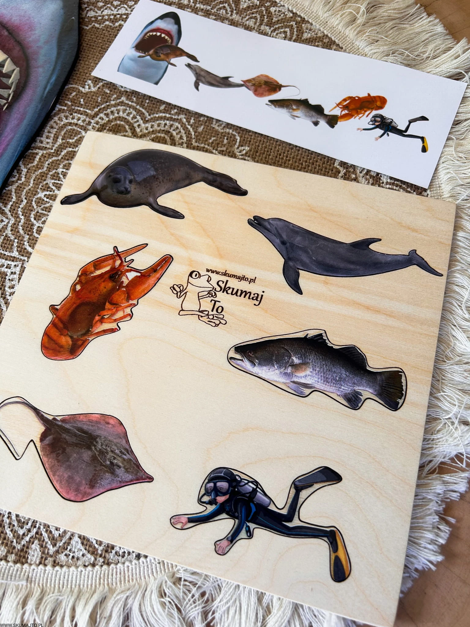 Głodny rekin, drewniana układanka do odwzorowywania, układanka montessori