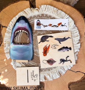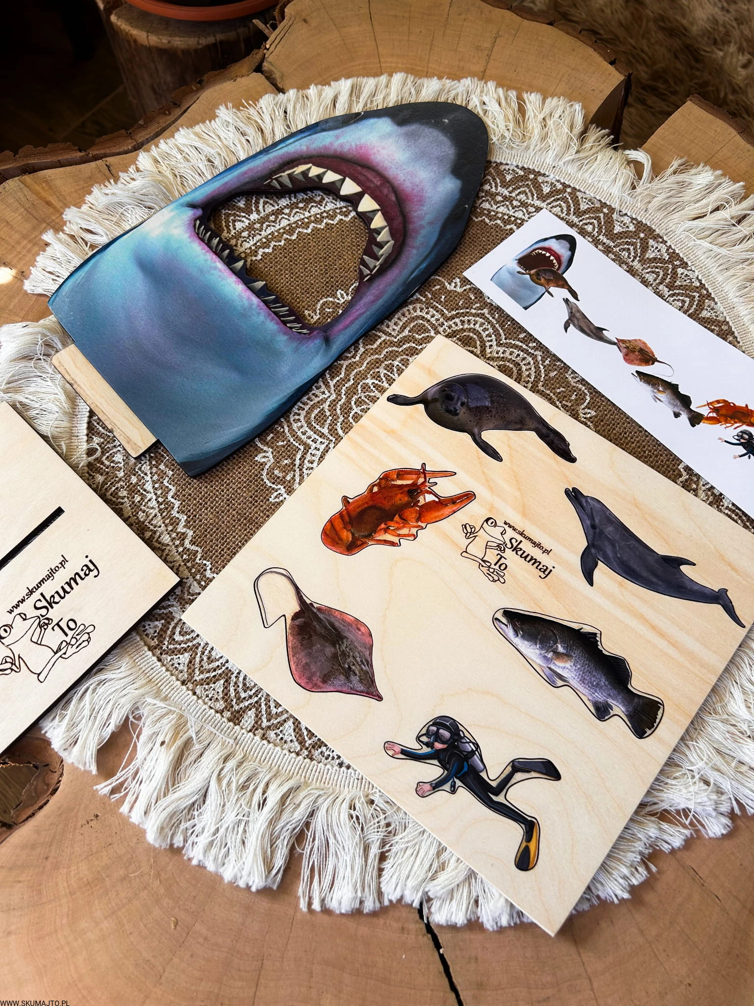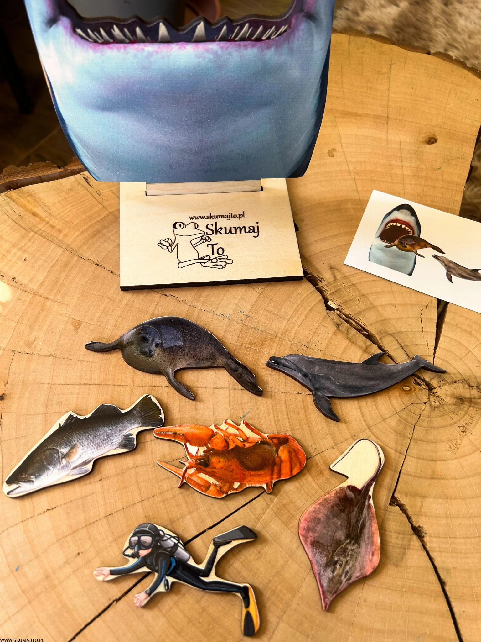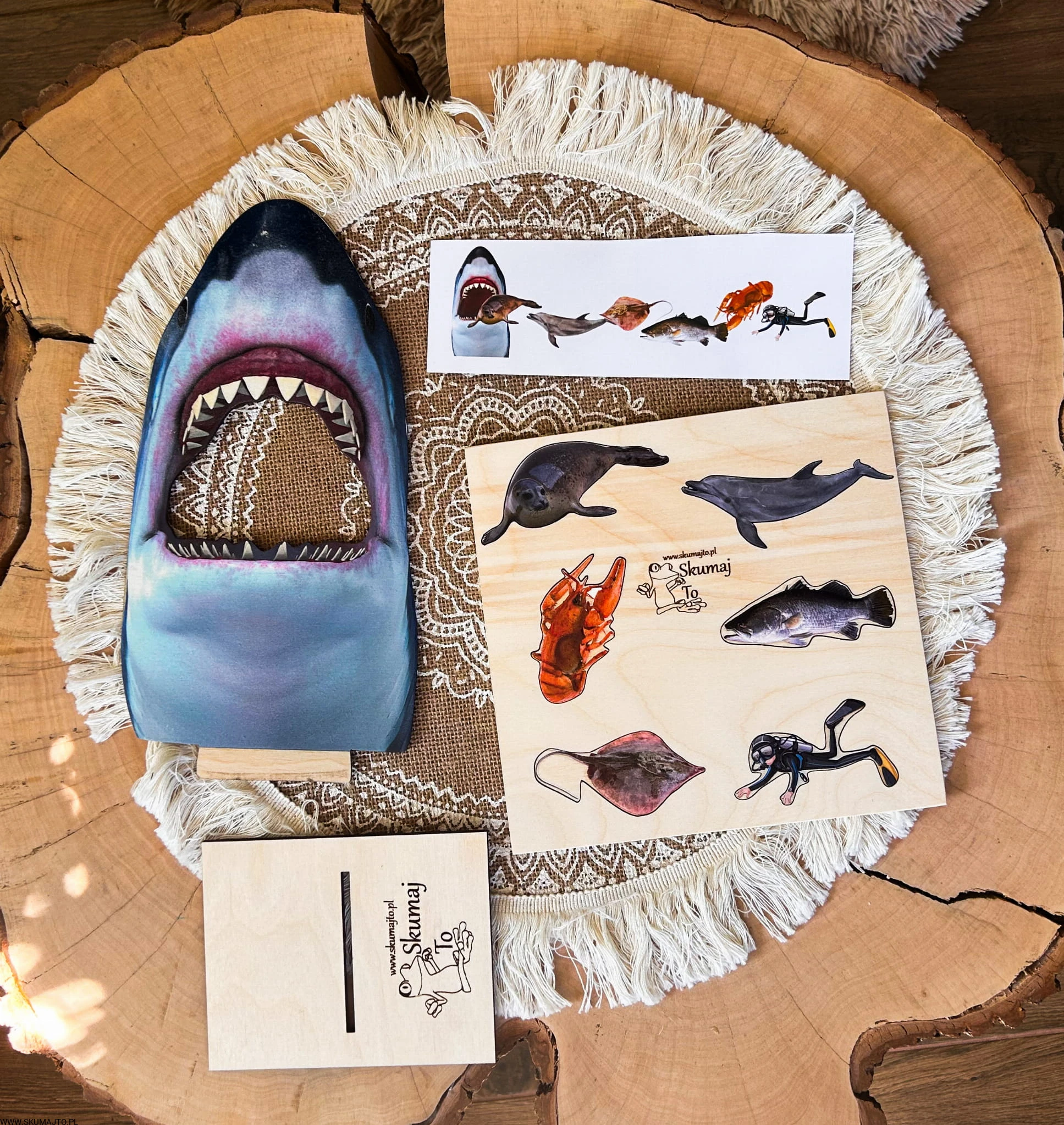 - W zestawie znajdują się morskie zwierzęta, którymi można karmić rekina.