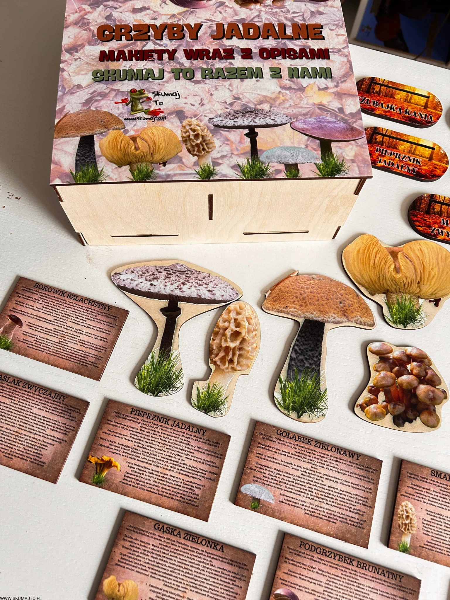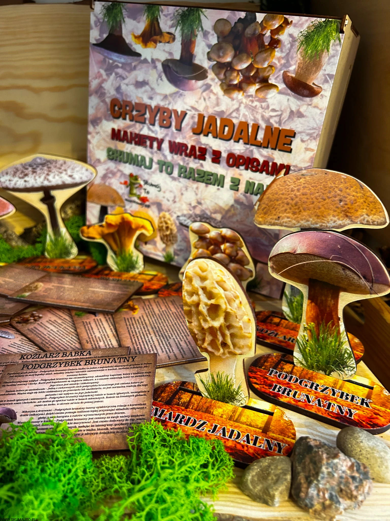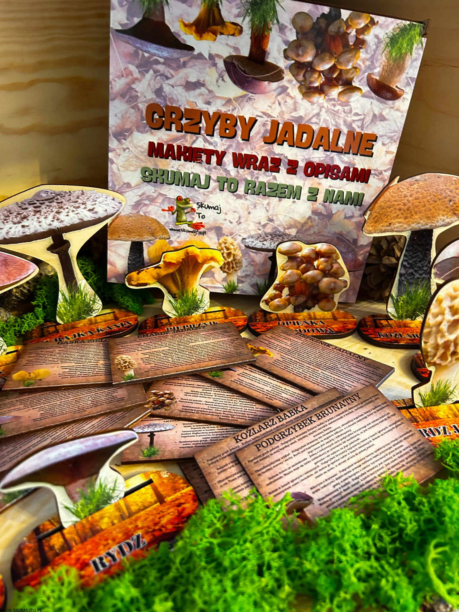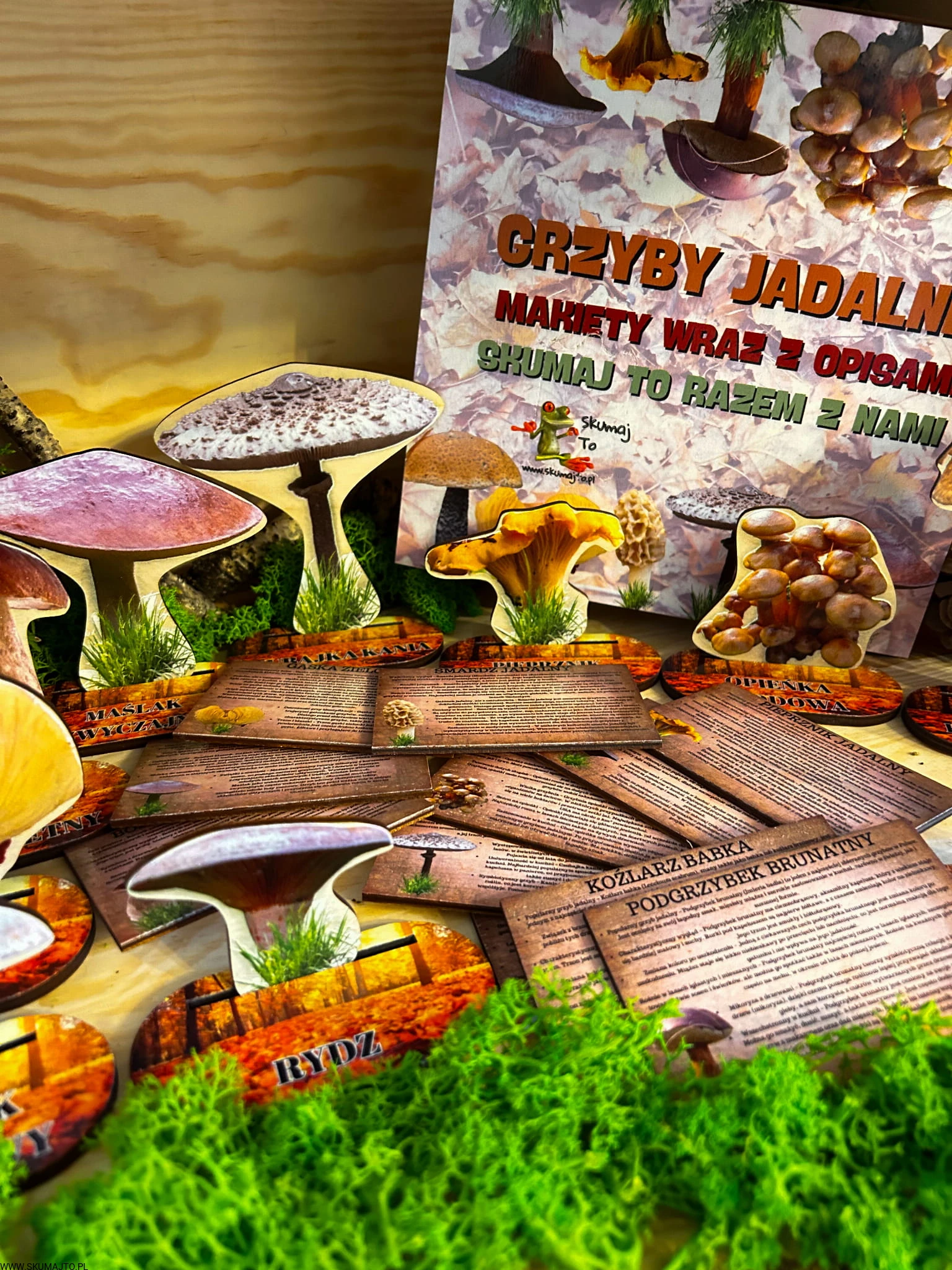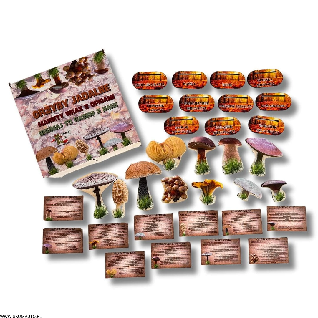 Grzyby jadalne- drewniana makieta z kartami