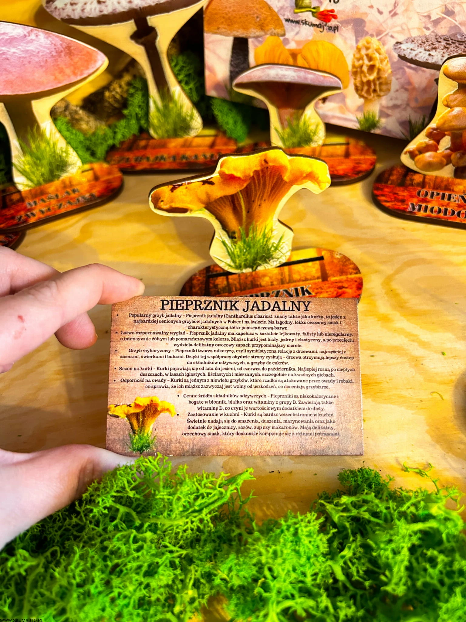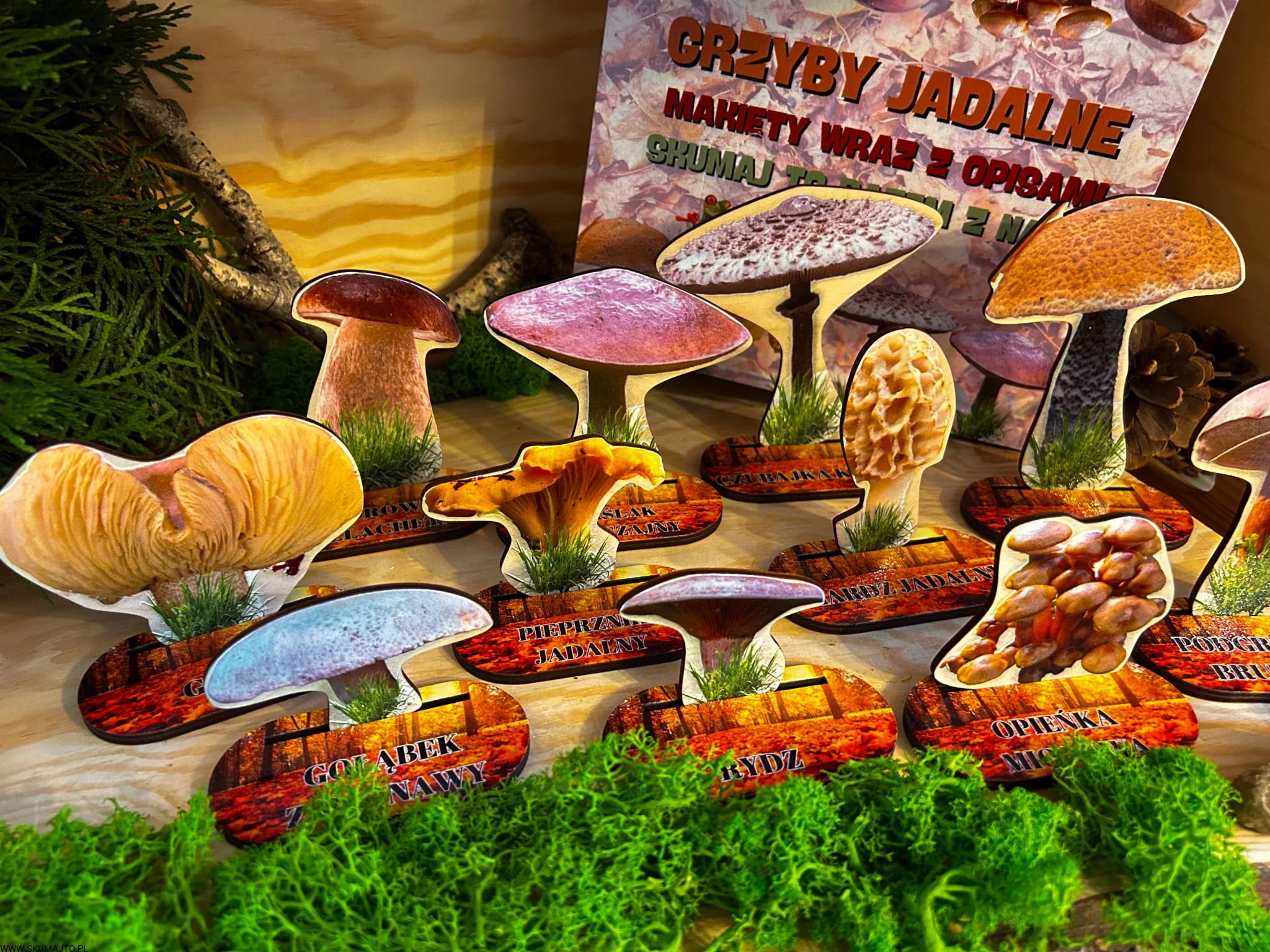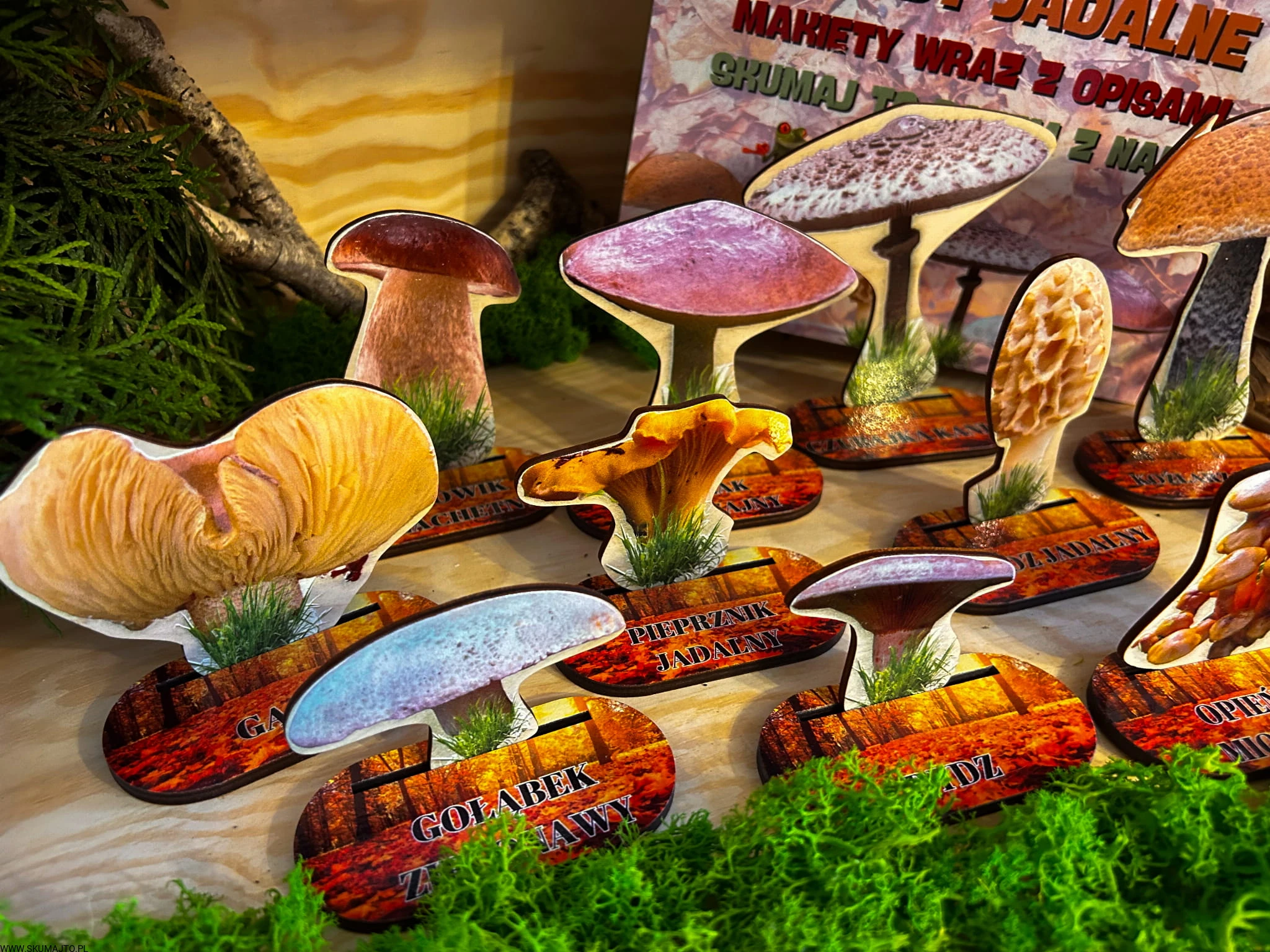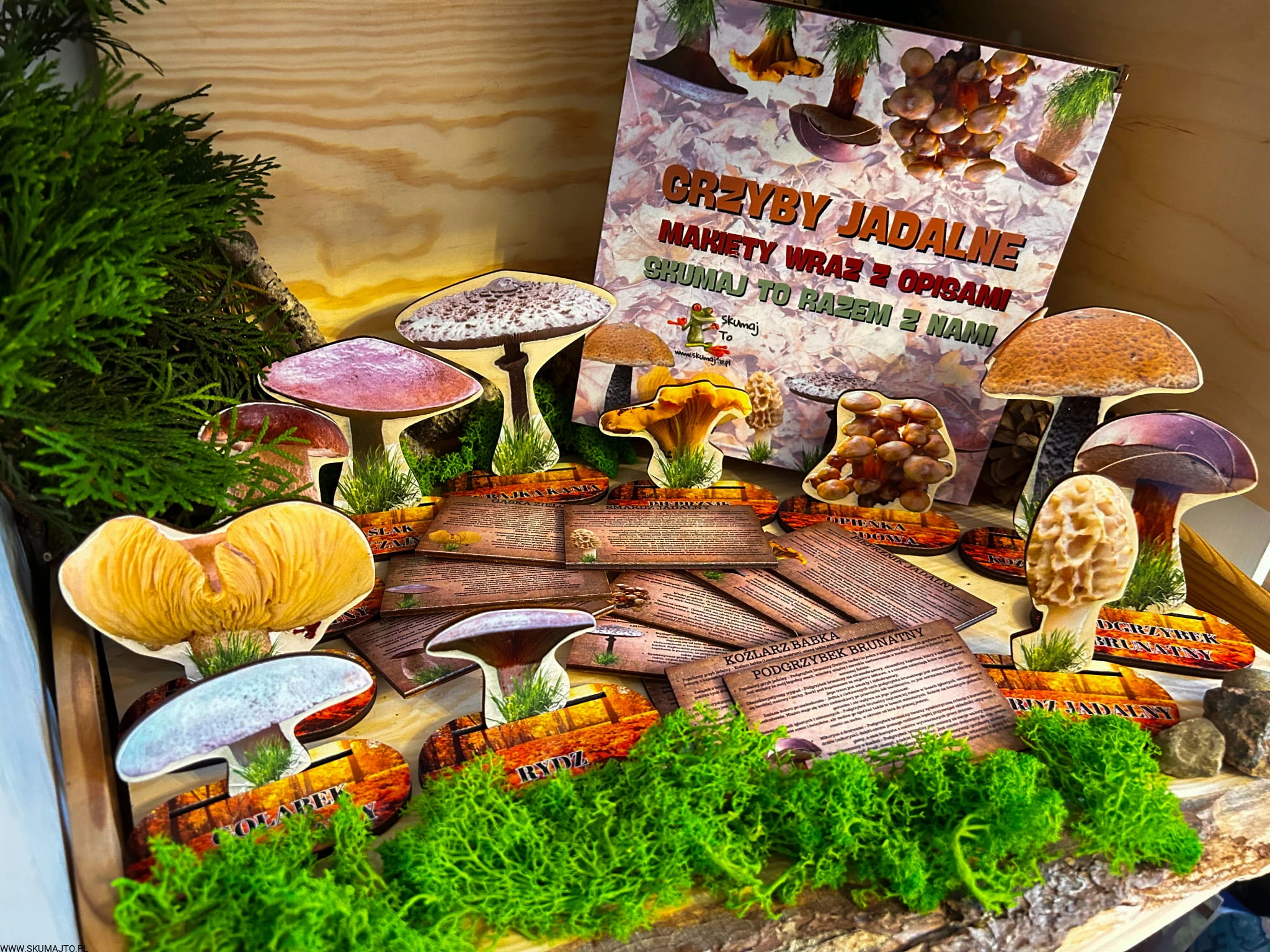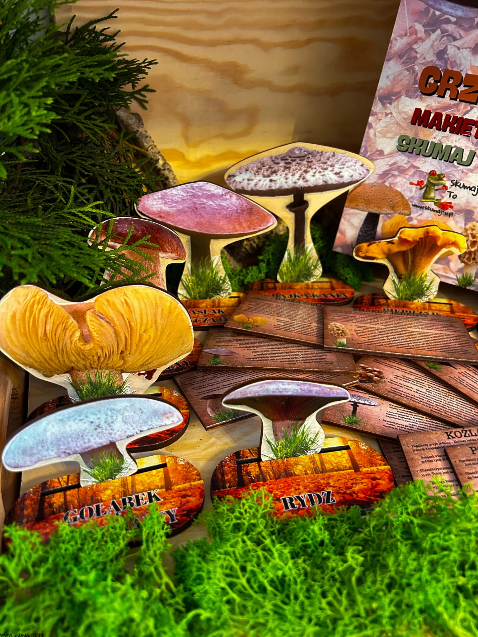 Grzyby jadalne- drewniana makieta z kartami
