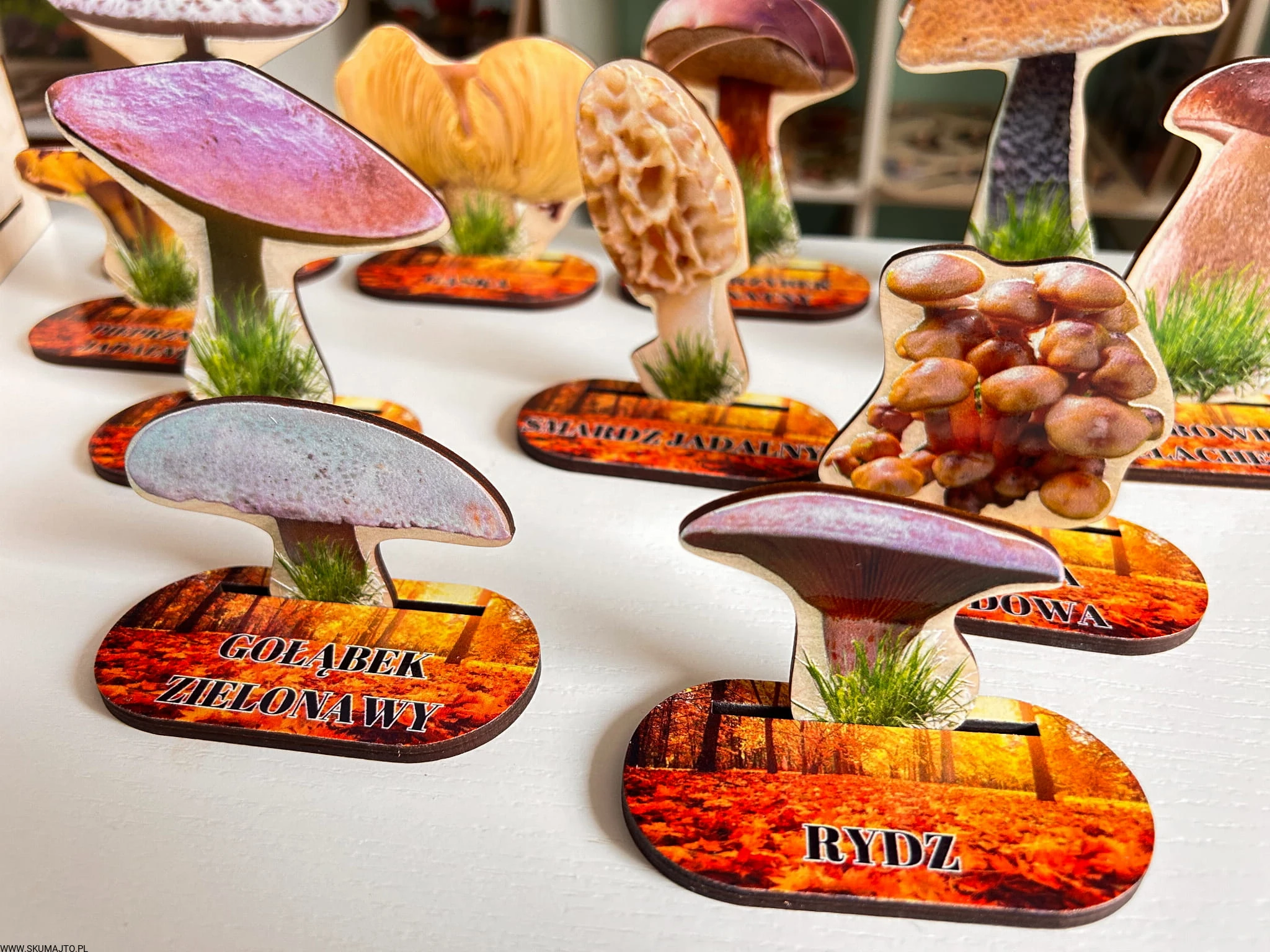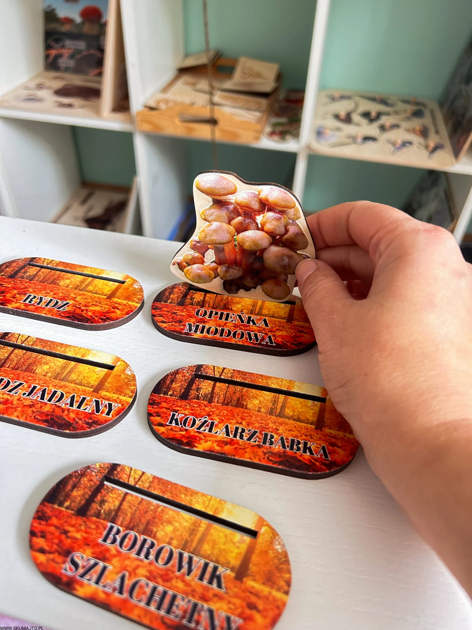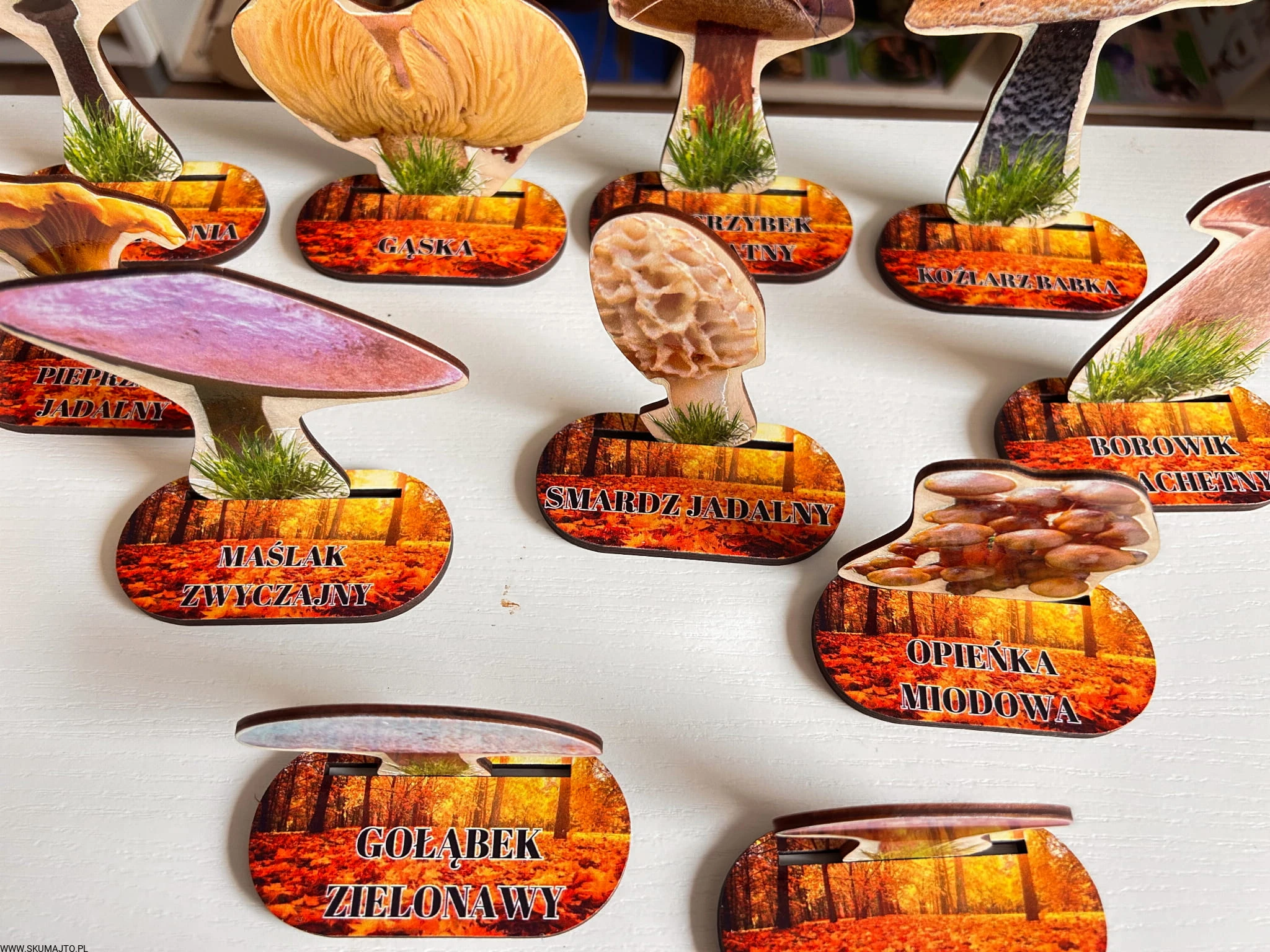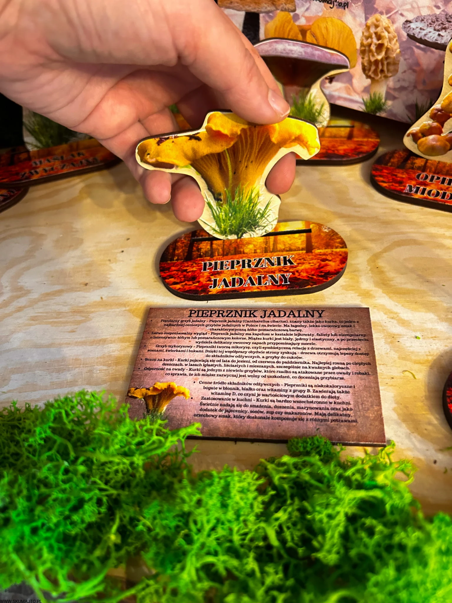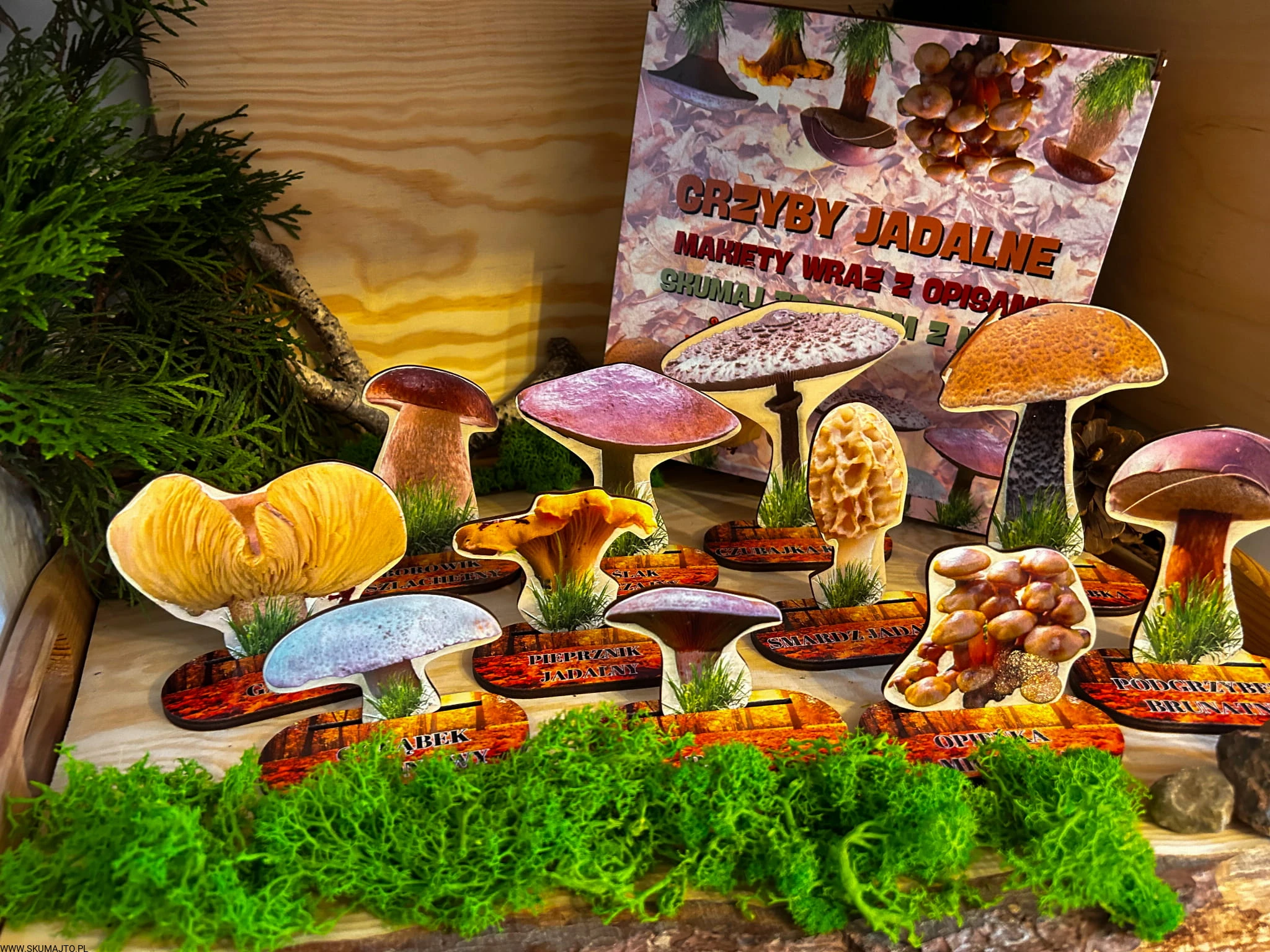 Grzyby jadalne- drewniana makieta z kartami