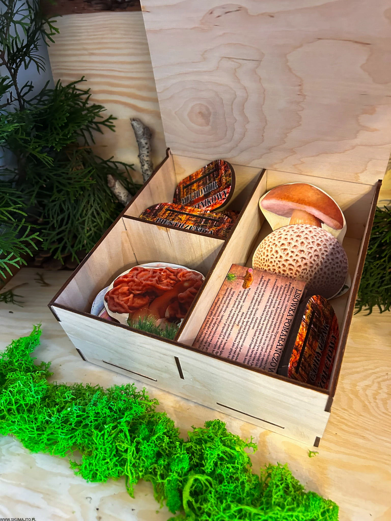 Czy widzisz już swoje dziecko, jak z zaciekawieniem sięga po pięknie zaprojektowane pudełko (20x20 cm) i otwiera je z błyskiem w oku? Ten moment, kiedy w jego dłoniach pojawiają się te perfekcyjnie odwzorowane grzyby – to prawdziwa magia dziecięcej fascynacji. A Ty? Jesteś jego przewodnikiem, który wspiera w odkrywaniu świata pełnego przyrody, ryzyka i odpowiedzialności.