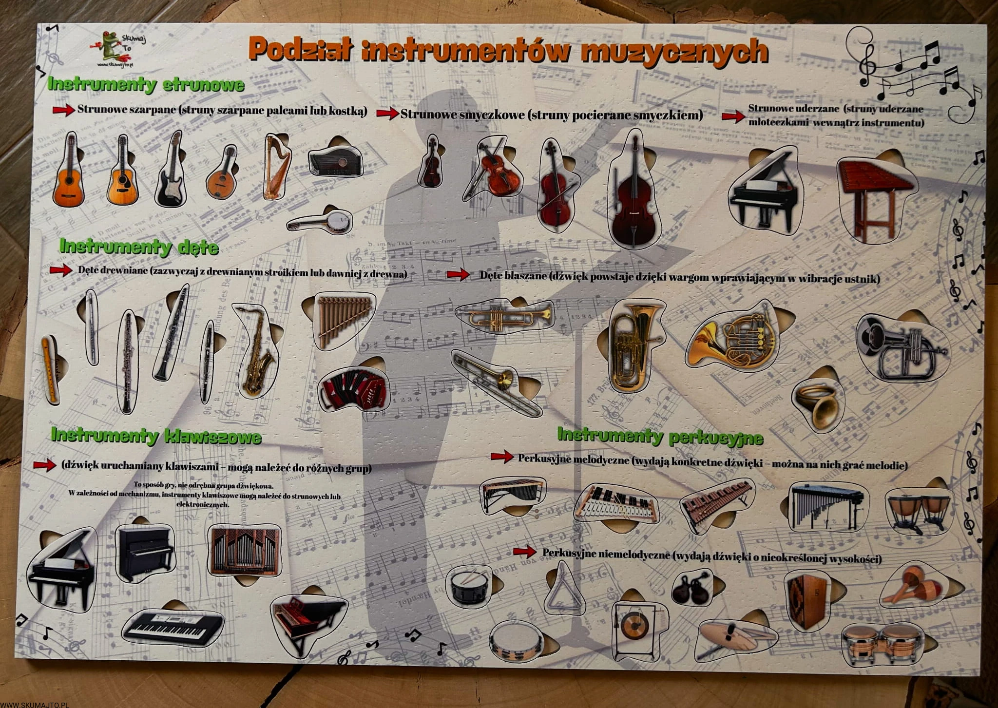 W świecie pełnym elektronicznych dźwięków i grających zabawek trudno znaleźć materiał, który naprawdę uczy i rozwija muzyczną ciekawość dziecka. Rodzice i nauczyciele często szukają czegoś, co w przystępny, konkretny i jednocześnie atrakcyjny sposób pozwoli dziecku zrozumieć świat instrumentów muzycznych — ich budowę, brzmienie i klasyfikację. A to przecież temat, który może fascynować przez całe życie!