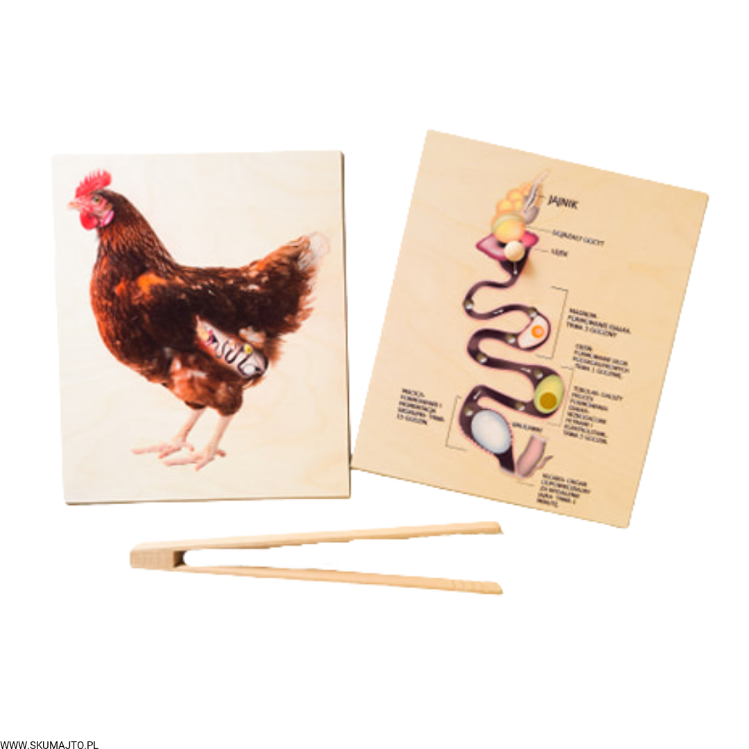 Jak powstaje jajko, drewniana układanka, znoszenie jaja, mała motoryka