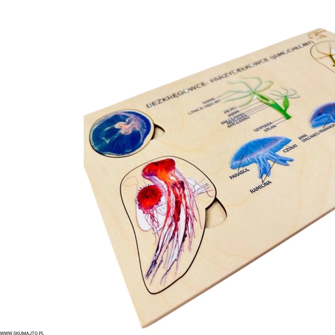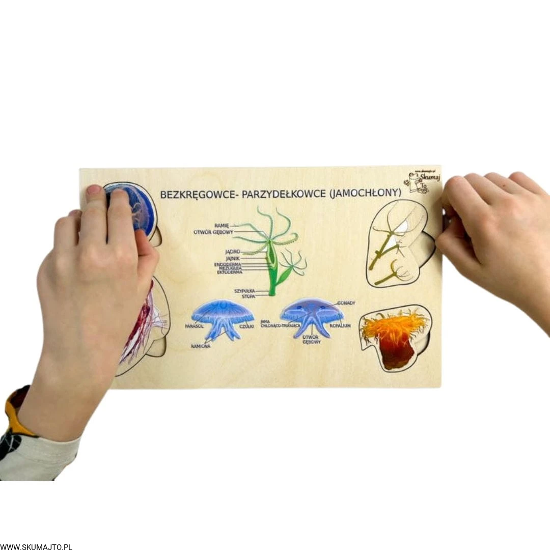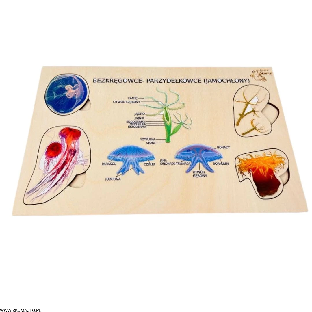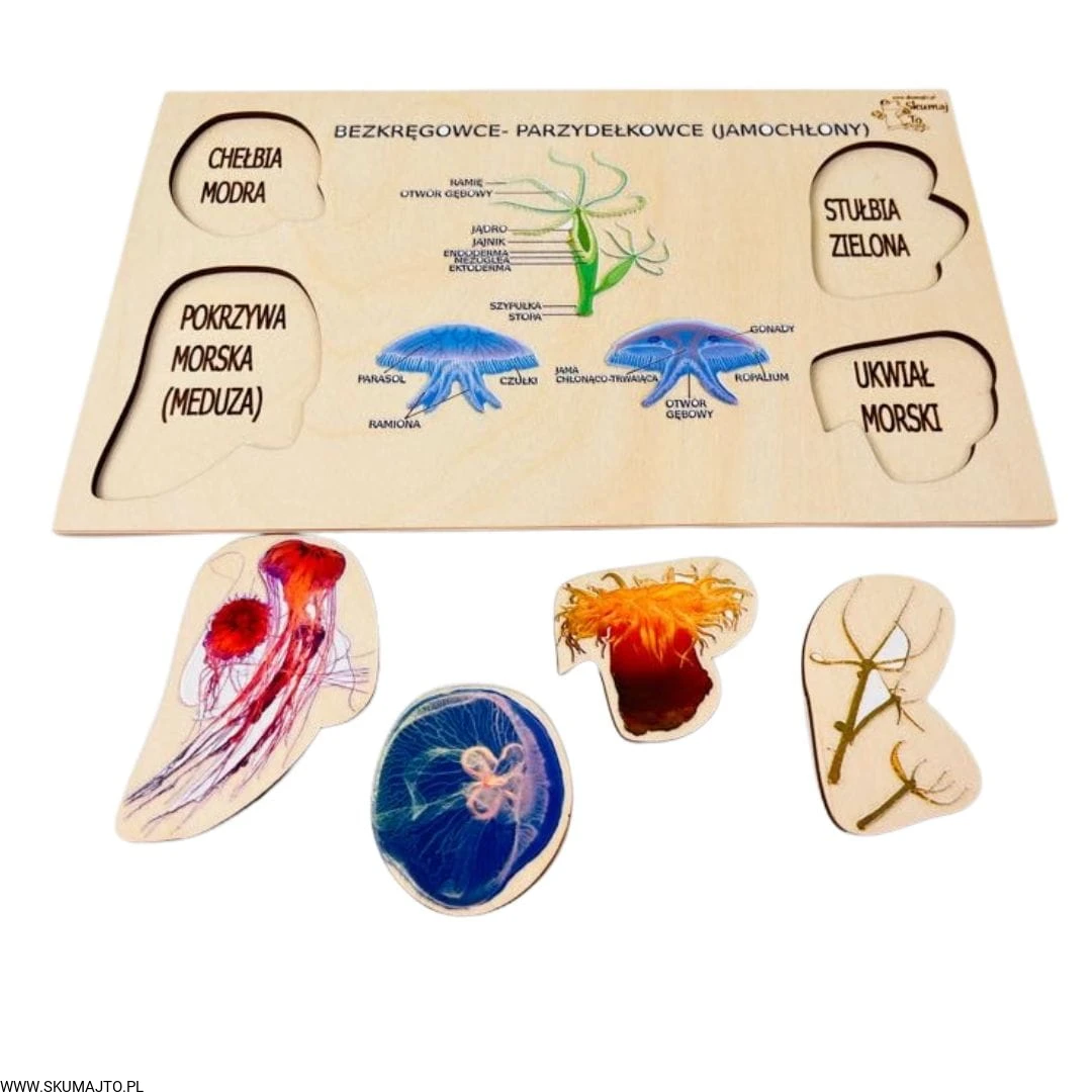 Poznaj fascynujący świat jamochłonów dzięki naszej edukacyjnej układance! Ta pomoc dydaktyczna została stworzona, aby w przystępny sposób przybliżyć dzieciom budowę anatomiczną oraz różnorodność gatunkową jamochłonów.