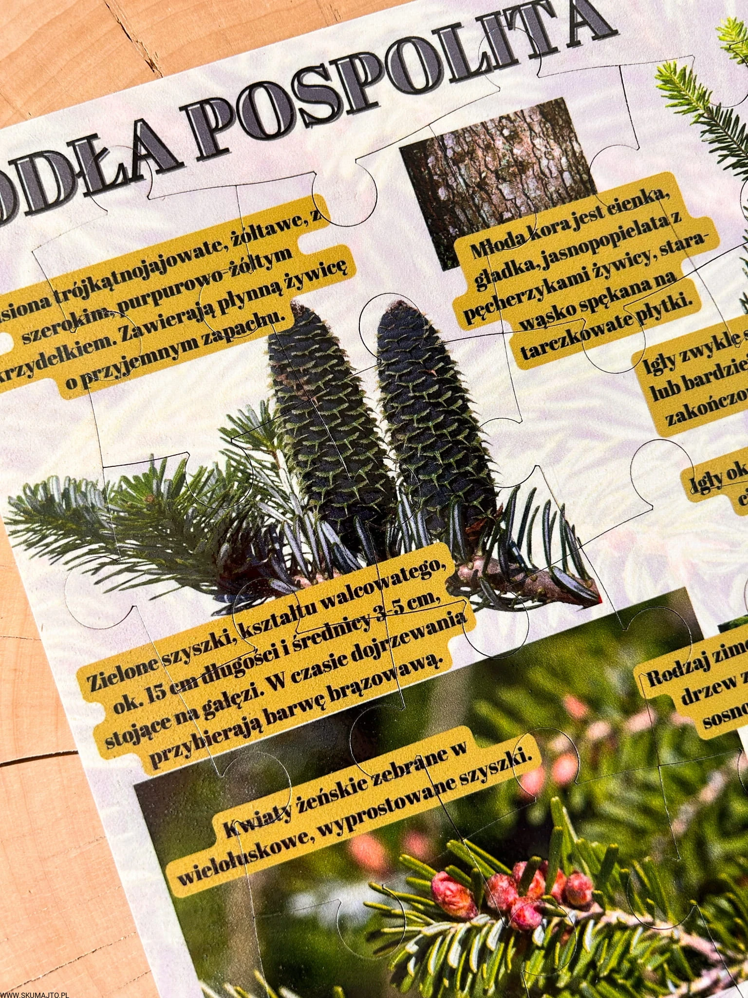 Jodła pospolita, układanka drewniana, edukacja leśna