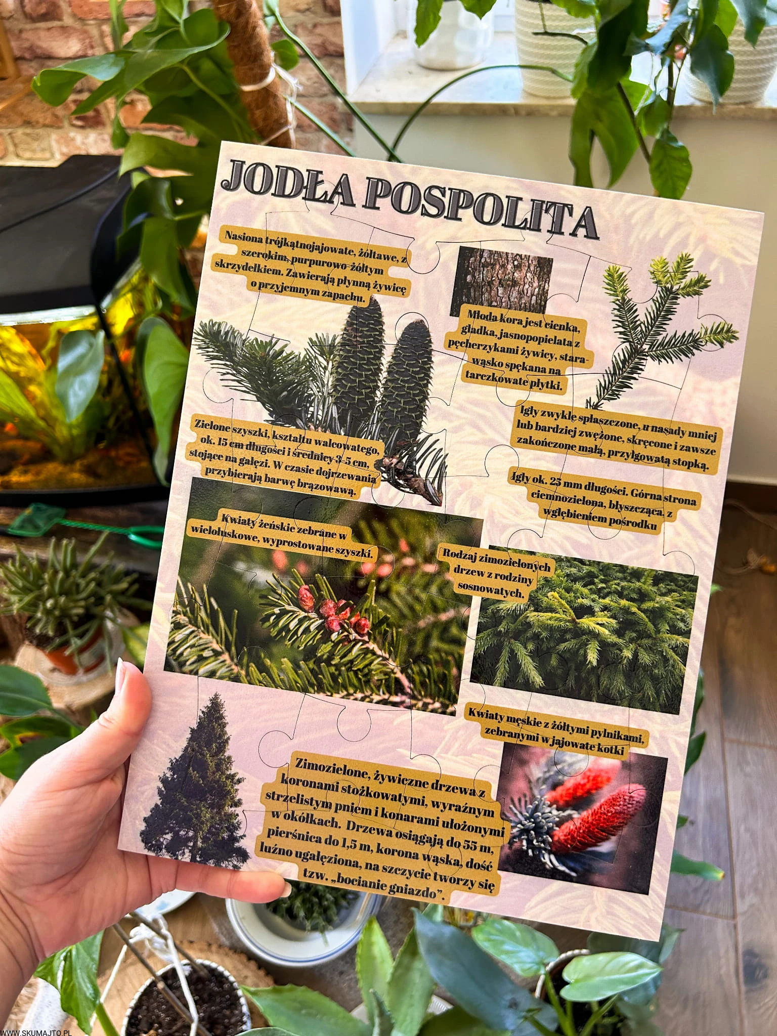Zabawki edukacyjne, nauka przez zabawę: Nasza układanka to nie tylko zabawa, to także cenna lekcja o jodle pospolitej. Dzieci poznają różnorodność tego drzewa i dowiadują się fascynujących faktów, rozwijając jednocześnie swoje umiejętności.