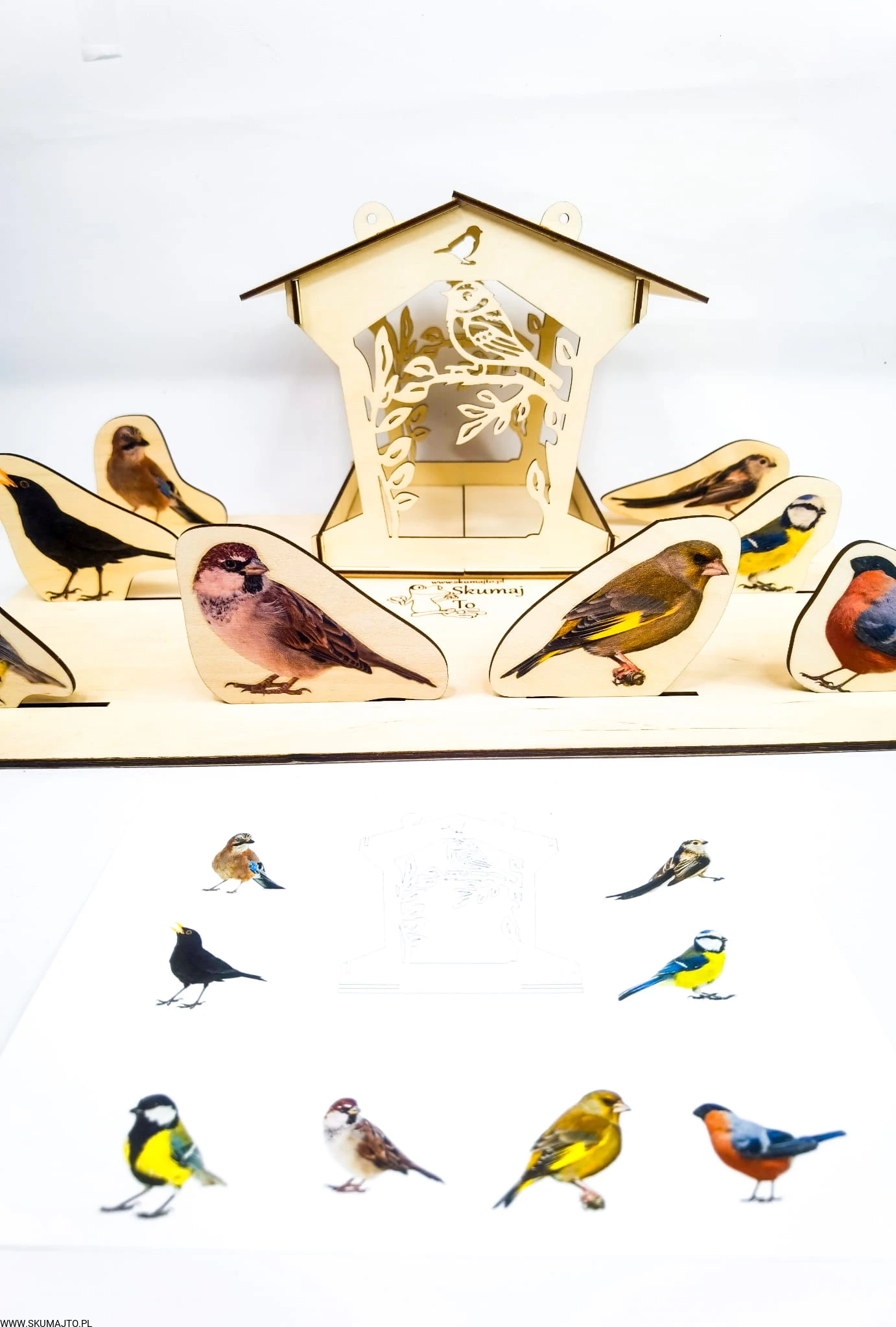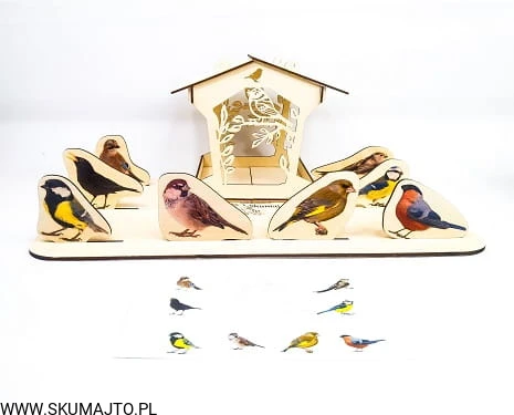 - Odwzorowywanie: Umieść karmnik na podstawie i układaj ptaszki zgodnie z dołączonymi kartami pracy.