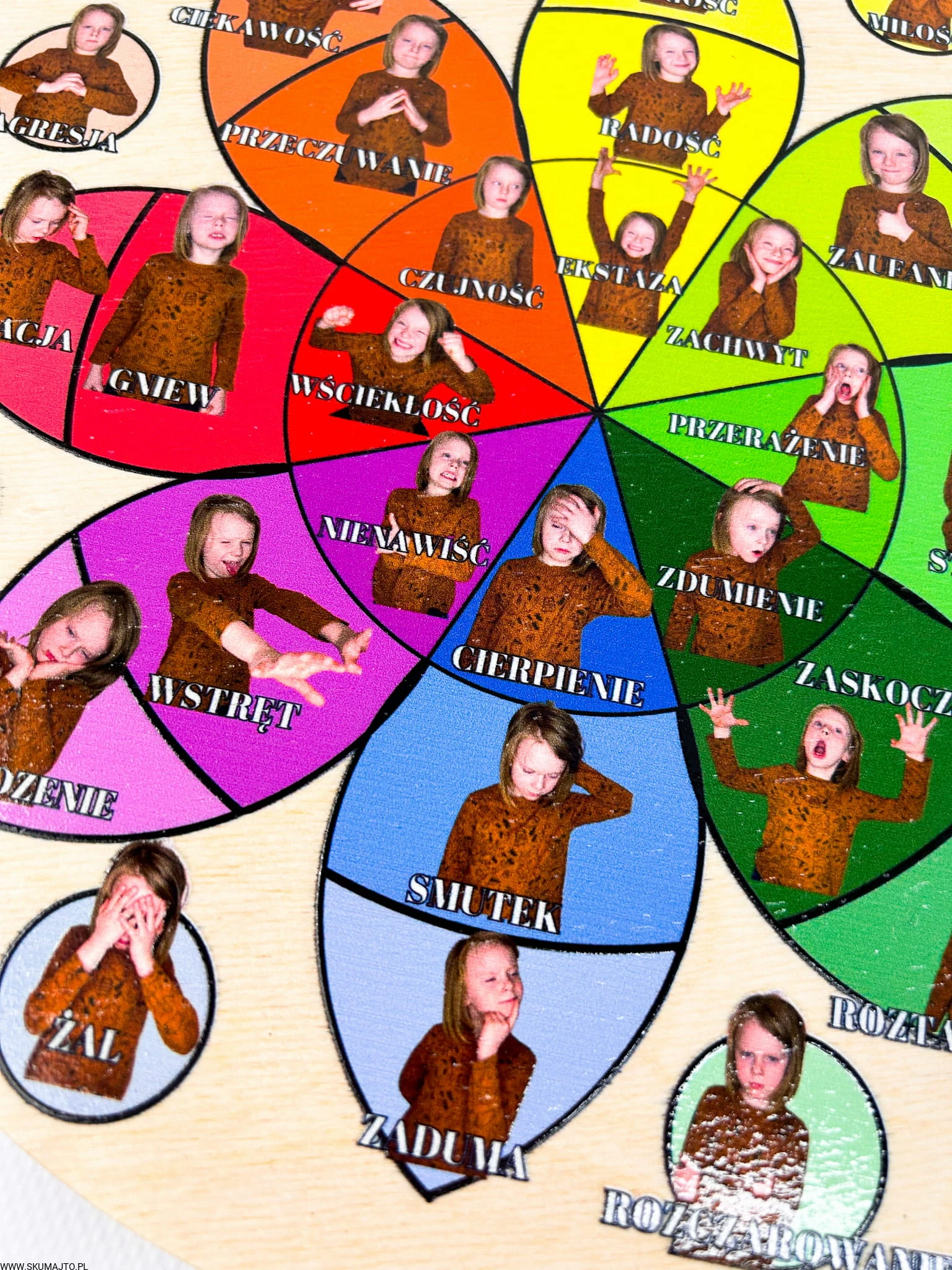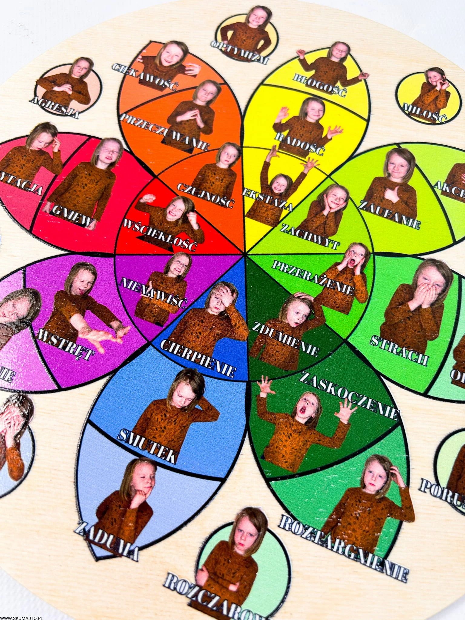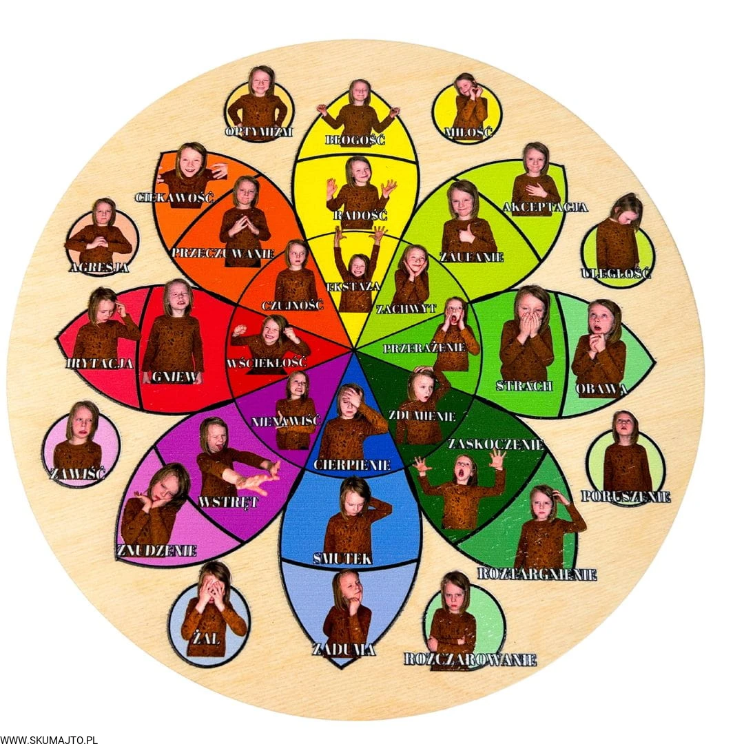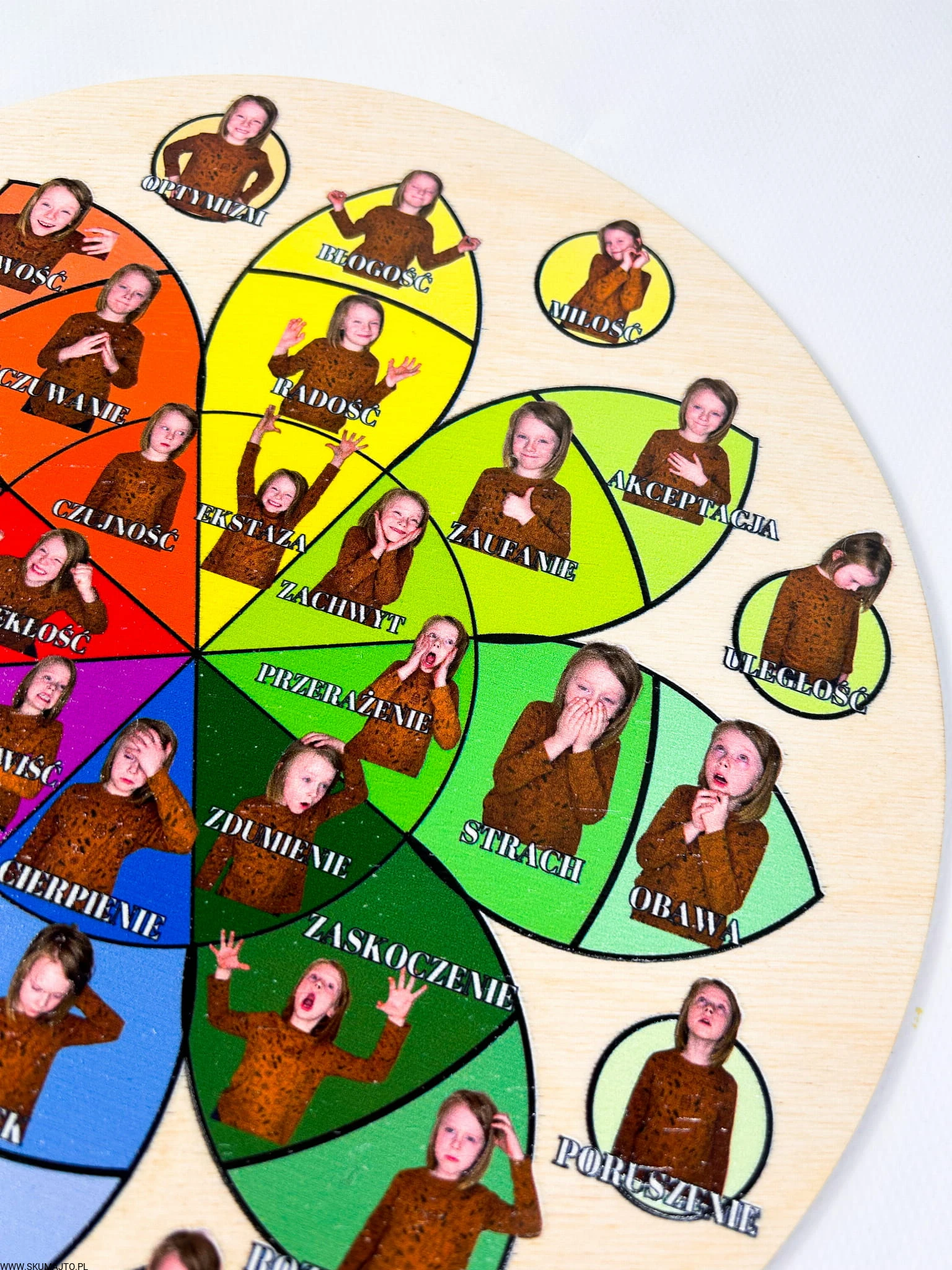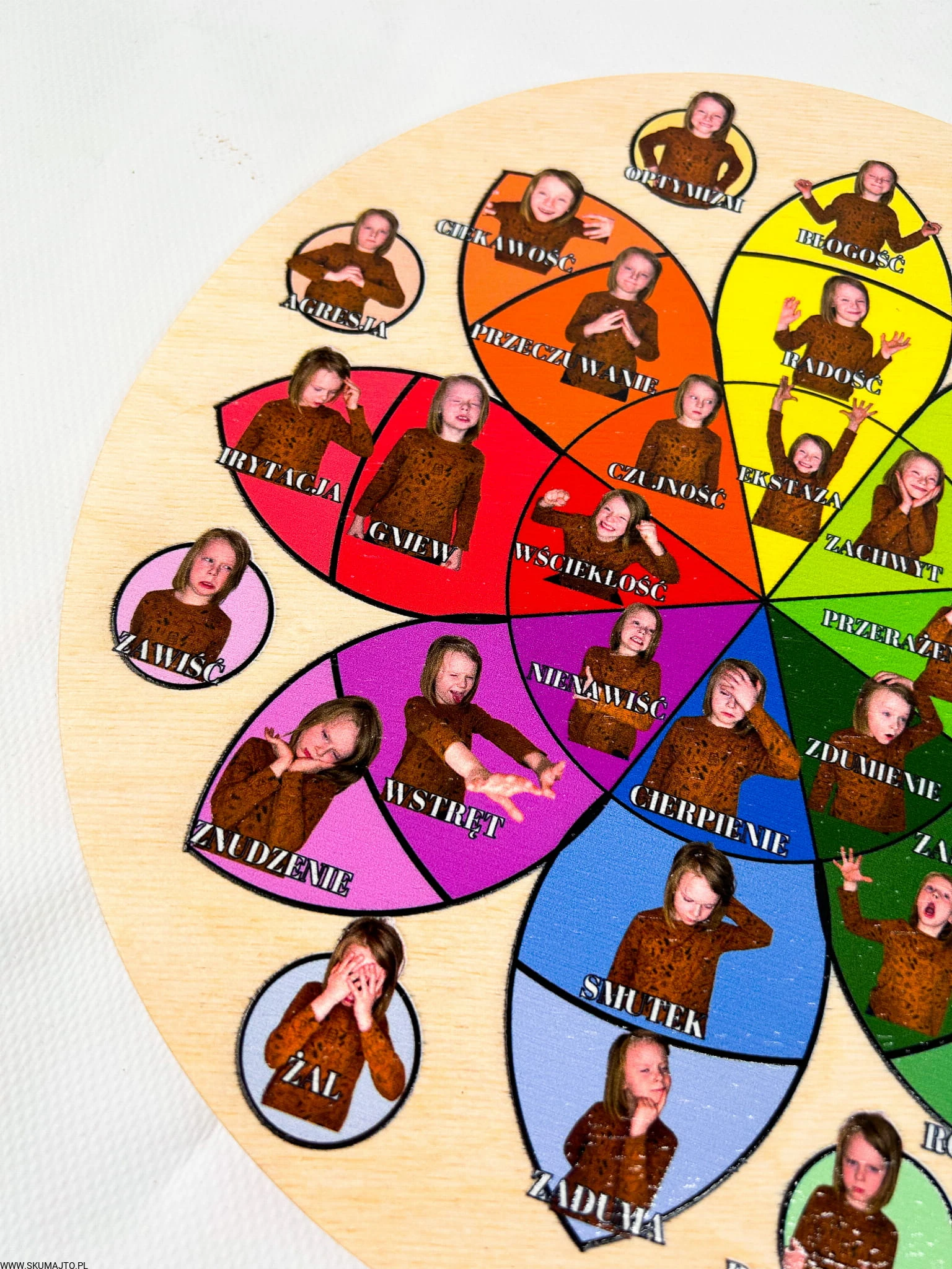 Koło emocji, emocje dziecka, drewniana układanka o emocjach