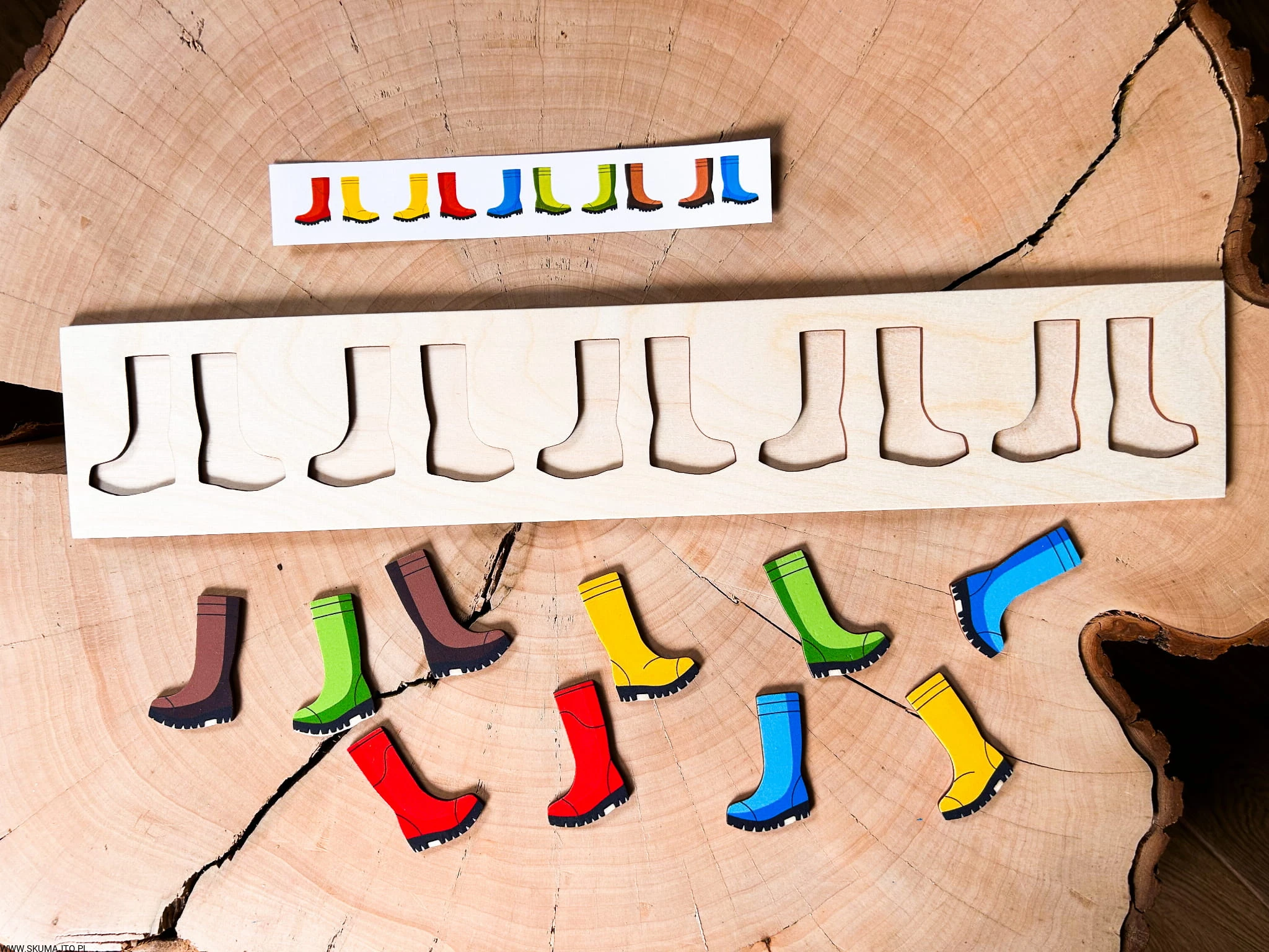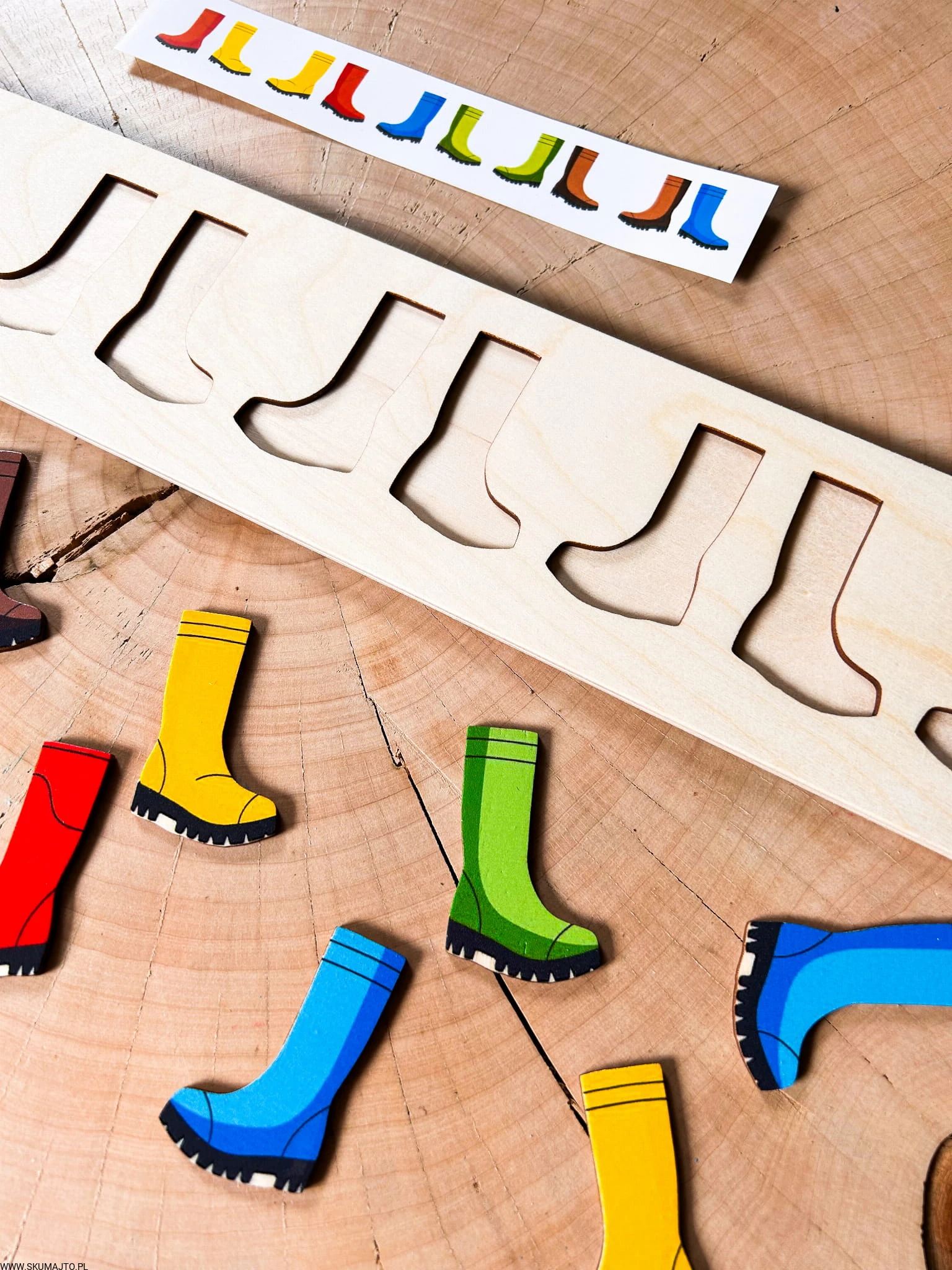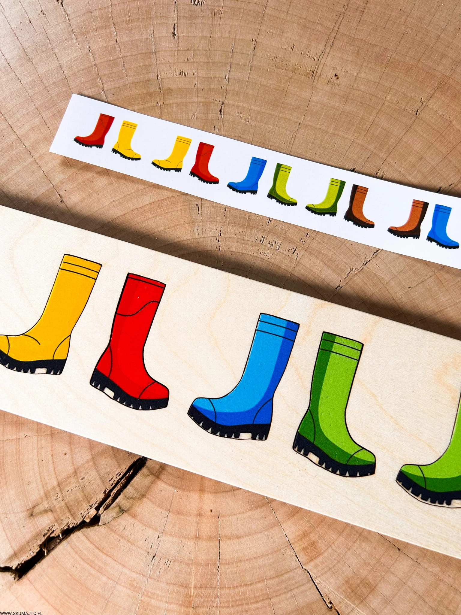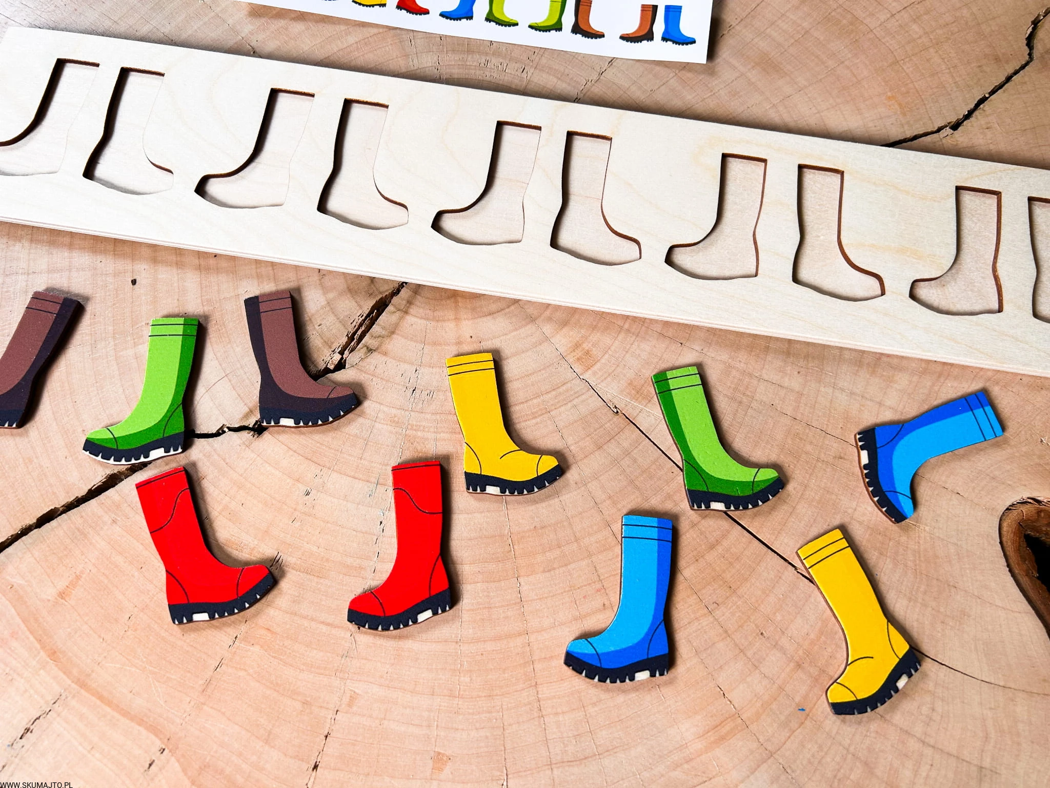 Kolorowe kalosze- drewniana układanka do odwzorowywania