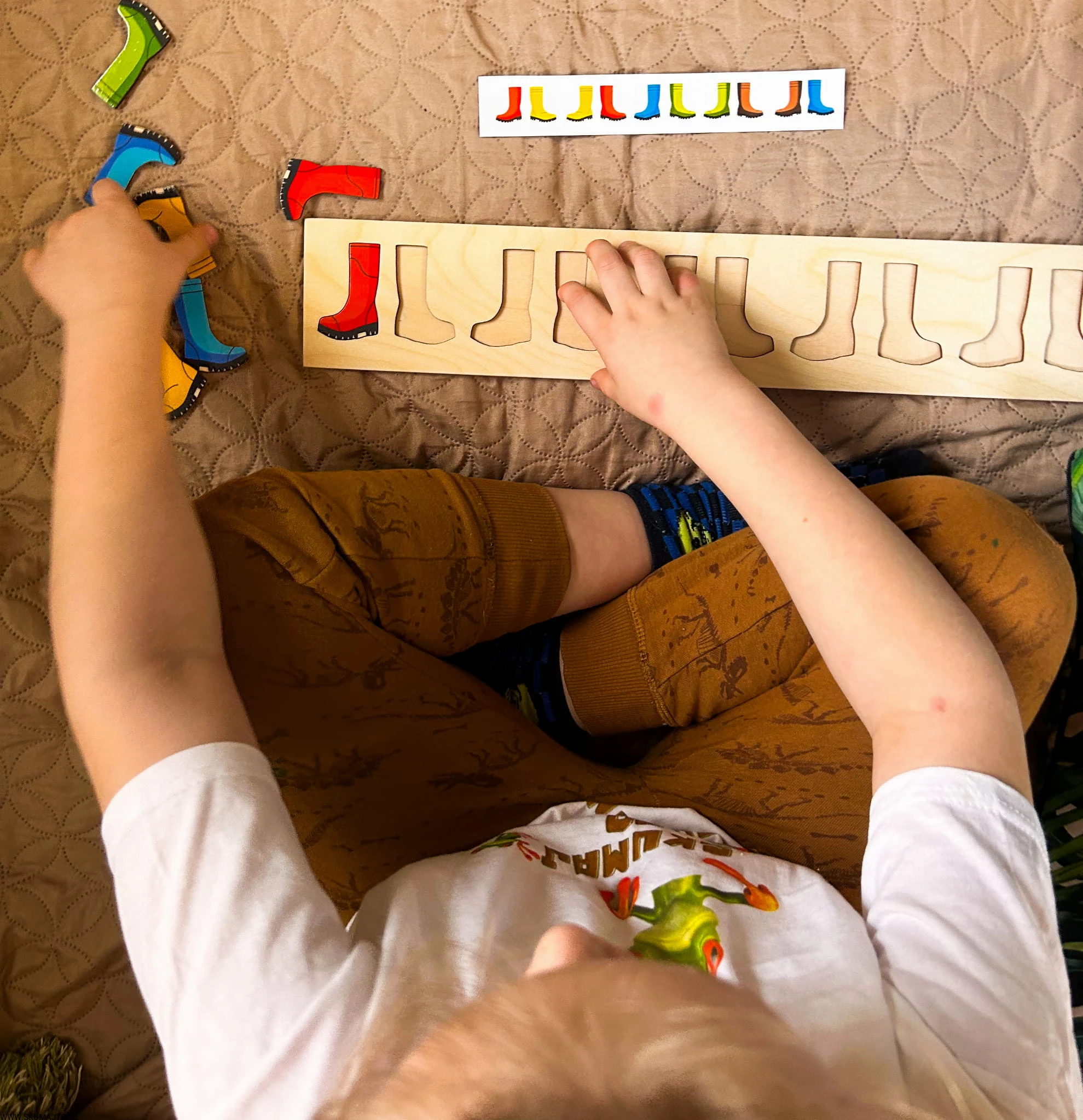 Wsparcie Rozwoju Wizualno-Przestrzennego: Dopasowywanie kolorowych kaloszy do odpowiednich miejsc na podstawie rozwija zdolności wizualno-przestrzenne, które są fundamentem do nauki czytania oraz pisania.