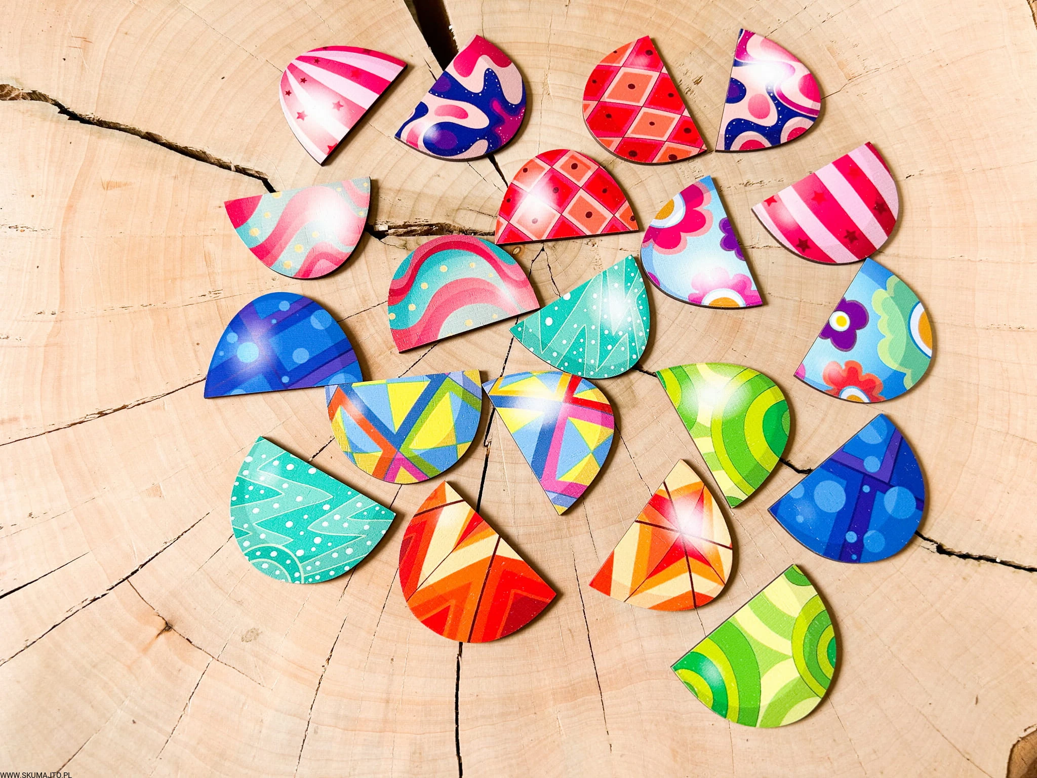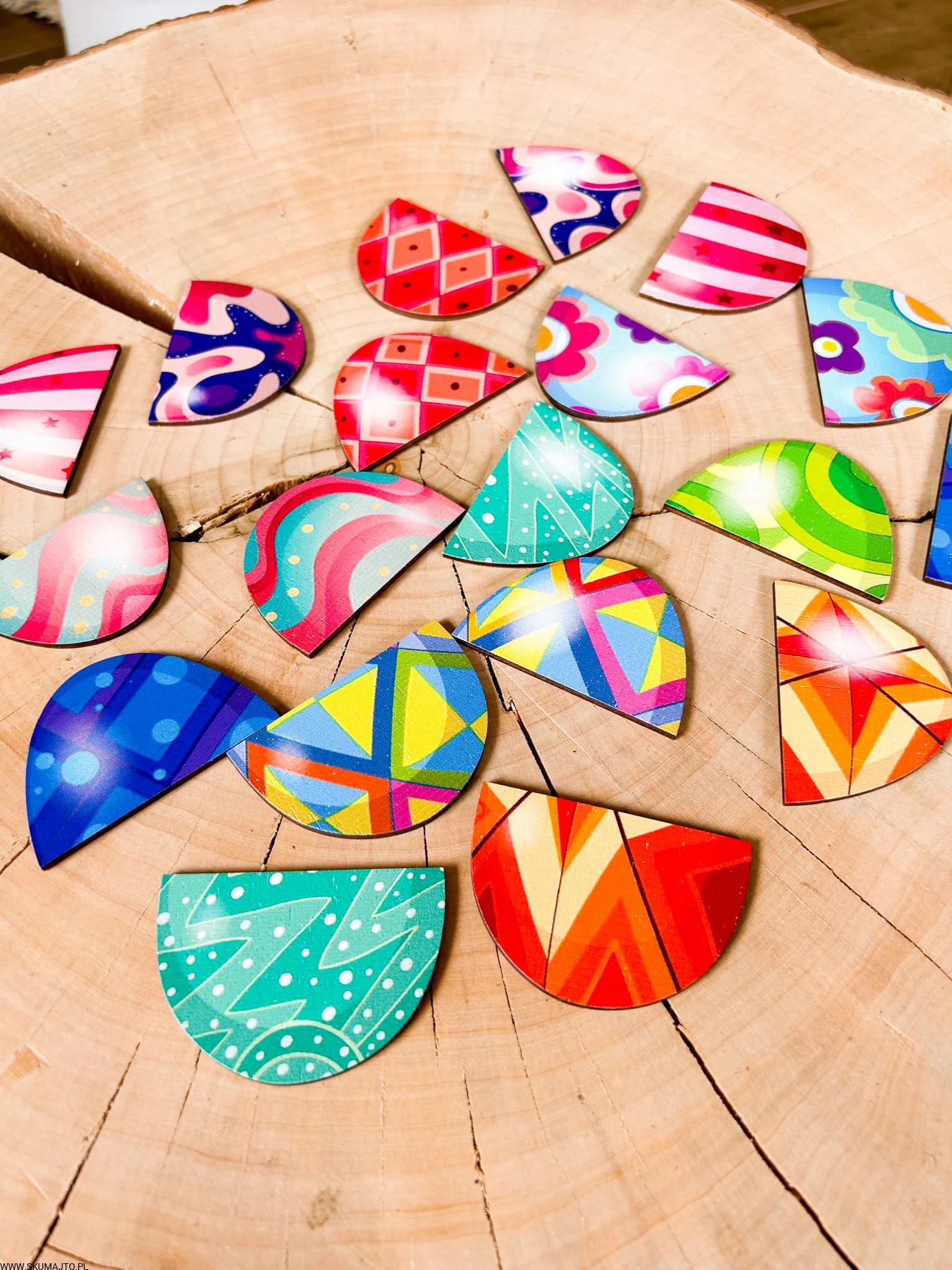 - Nauka wzorów i kolorów: Dzieci uczą się rozróżniać i dopasowywać wzory oraz kolory, co pomaga w rozwijaniu percepcji wzrokowej.