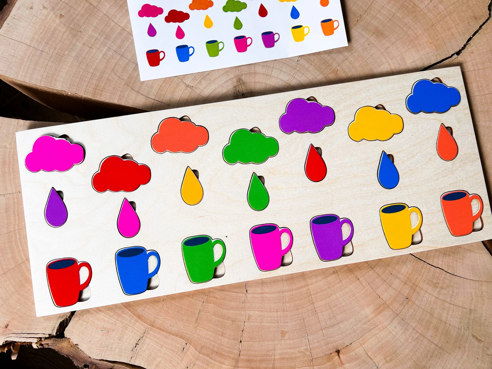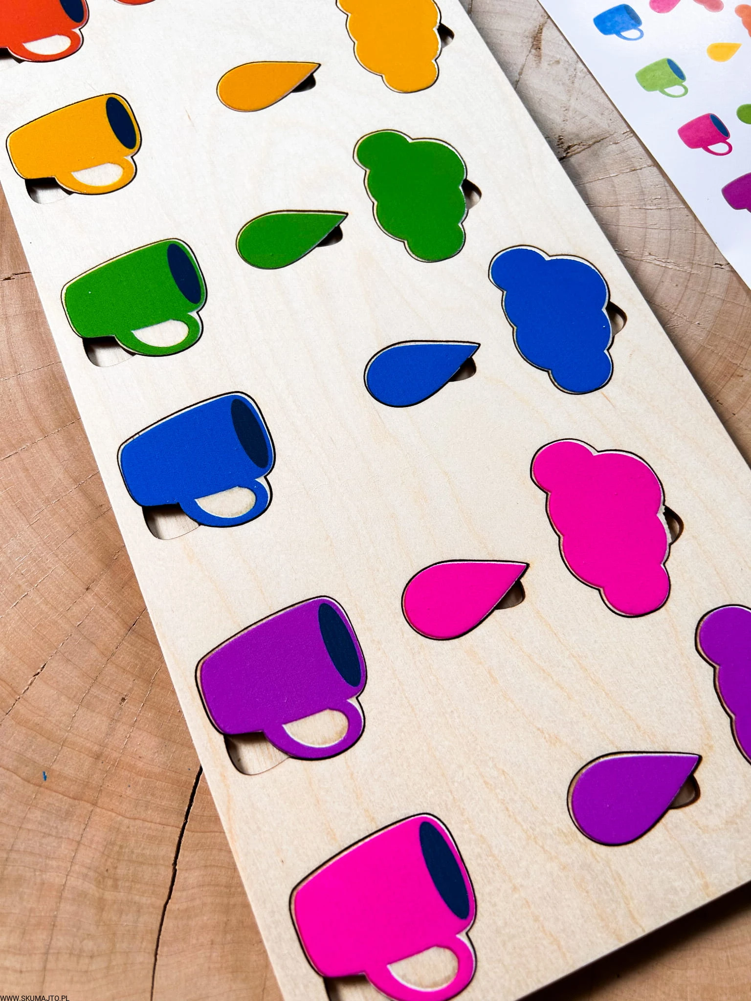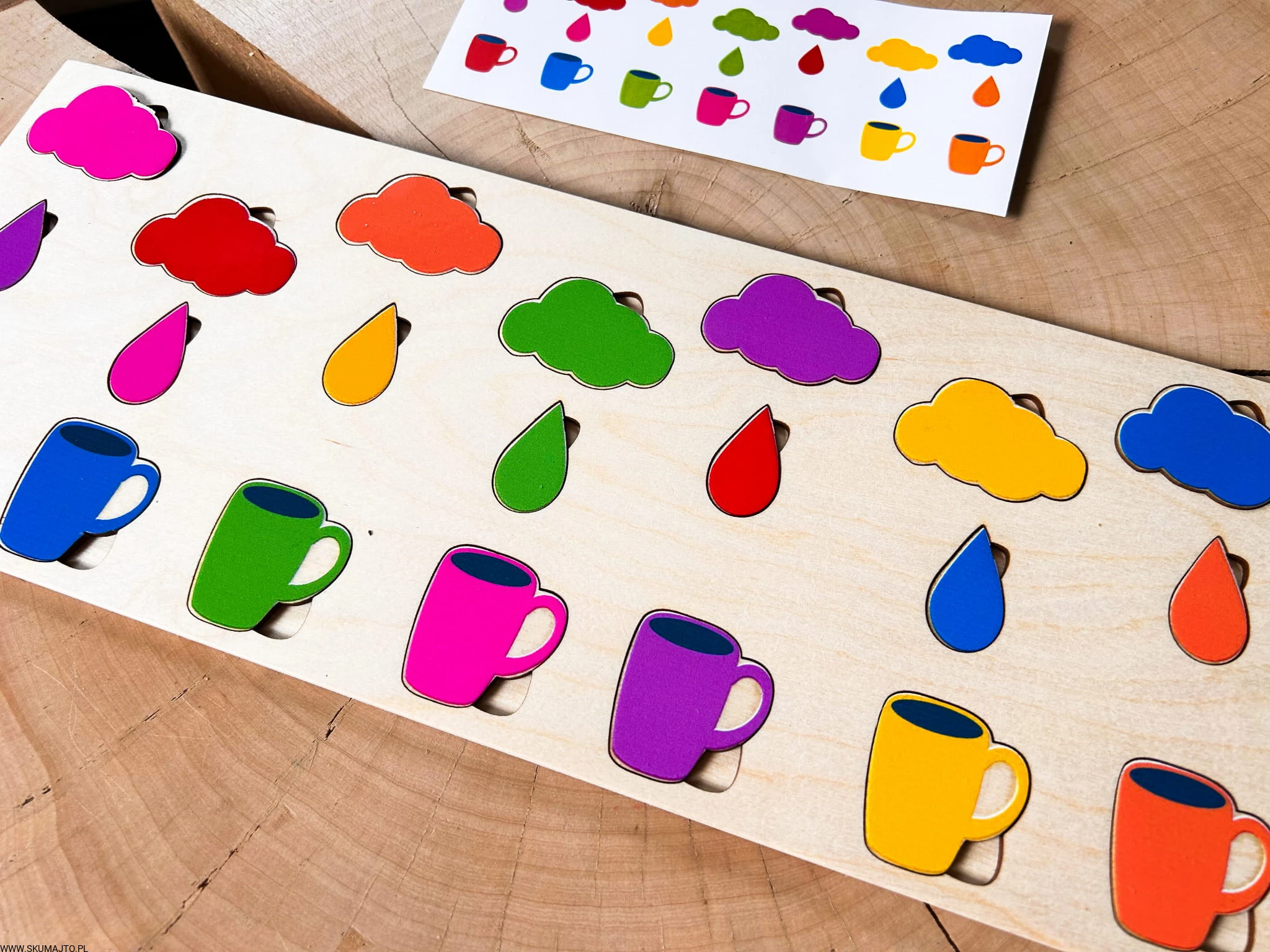 Kolorowy deszcz- drewniana układanka do odwzorowywania, montessori