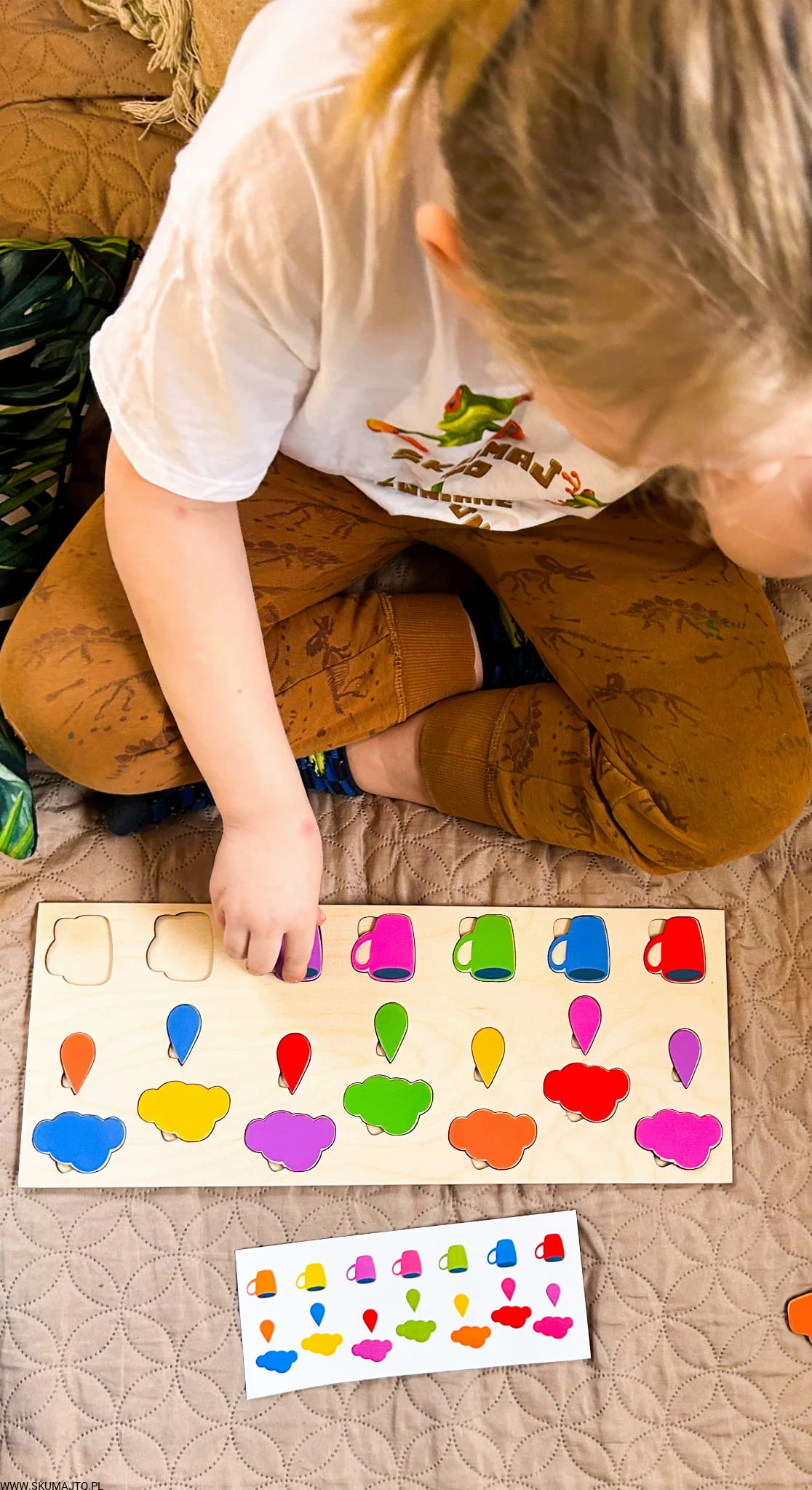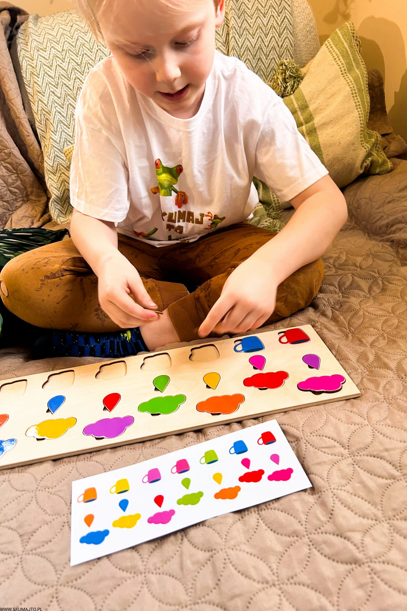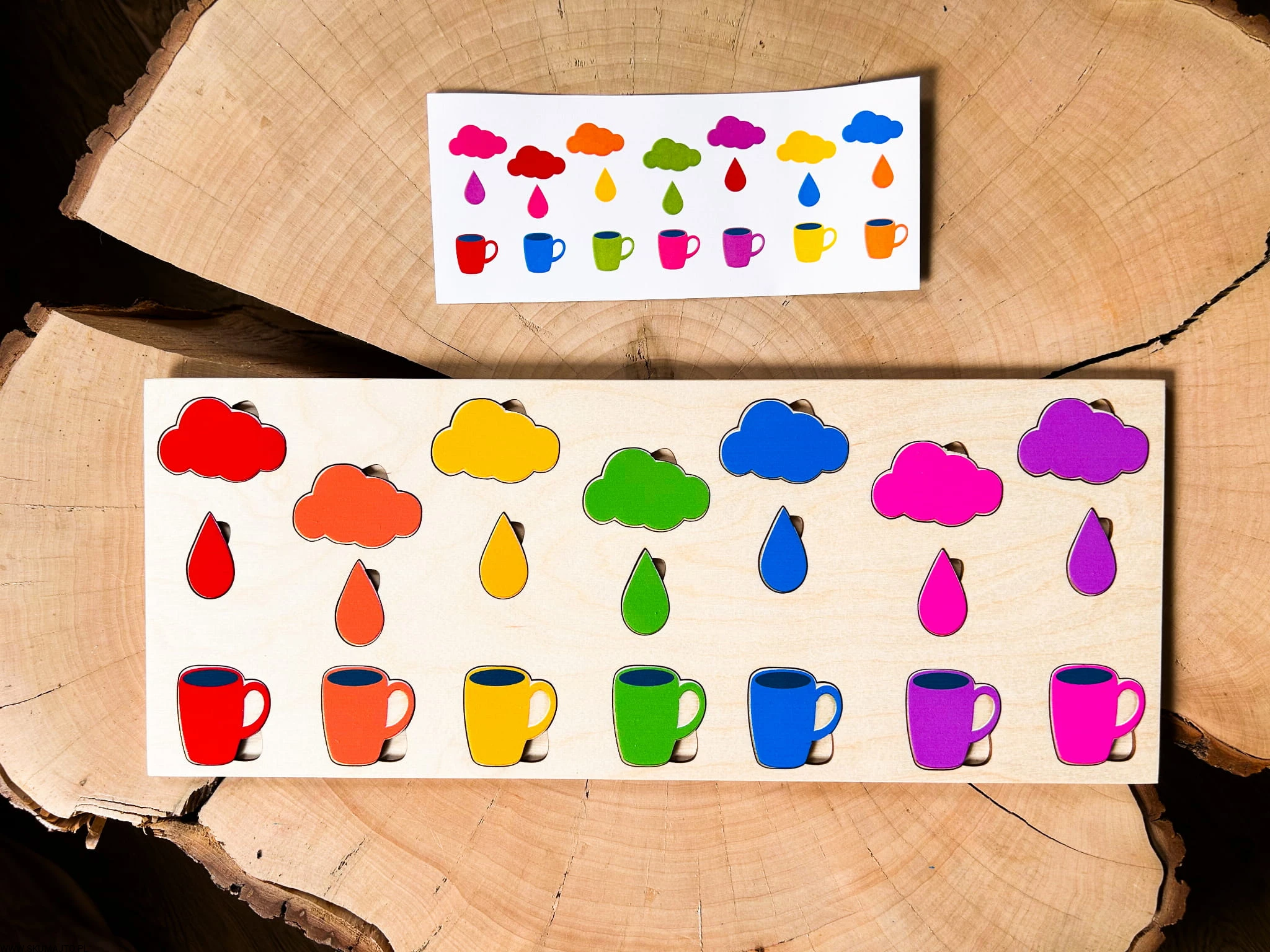 Kolorowy deszcz- drewniana układanka do odwzorowywania, montessori