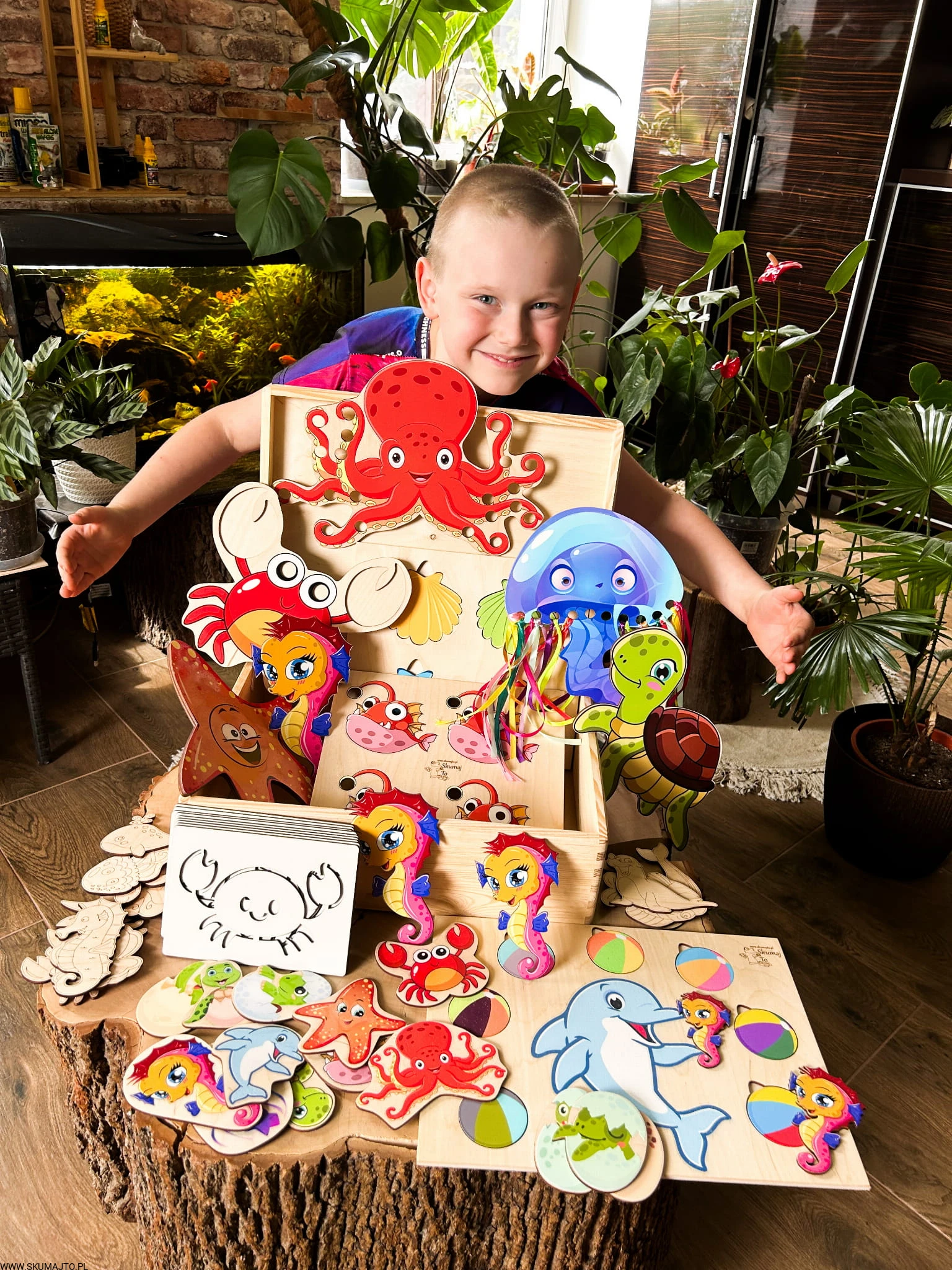 Zanurz swoje dziecko w fascynujący świat podwodnych przygód z naszym "Kreatywnym Morskim Pudełkiem Pełnym Niespodzianek". To niepowtarzalne drewniane pudełko o wymiarach 45x30x14 cm kryje w sobie aż 13 edukacyjnych układanek, które rozwijają zdolności manualne, logiczne oraz kreatywne myślenie dziecka. Każdy element zestawu został starannie wykonany z ekologicznej sklejki, a wszystkie zabawki posiadają certyfikaty CE i EN71, gwarantujące bezpieczeństwo podczas zabawy.