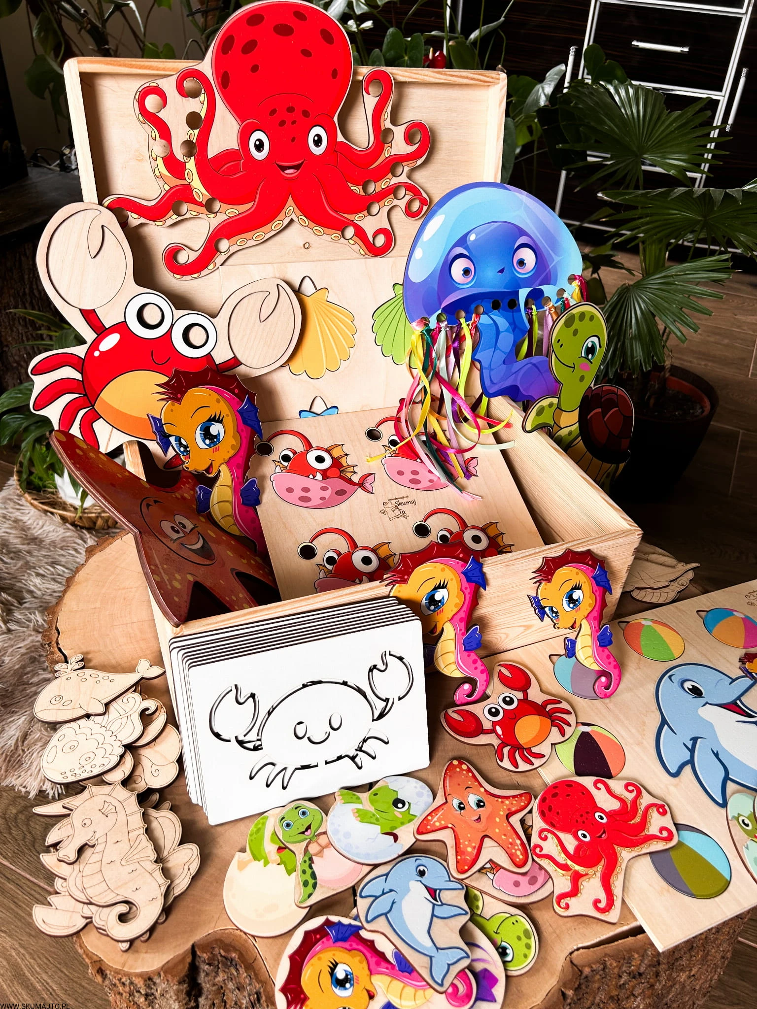 Kreatywne morskie pudełko pełne niespodzianek, drewniane układanki