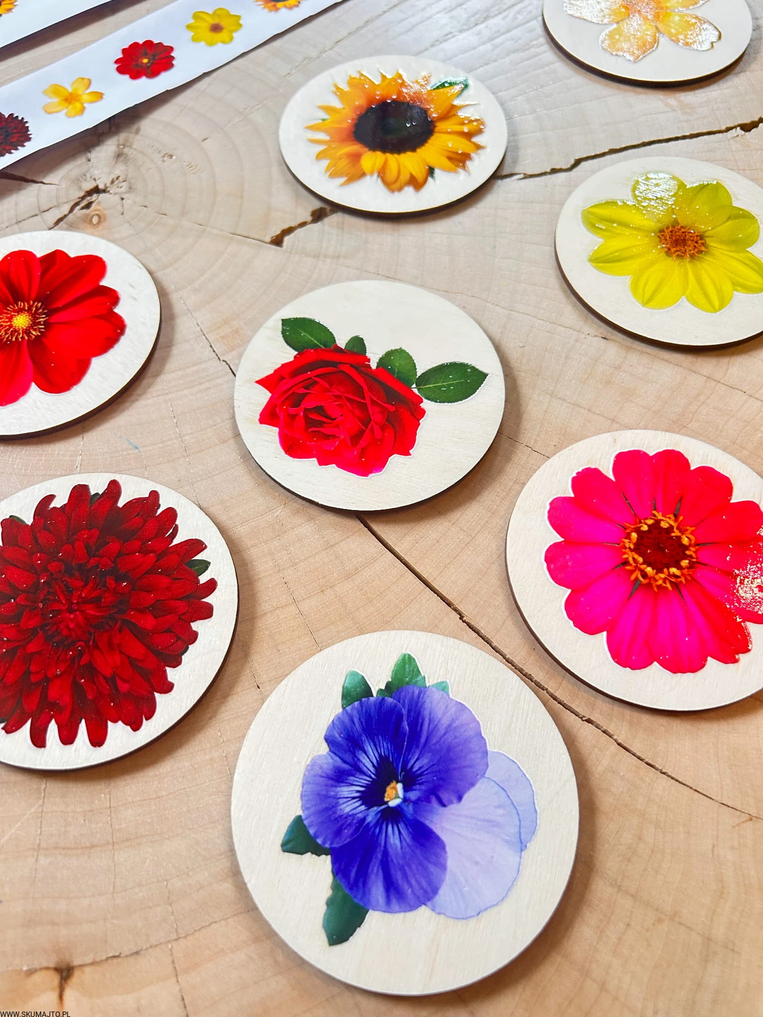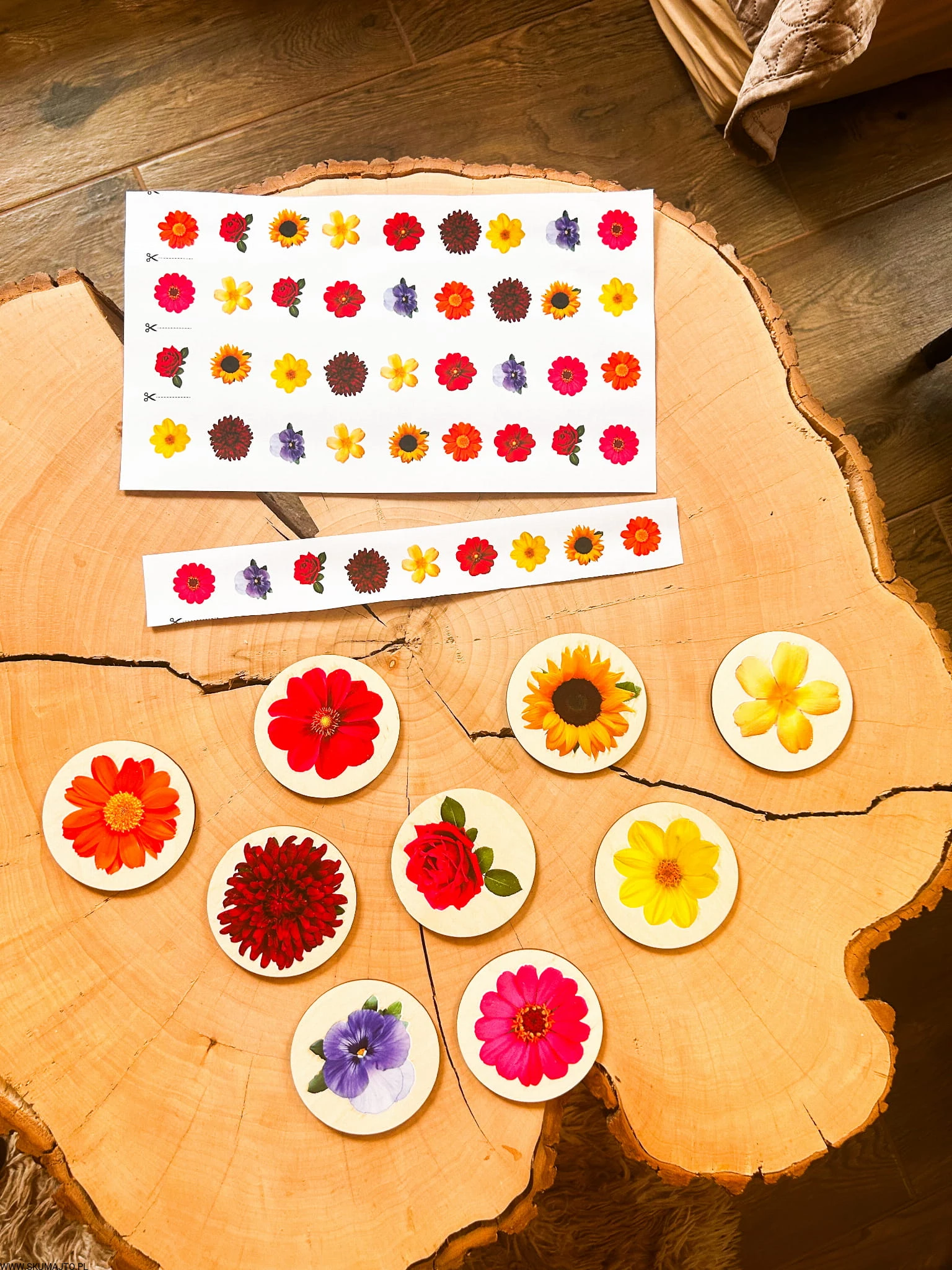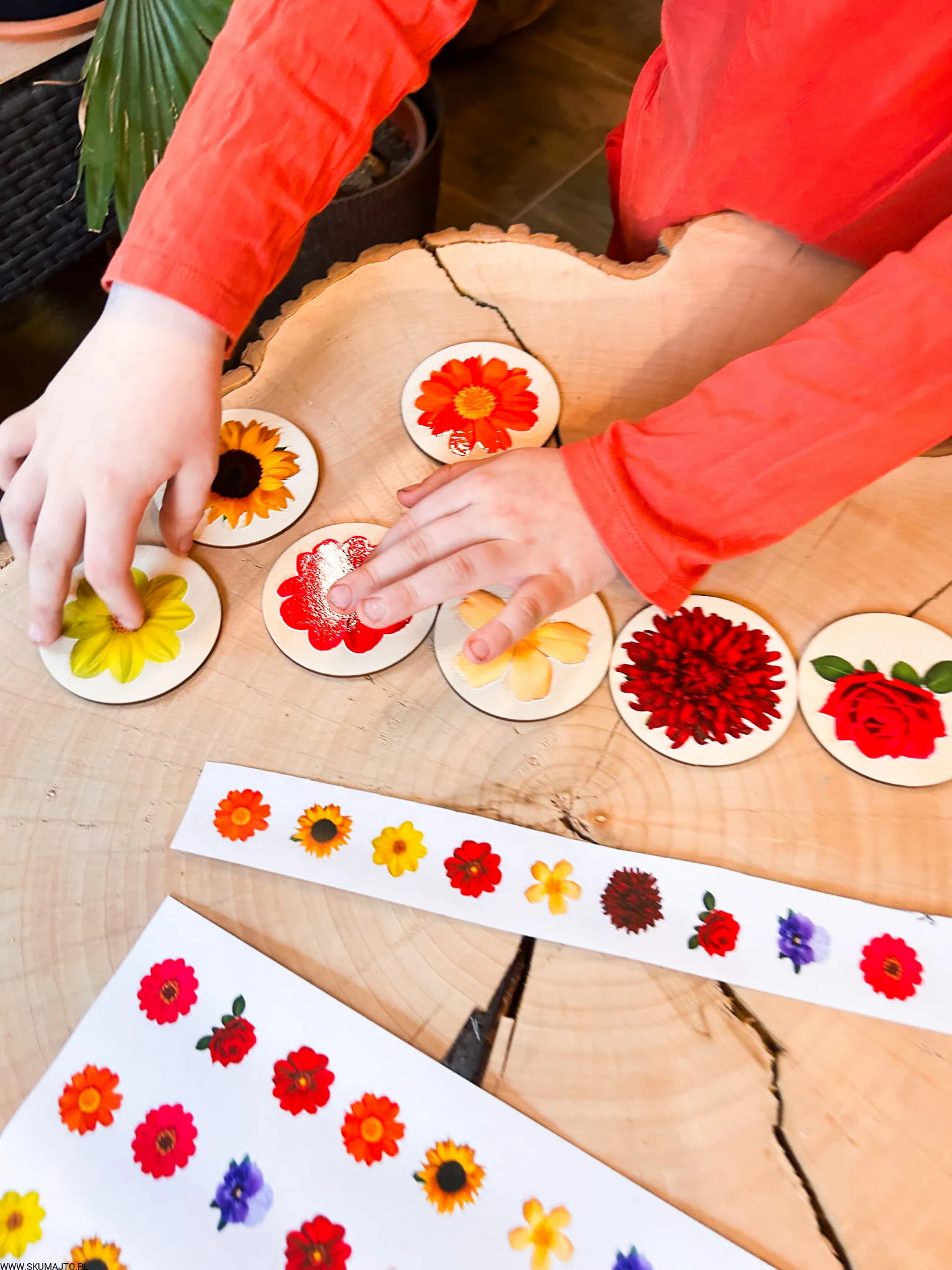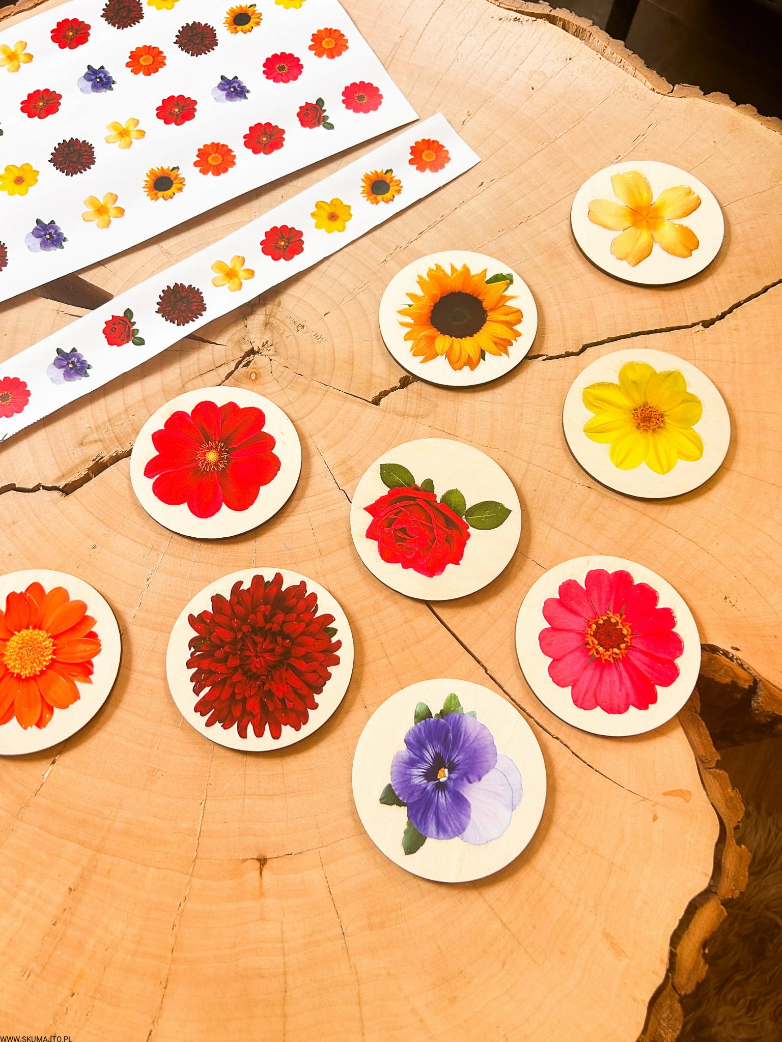 Kwiatki do odwzorowywania, drewniana układanka