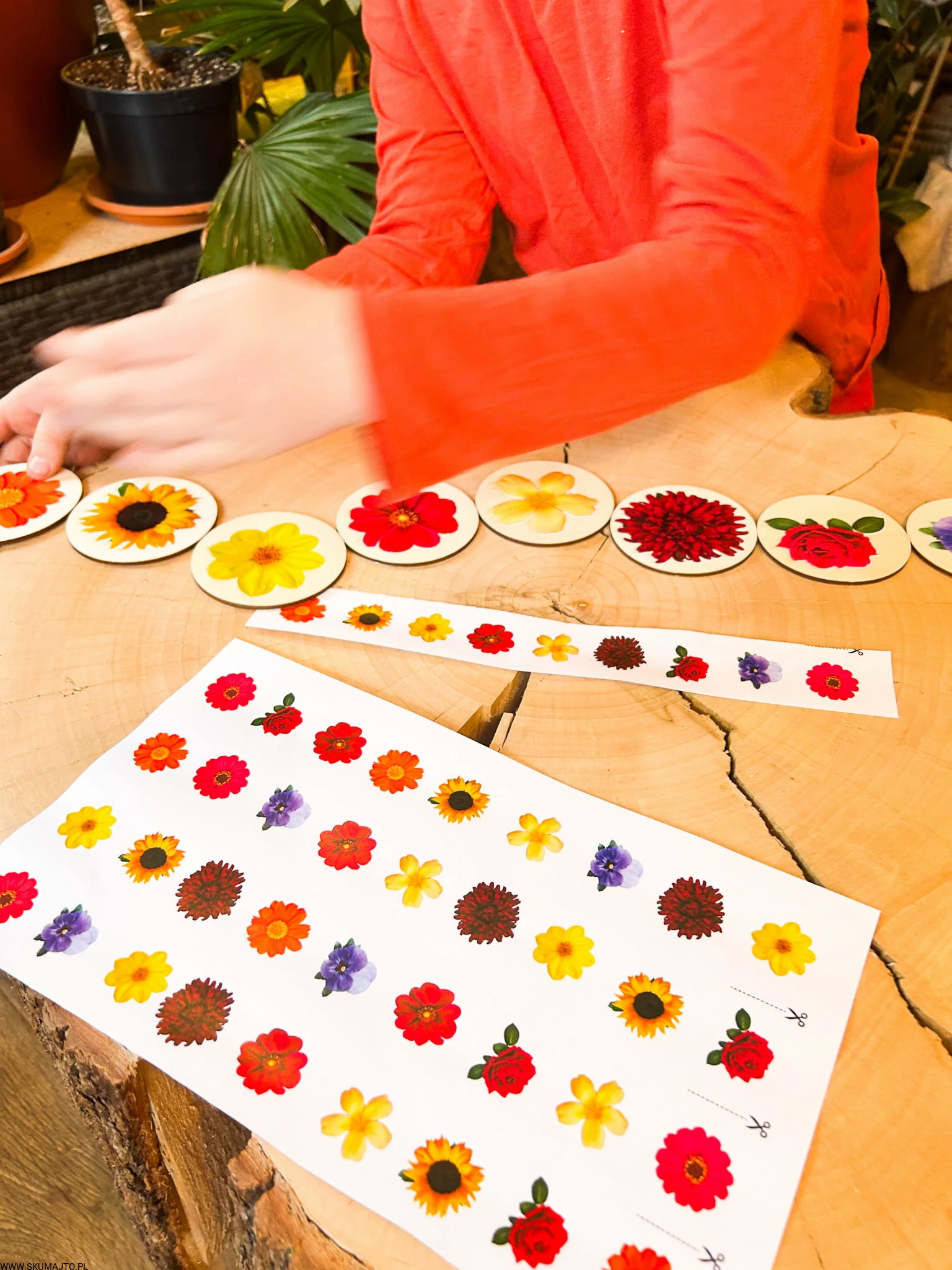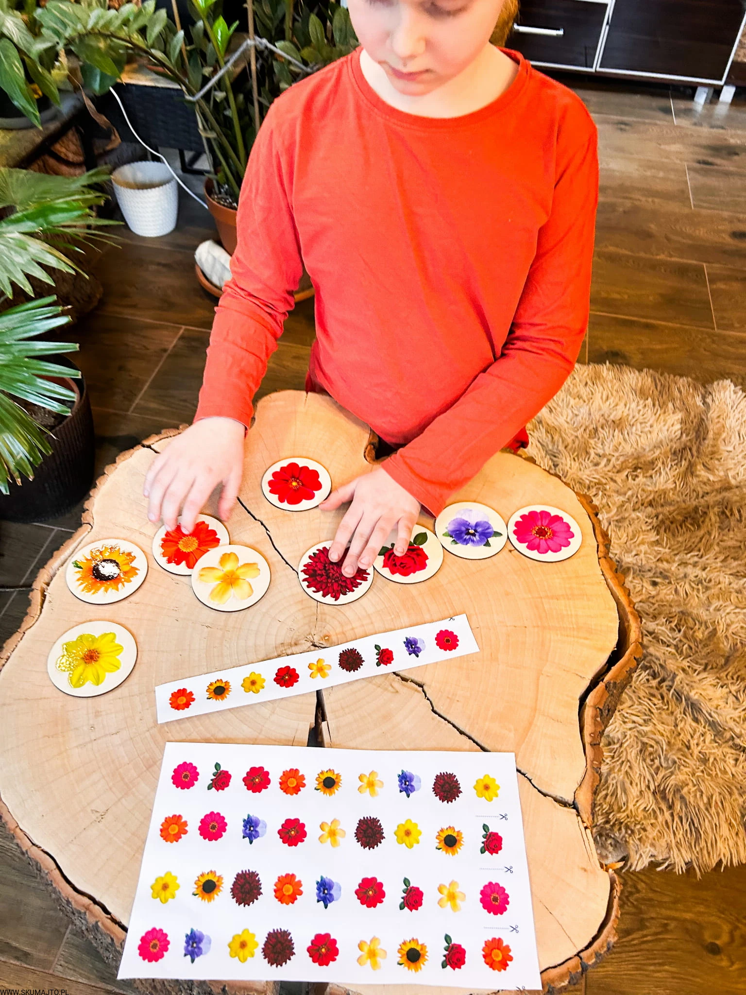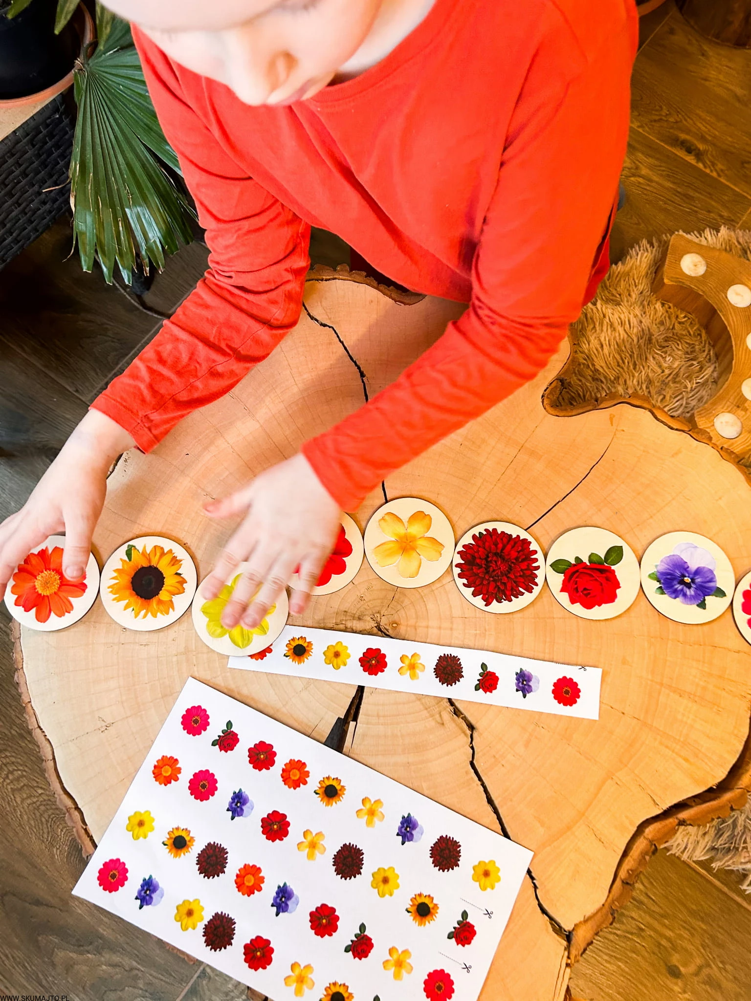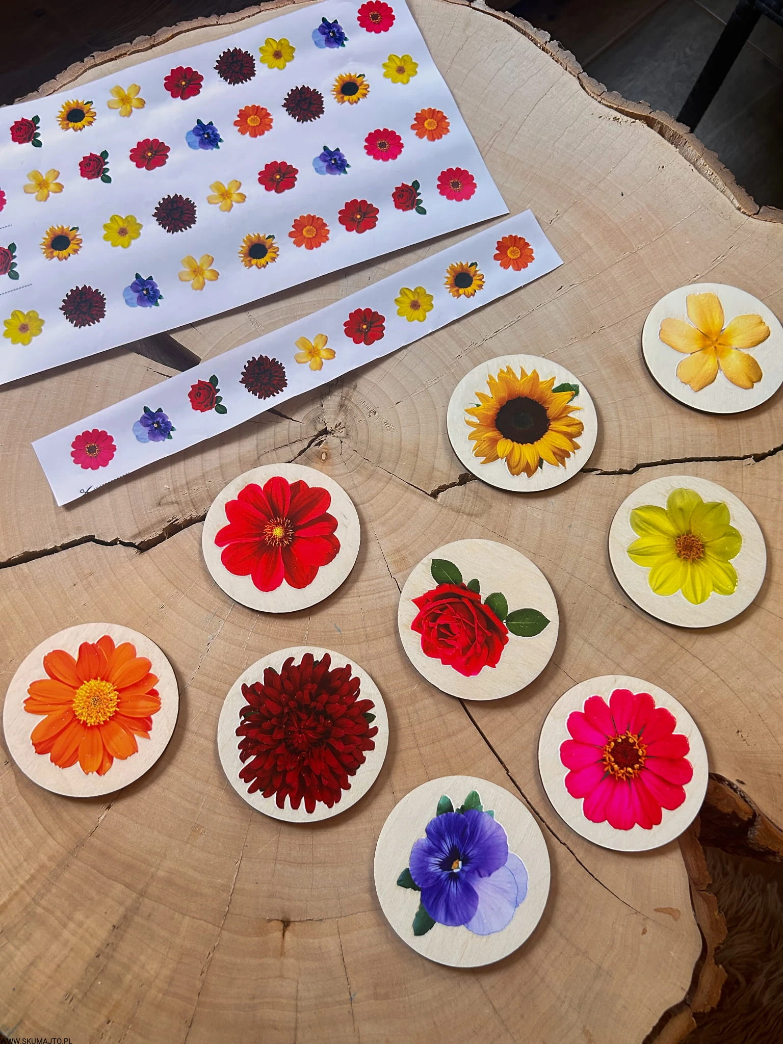 Kwiatki do odwzorowywania, drewniana układanka