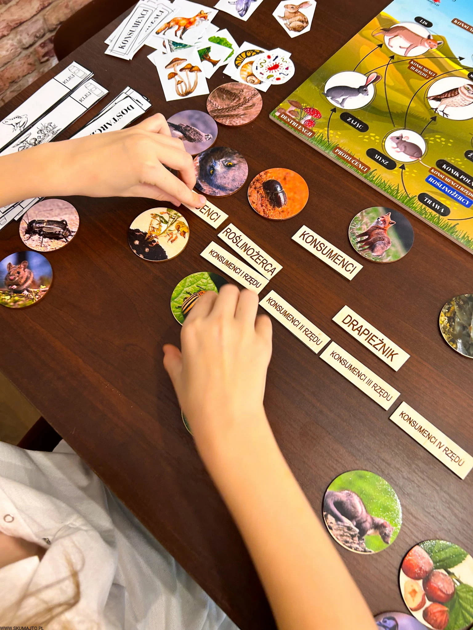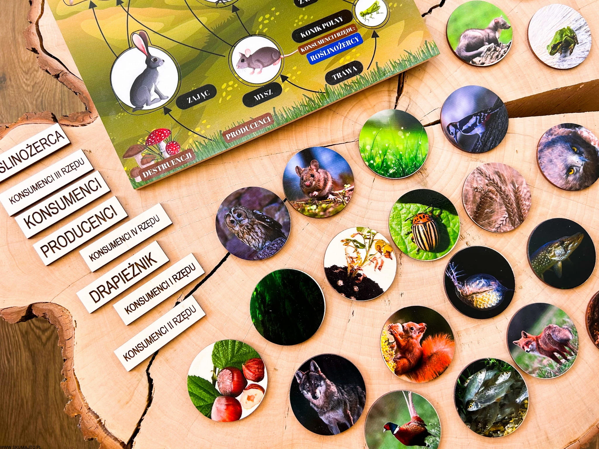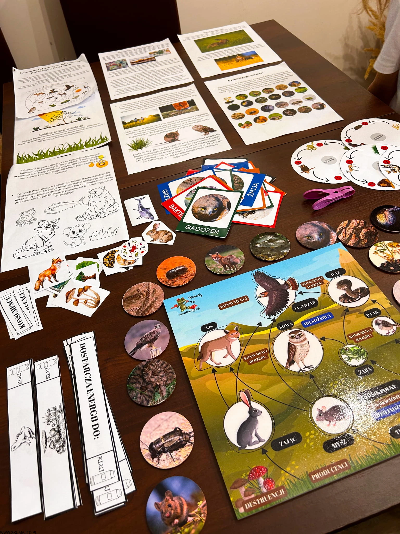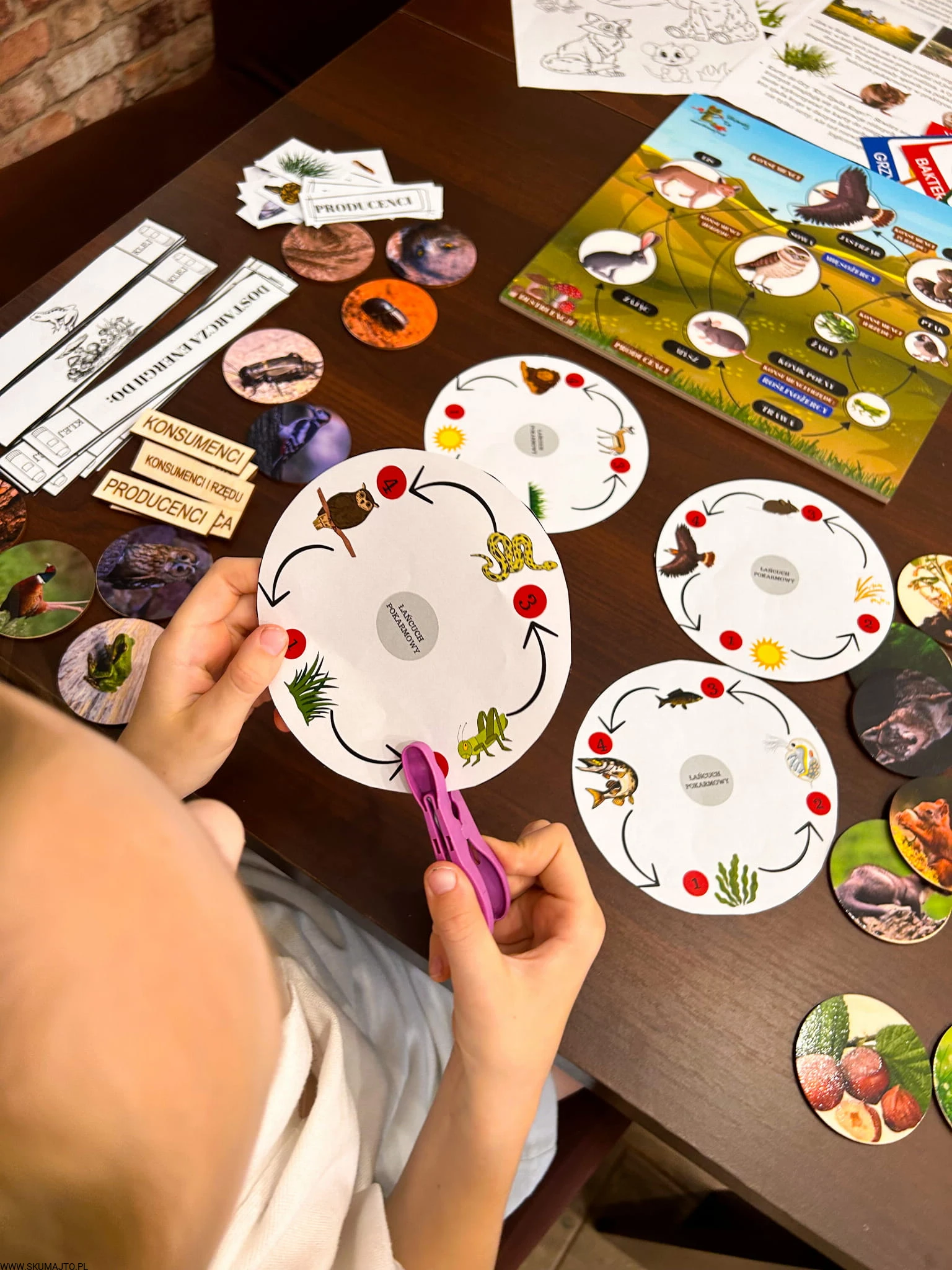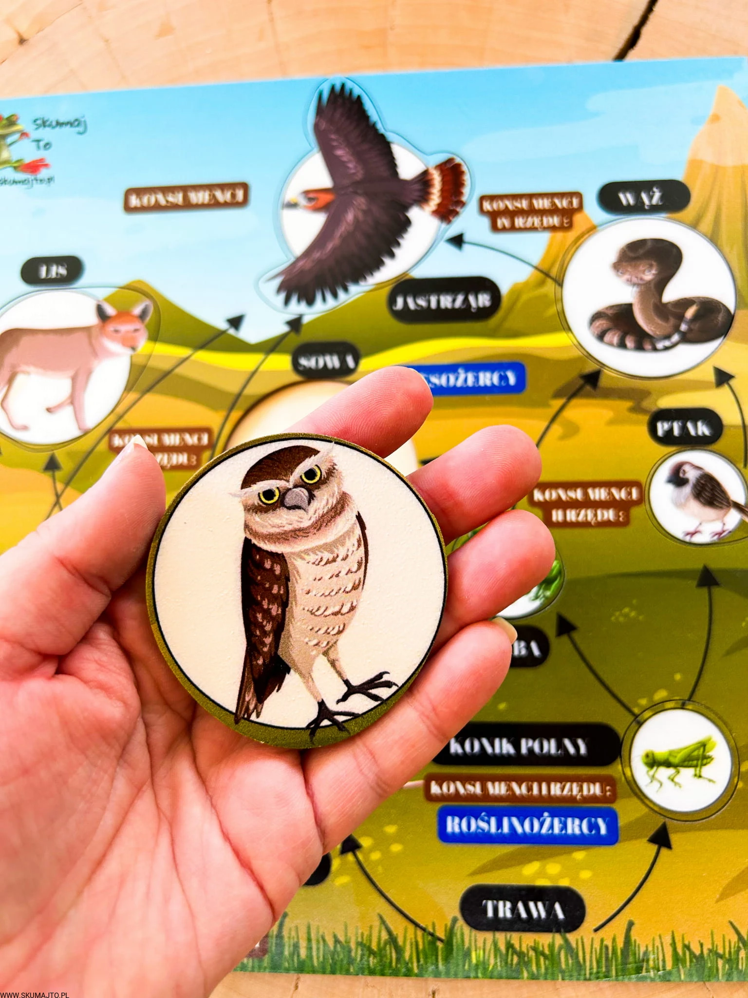 Warto zaznaczyć, że nasza Układanka "Łańcuchy Pokarmowe" oferuje znacznie więcej niż tylko zabawę - w zestawie znajdziesz także karty w wersji PDF, które umożliwiają dalszą eksplorację tematu. Znajdziesz tam informacje na temat przepływu energii w przyrodzie, własny zestaw łańcuchów pokarmowych do skompletowania, karty do gry oraz zadania do wykonania zarówno w domu, jak i podczas wycieczek na świeżym powietrzu.