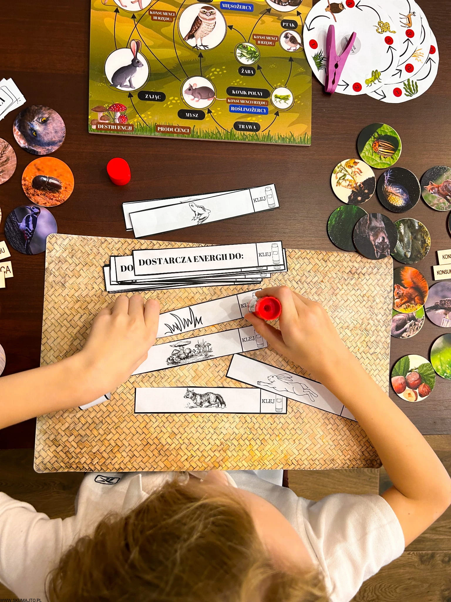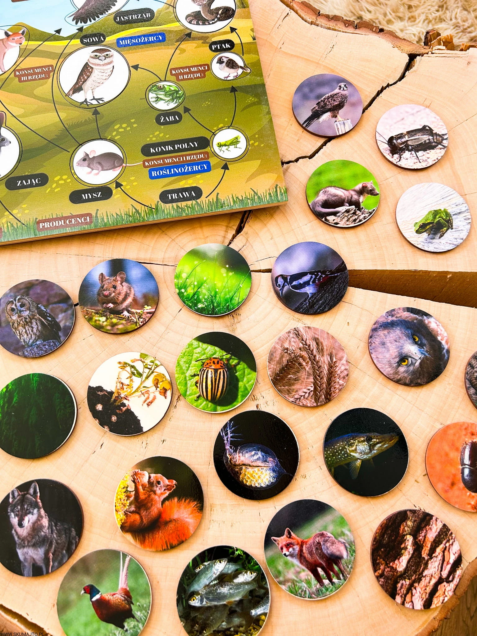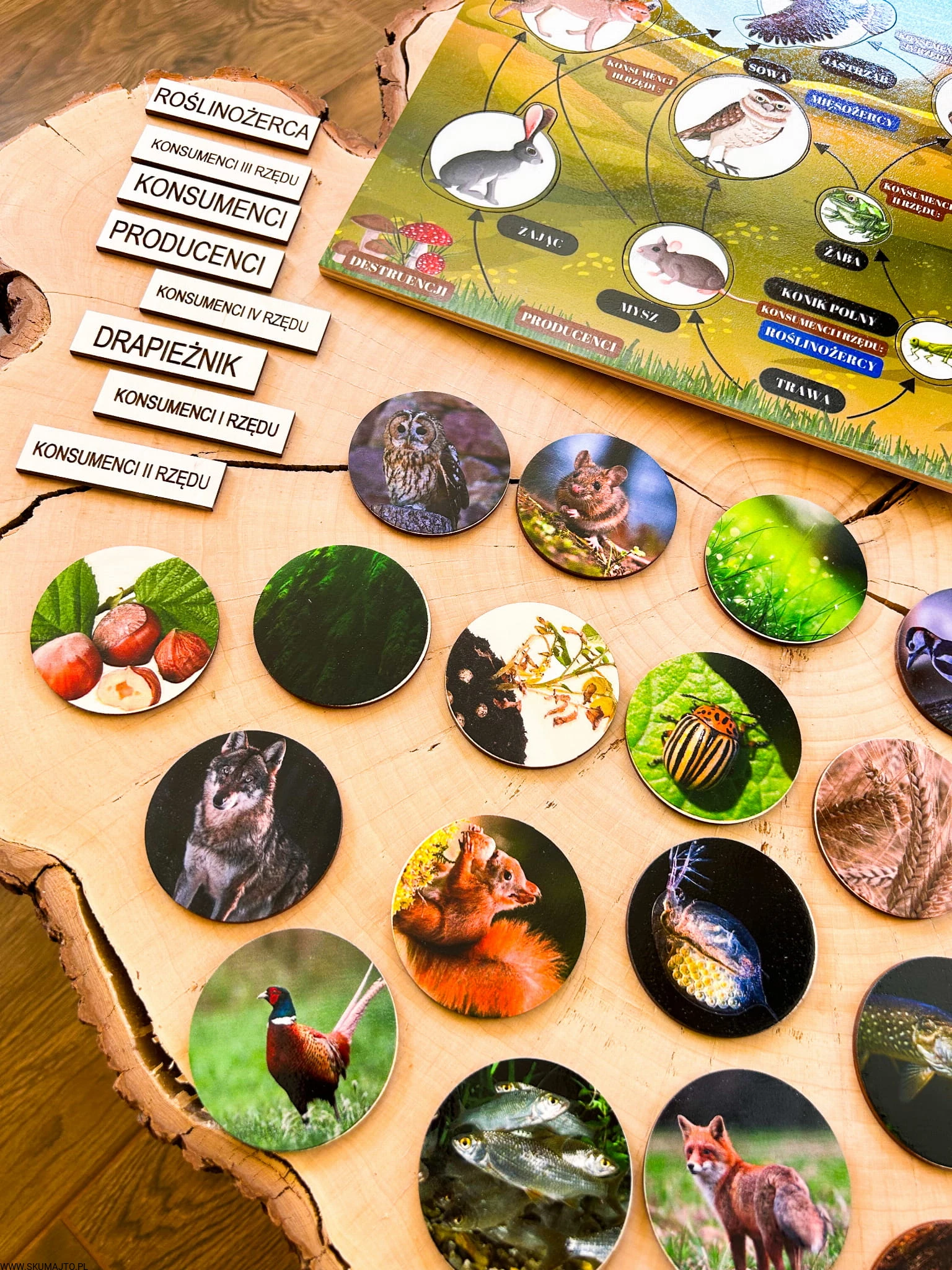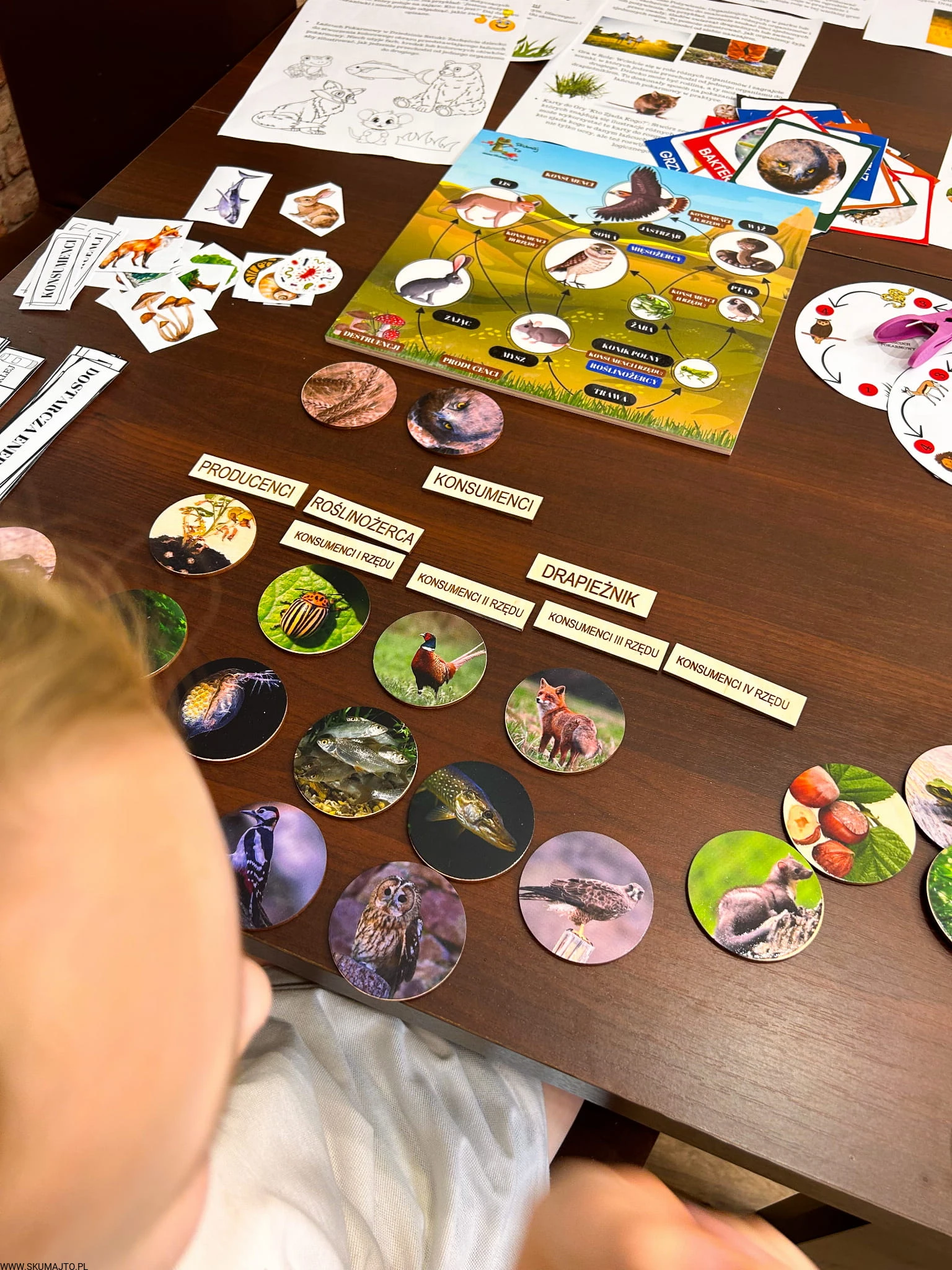 Warto zaznaczyć, że nasza Układanka "Łańcuchy Pokarmowe" oferuje znacznie więcej niż tylko zabawę - w zestawie znajdziesz także karty w wersji PDF, które umożliwiają dalszą eksplorację tematu. Znajdziesz tam informacje na temat przepływu energii w przyrodzie, własny zestaw łańcuchów pokarmowych do skompletowania, karty do gry oraz zadania do wykonania zarówno w domu, jak i podczas wycieczek na świeżym powietrzu.