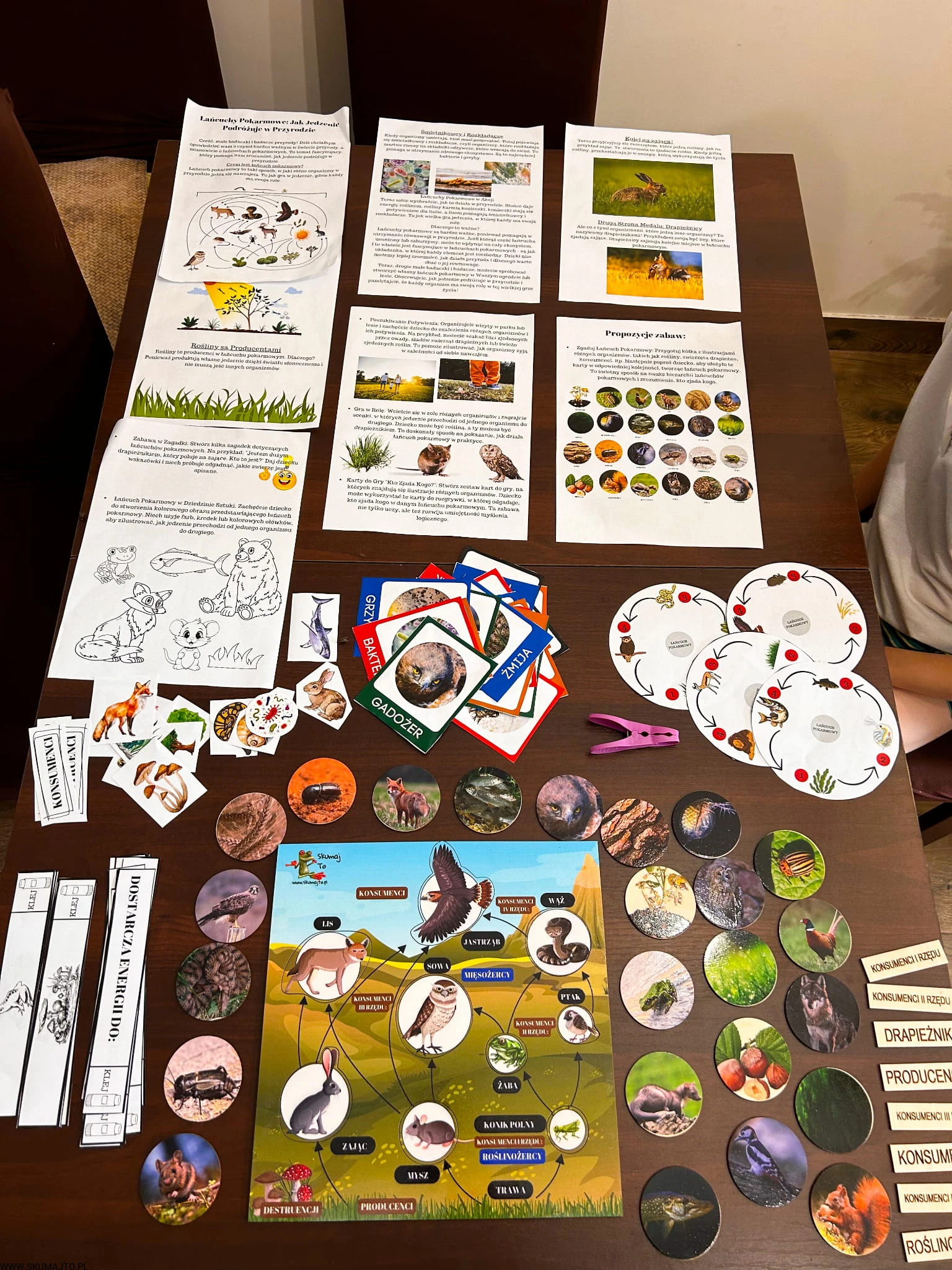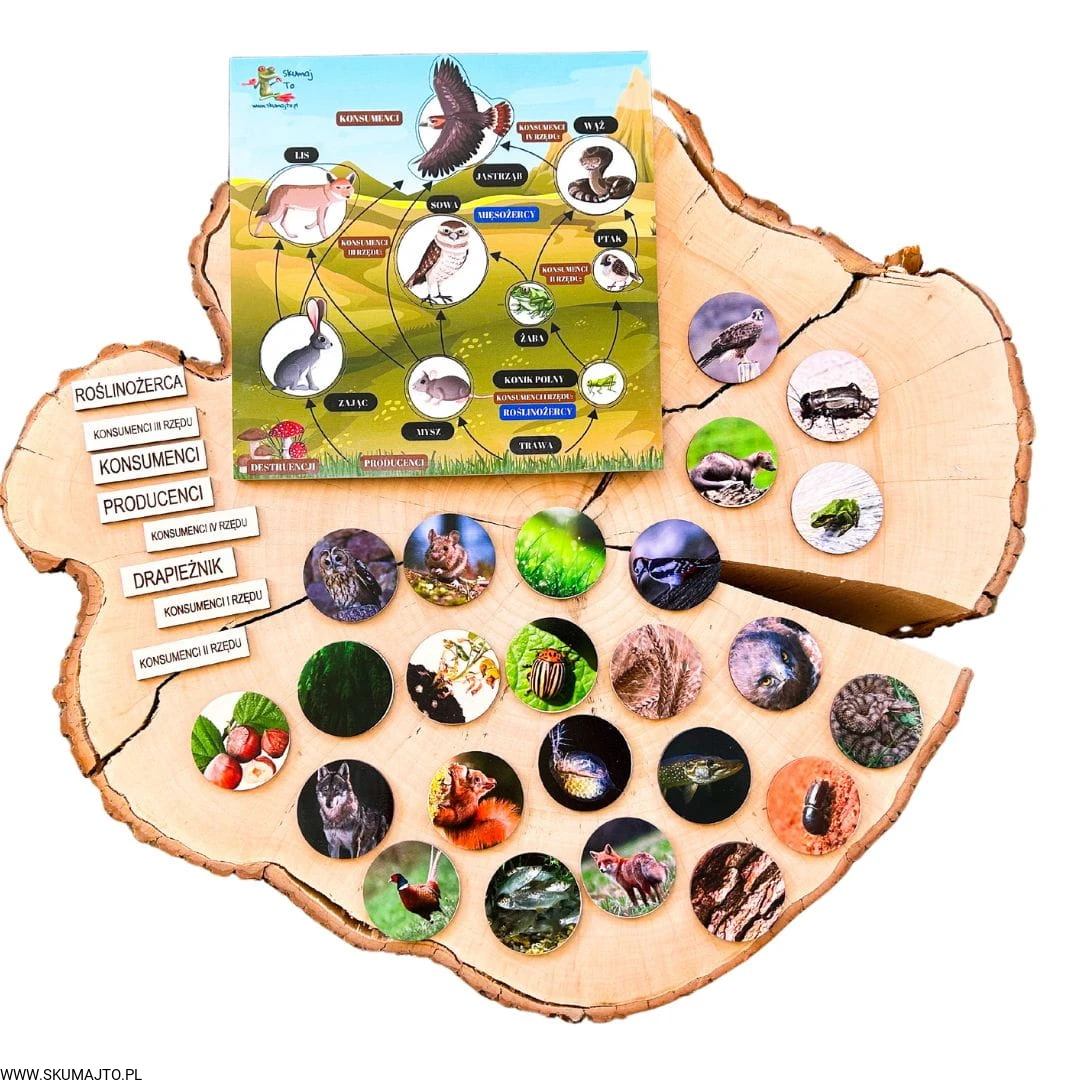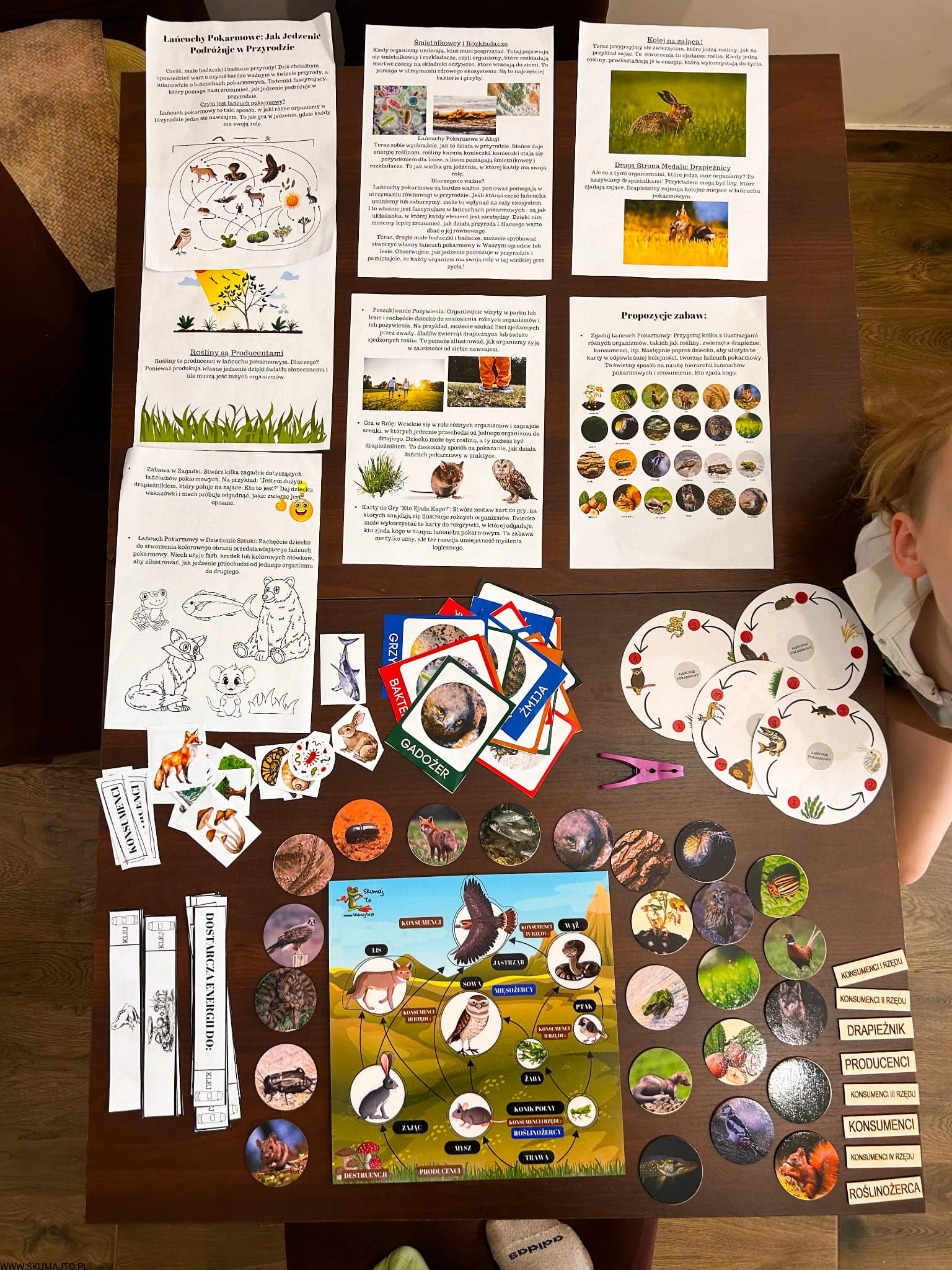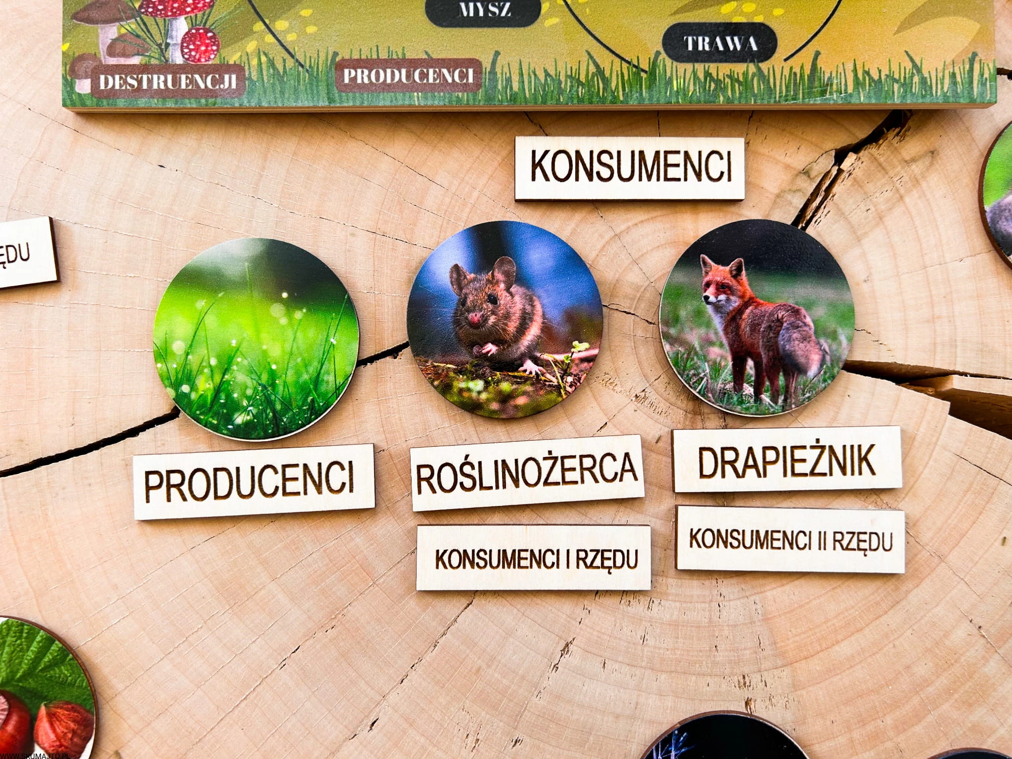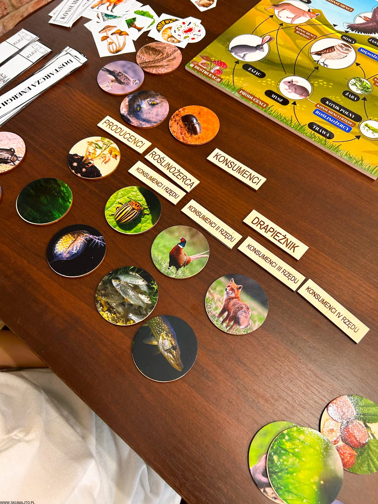 Warto zaznaczyć, że nasza Układanka "Łańcuchy Pokarmowe" oferuje znacznie więcej niż tylko zabawę - w zestawie znajdziesz także karty w wersji PDF, które umożliwiają dalszą eksplorację tematu. Znajdziesz tam informacje na temat przepływu energii w przyrodzie, własny zestaw łańcuchów pokarmowych do skompletowania, karty do gry oraz zadania do wykonania zarówno w domu, jak i podczas wycieczek na świeżym powietrzu.