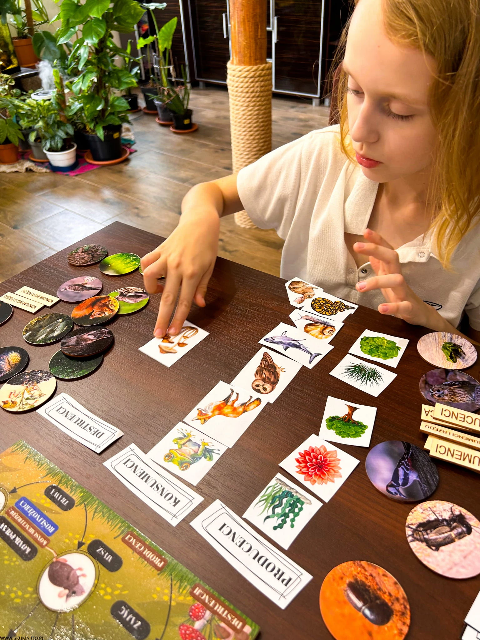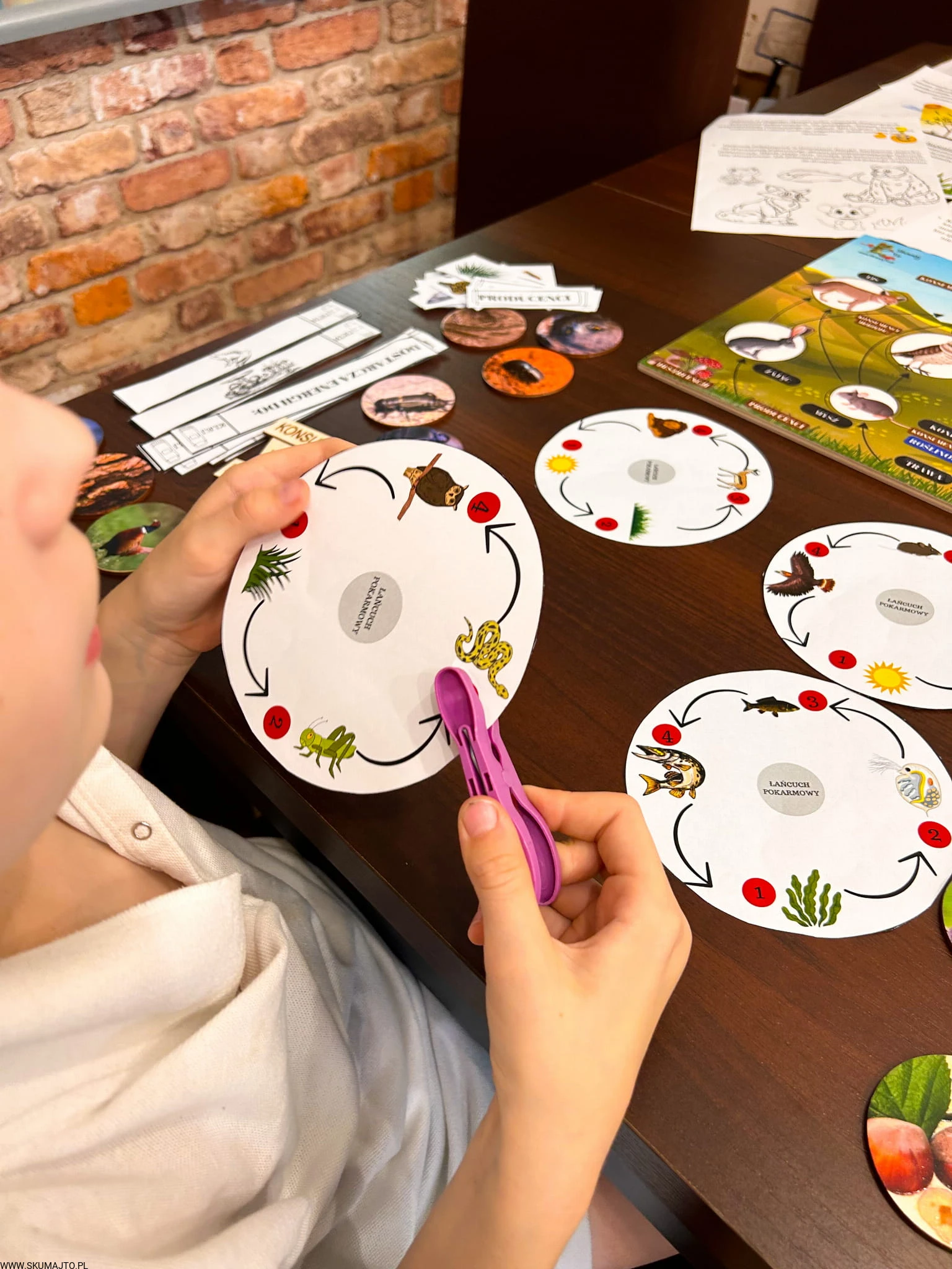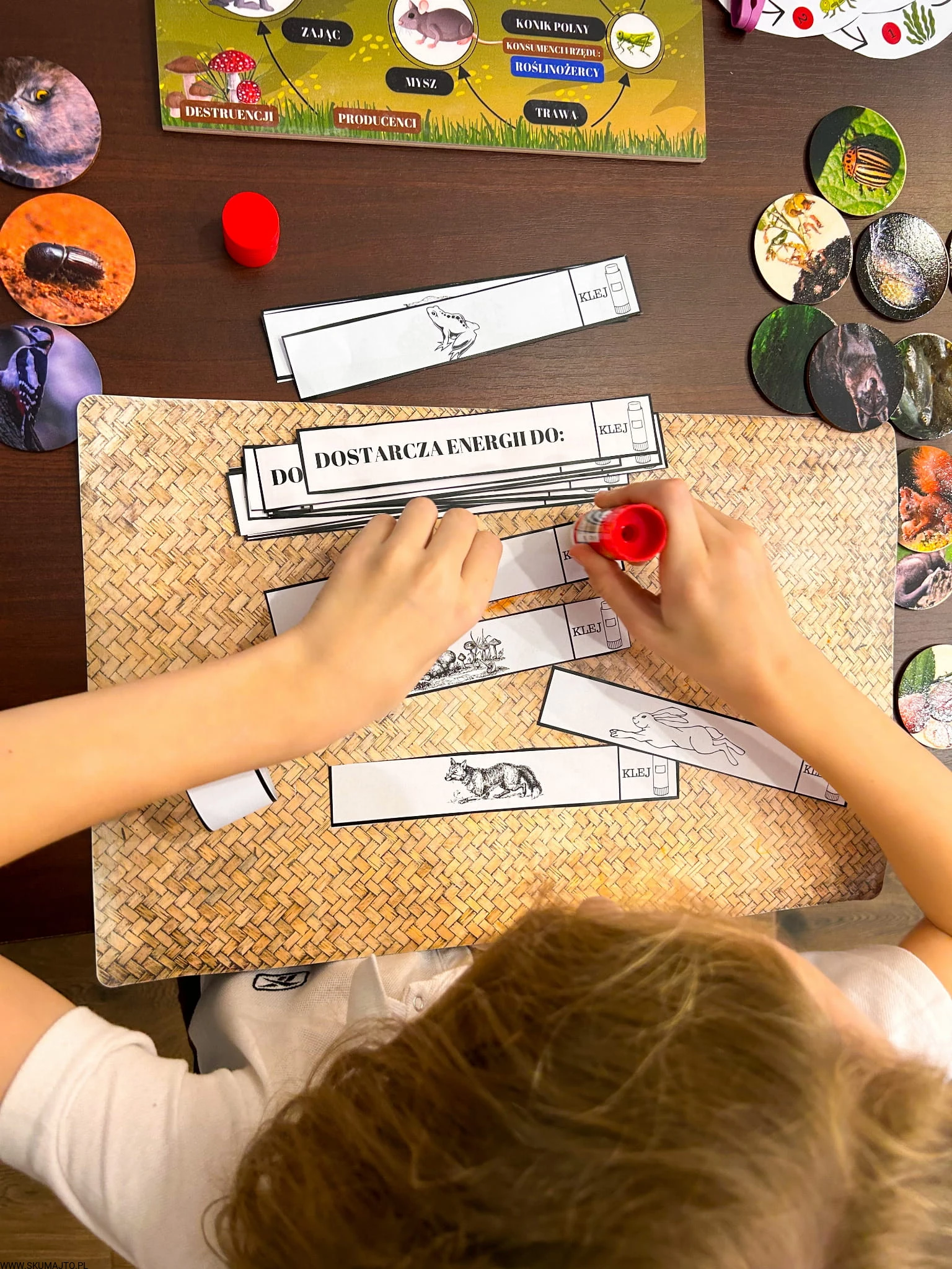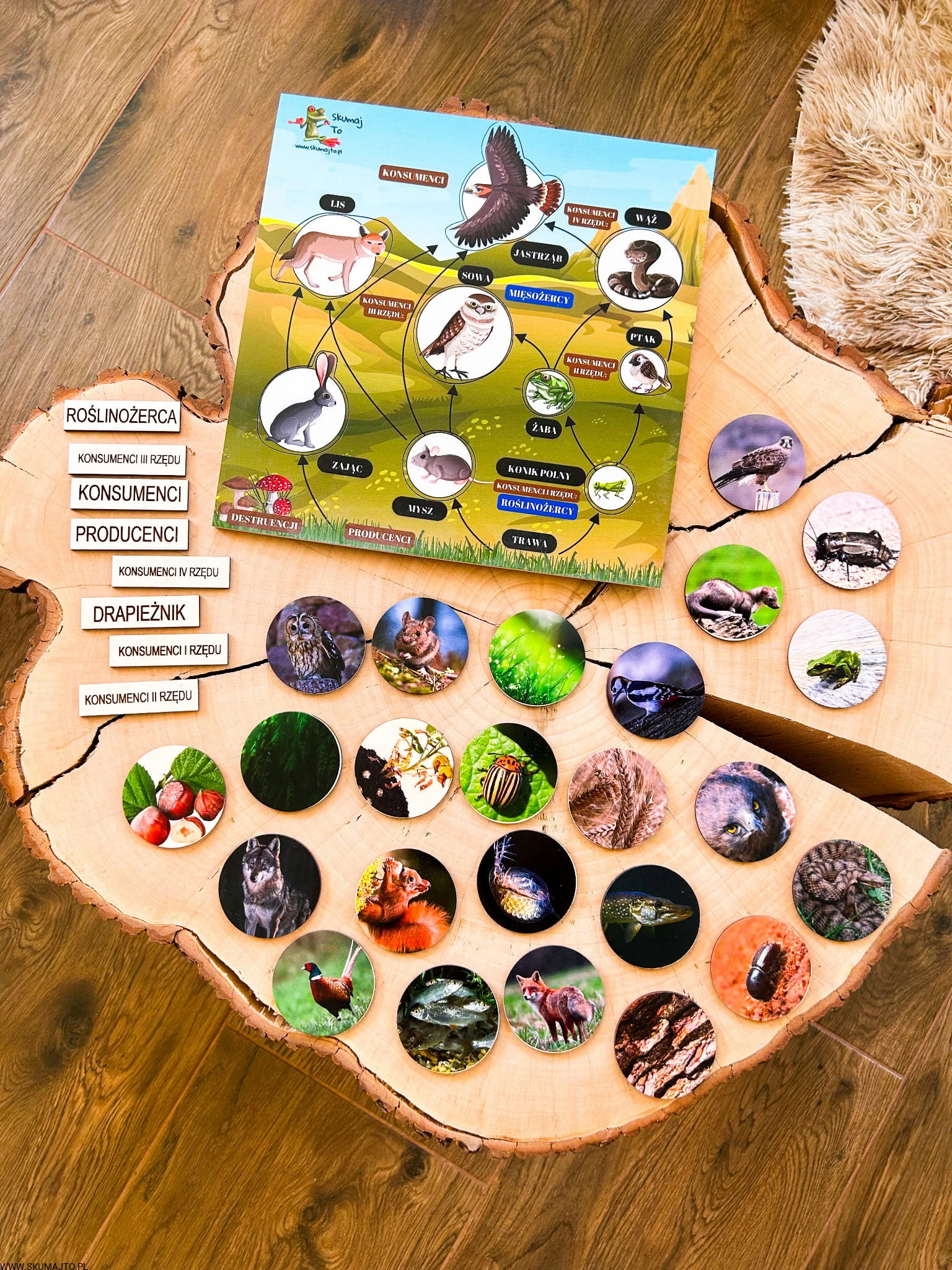 Warto zaznaczyć, że nasza Układanka "Łańcuchy Pokarmowe" oferuje znacznie więcej niż tylko zabawę - w zestawie znajdziesz także karty w wersji PDF, które umożliwiają dalszą eksplorację tematu. Znajdziesz tam informacje na temat przepływu energii w przyrodzie, własny zestaw łańcuchów pokarmowych do skompletowania, karty do gry oraz zadania do wykonania zarówno w domu, jak i podczas wycieczek na świeżym powietrzu.