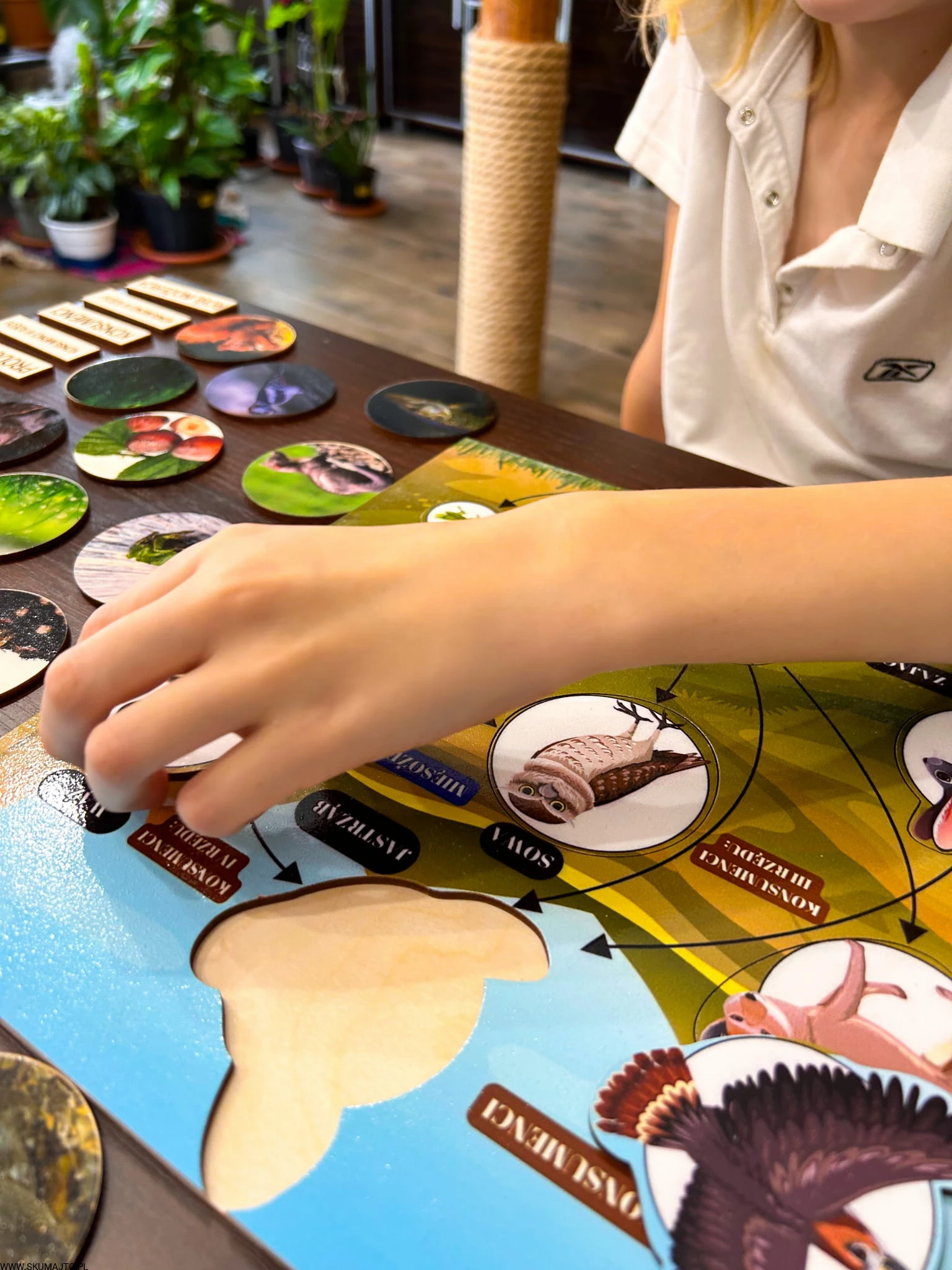 To niezastąpione narzędzie edukacyjne, które nie tylko doskonali małą motorykę, koordynację ręka-oko oraz rozwija lewą półkulę mózgu Twojego dziecka, ale także zachęca do badania i zrozumienia przyrody. Nasza układanka to doskonały prezent dla dzieci, ale również dla rodziców, biologów, leśników i edukatorów. To inwestycja w wiedzę i rozwijanie pasji, która dostarcza nie tylko wiedzy, ale przede wszystkim fascynującej zabawy w otaczającym nas świecie przyrody. Odkrywajcie razem piękno i zależności w przyrodzie dzięki naszej Układance "Łańcuchy Pokarmowe".