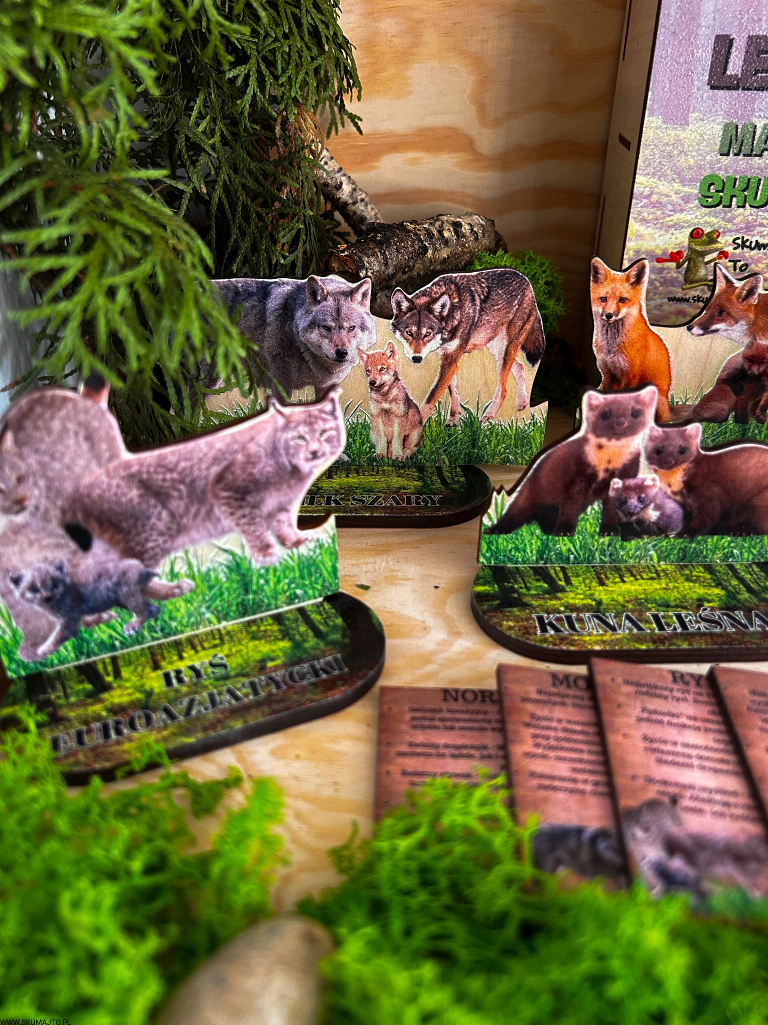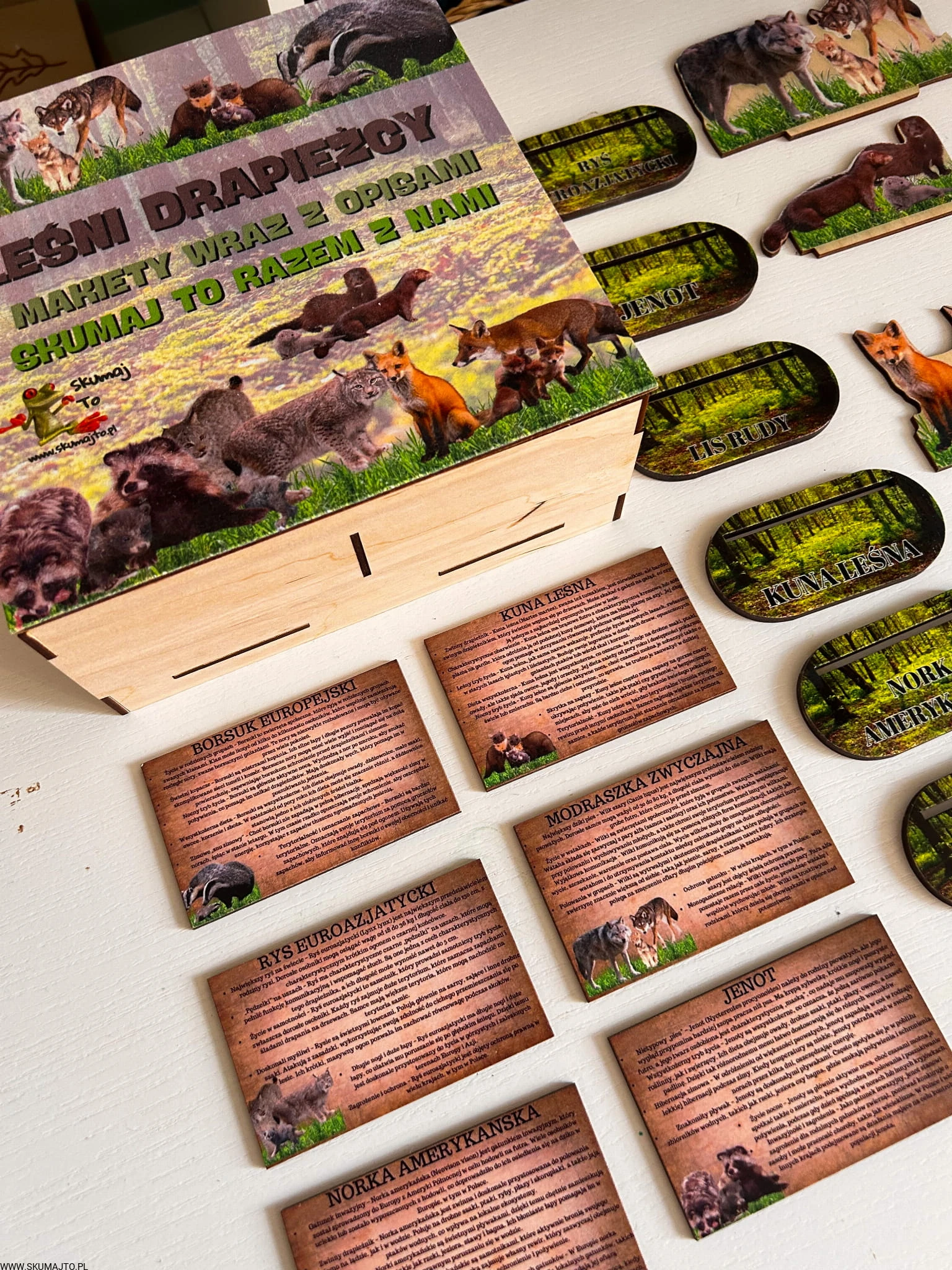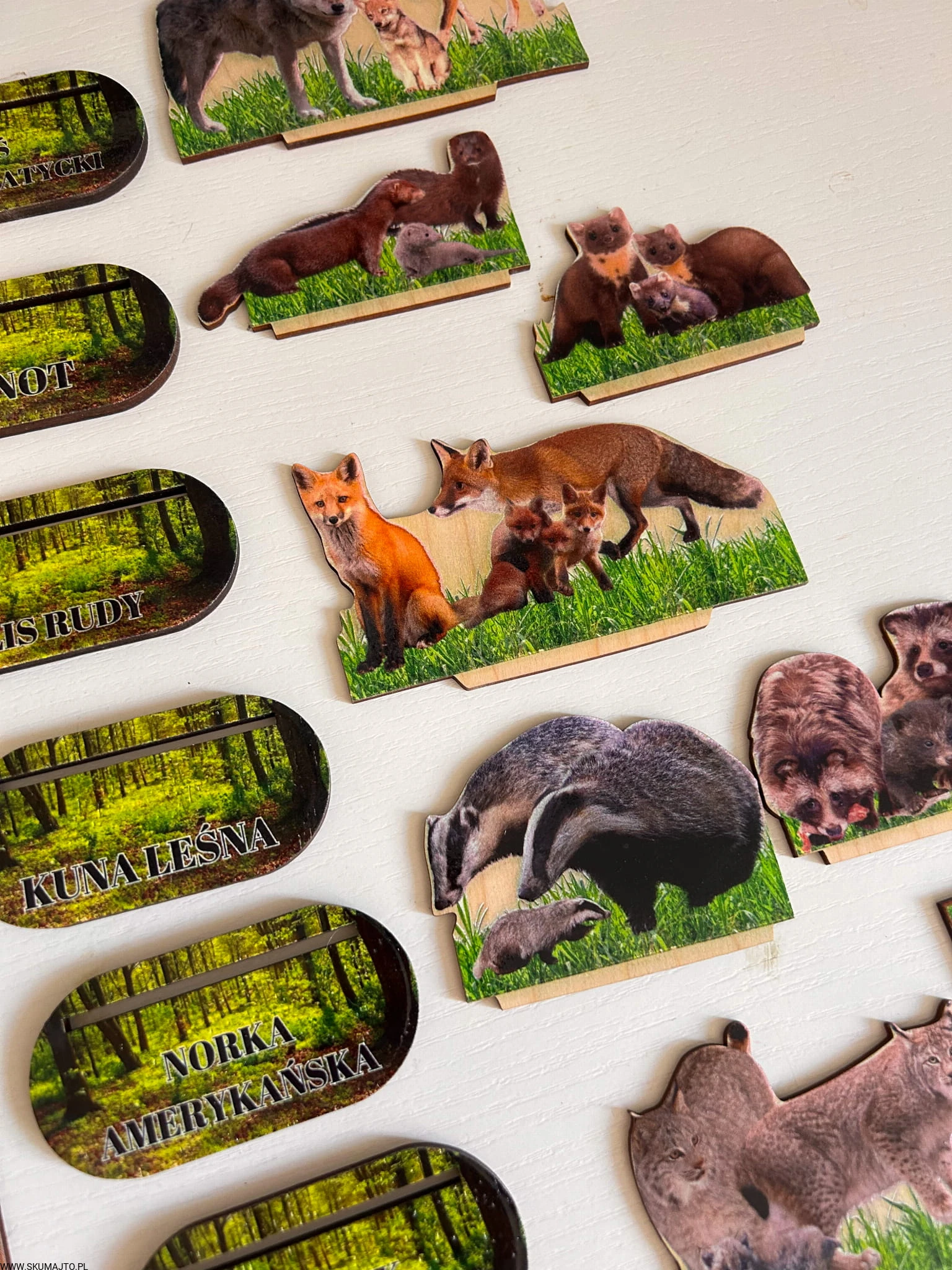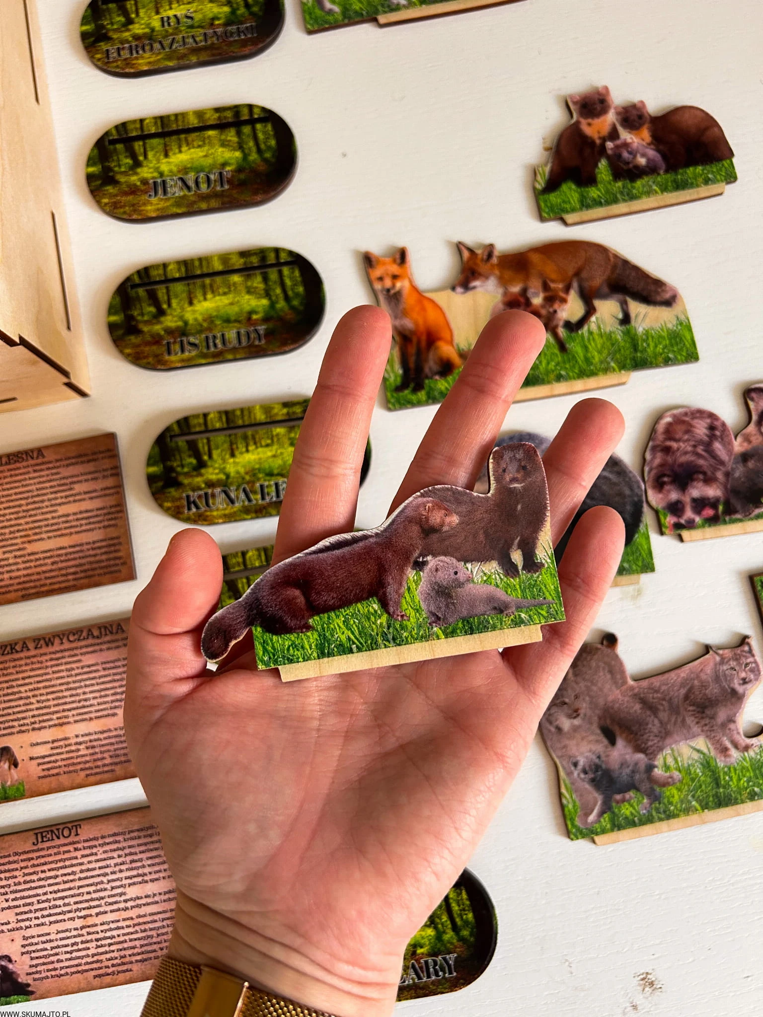 Leśni drapieżcy- drewniana makieta z kartami, Montessori