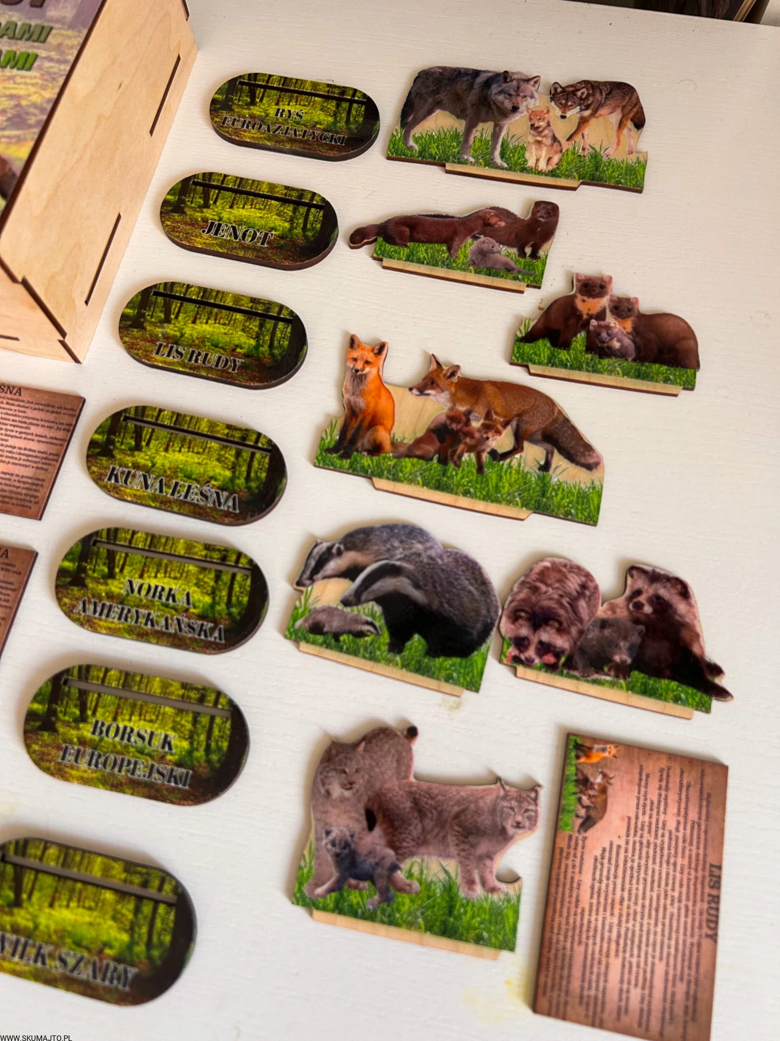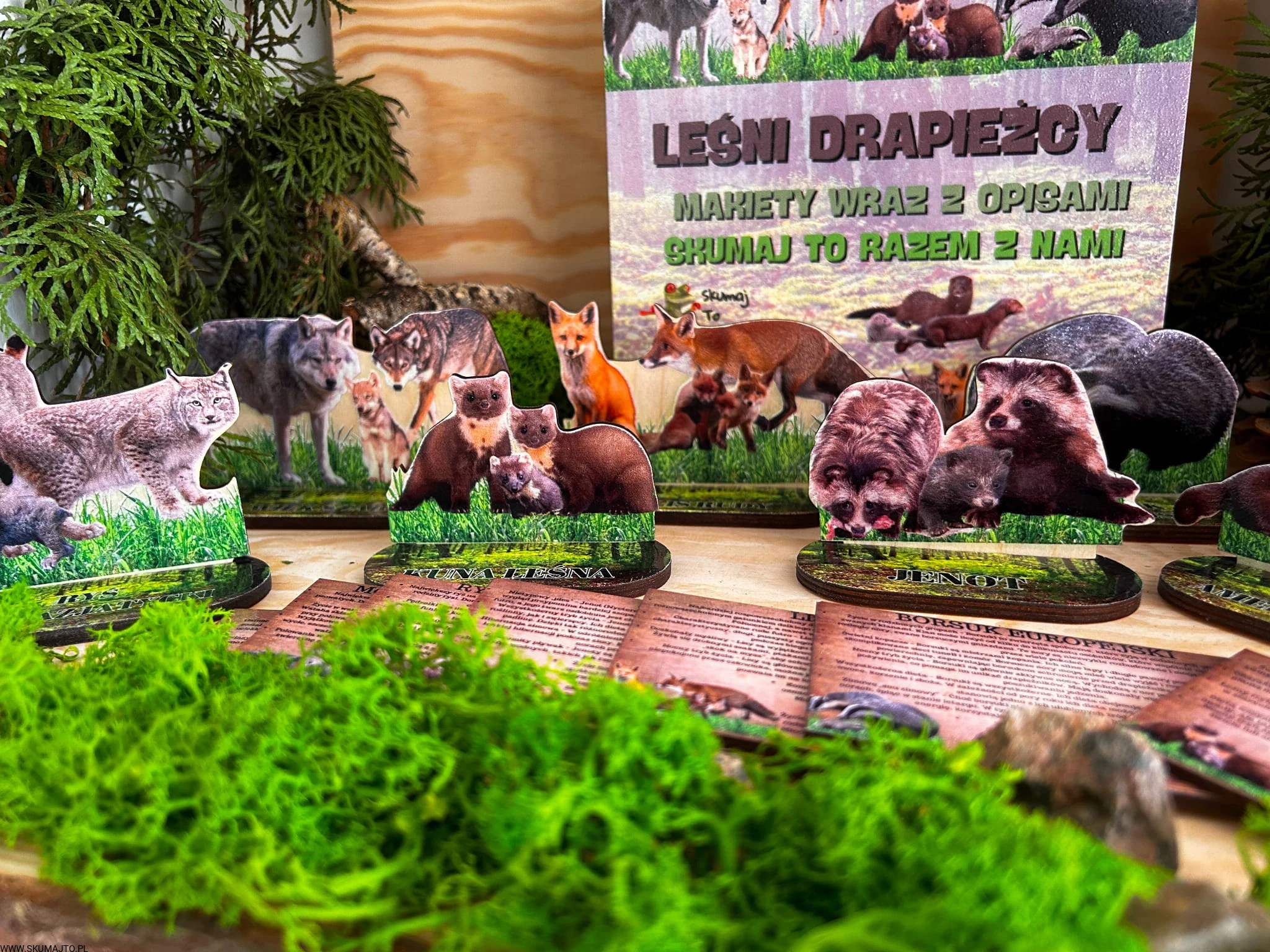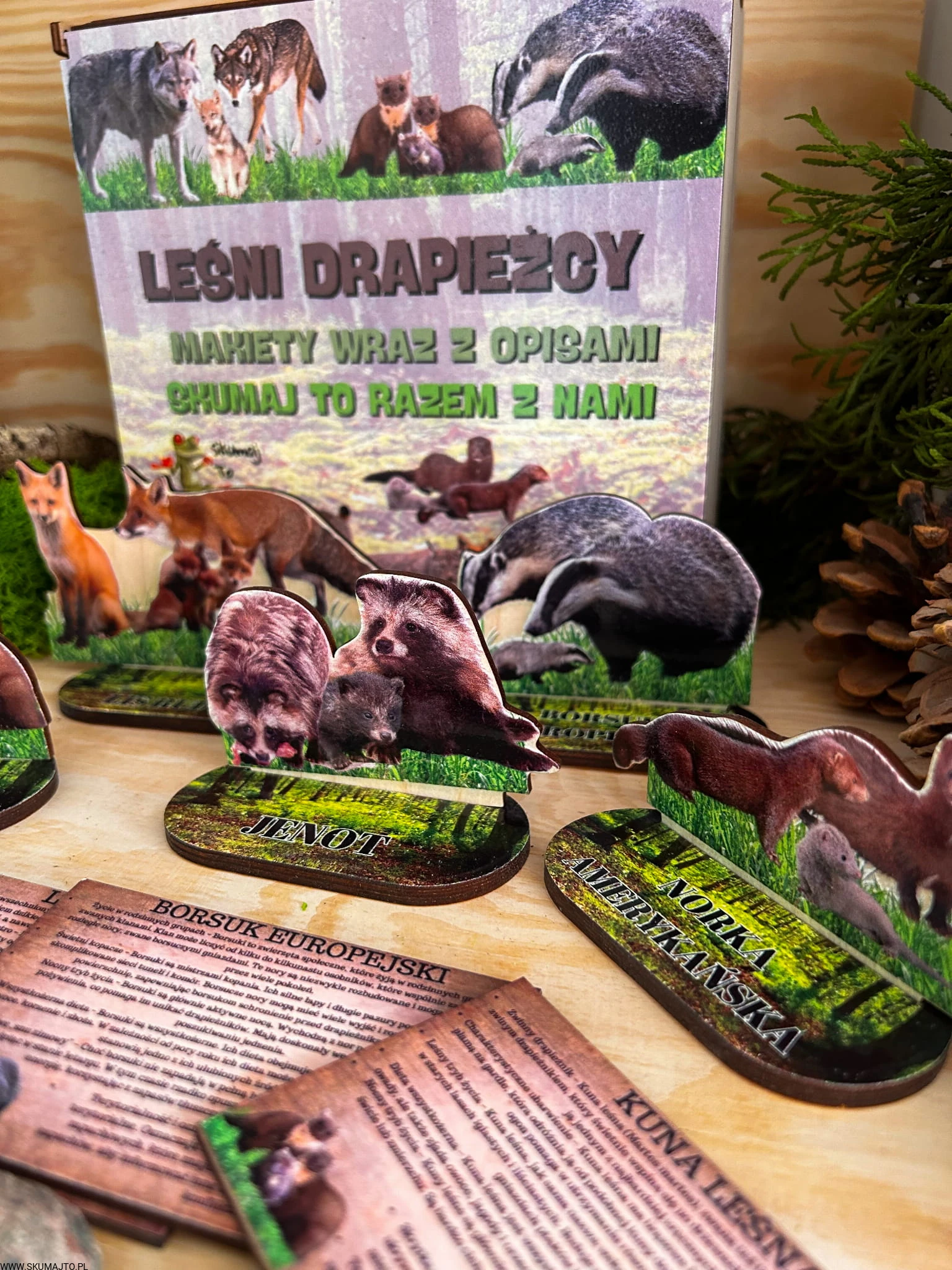 Leśni drapieżcy- drewniana makieta z kartami, Montessori