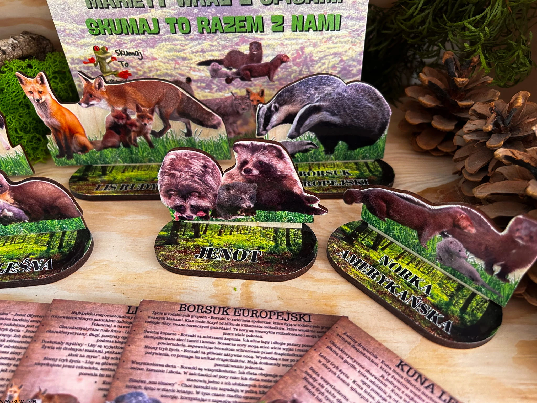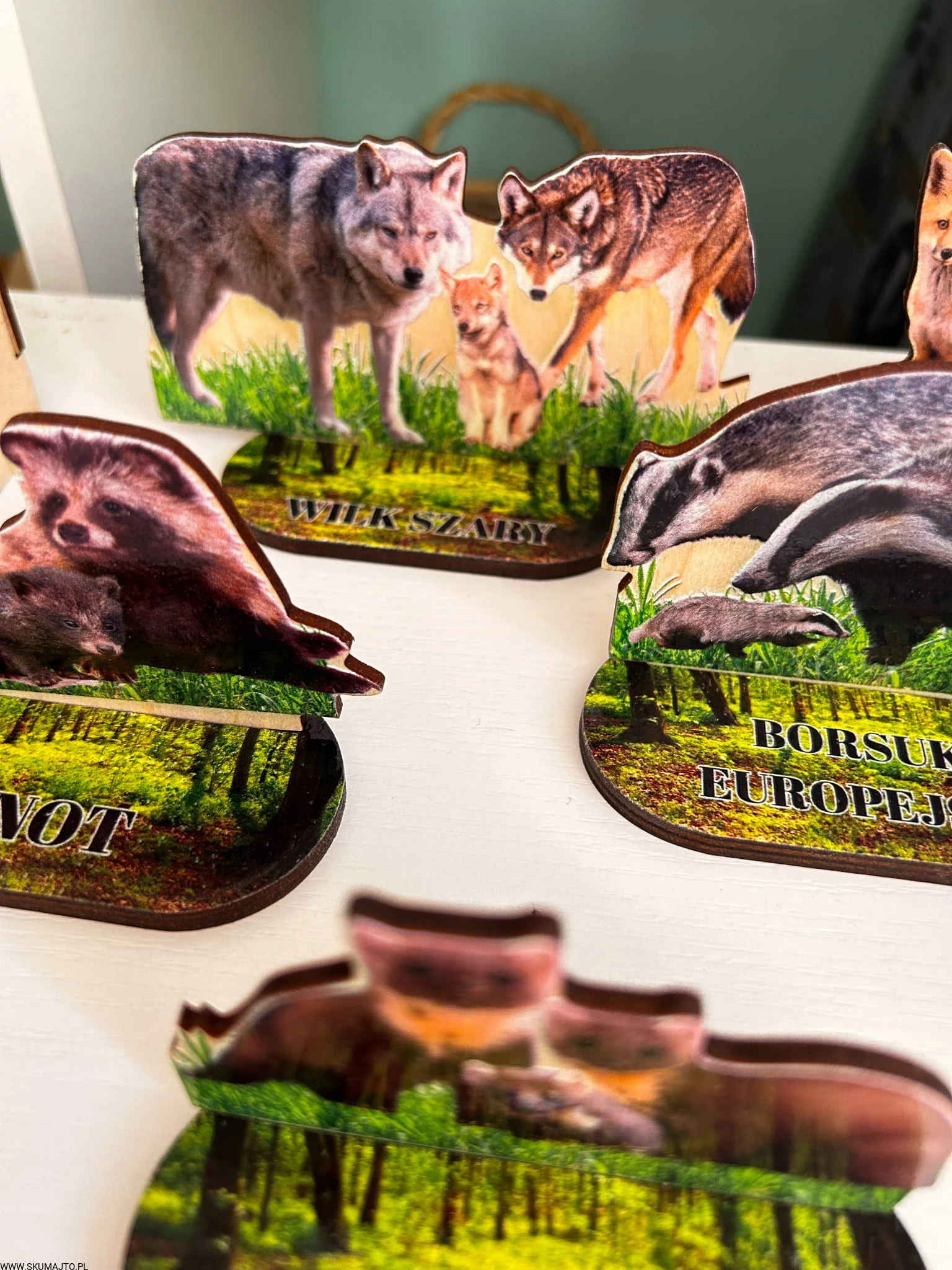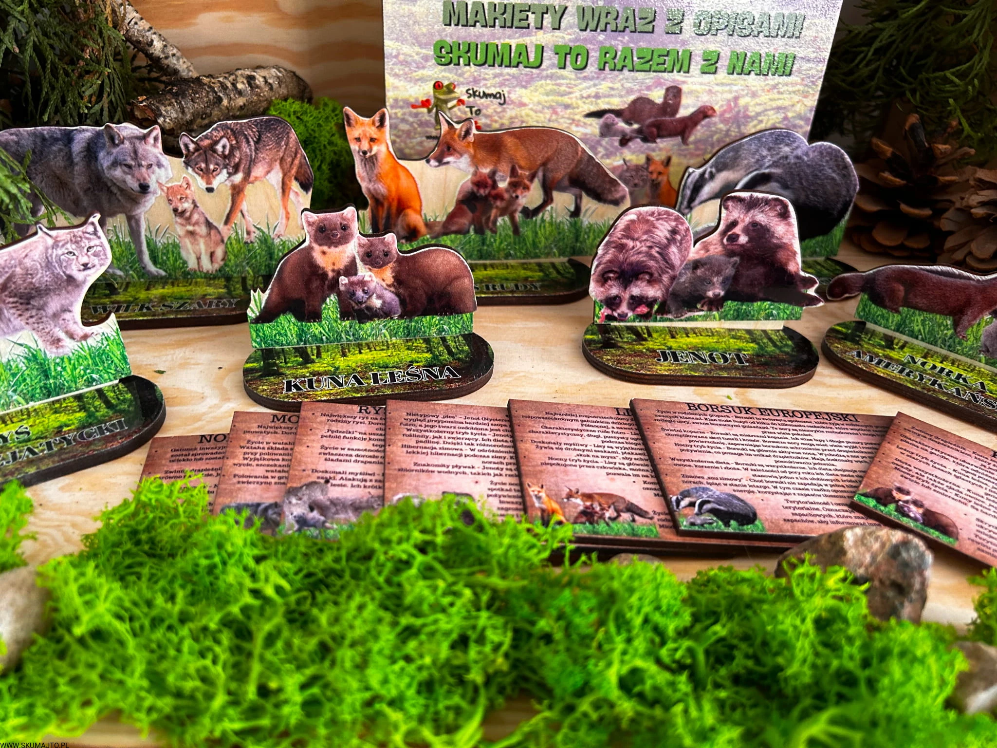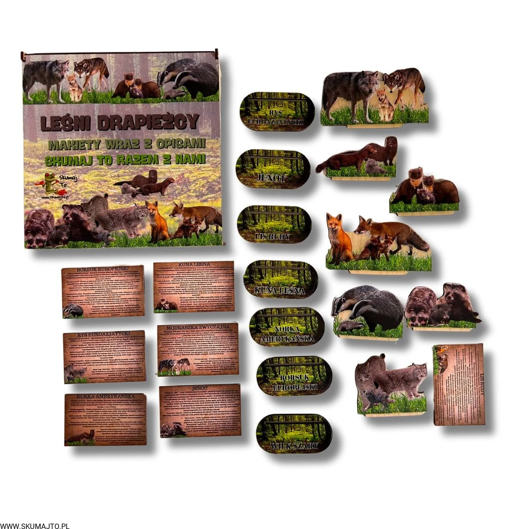 Leśni drapieżcy- drewniana makieta z kartami, Montessori