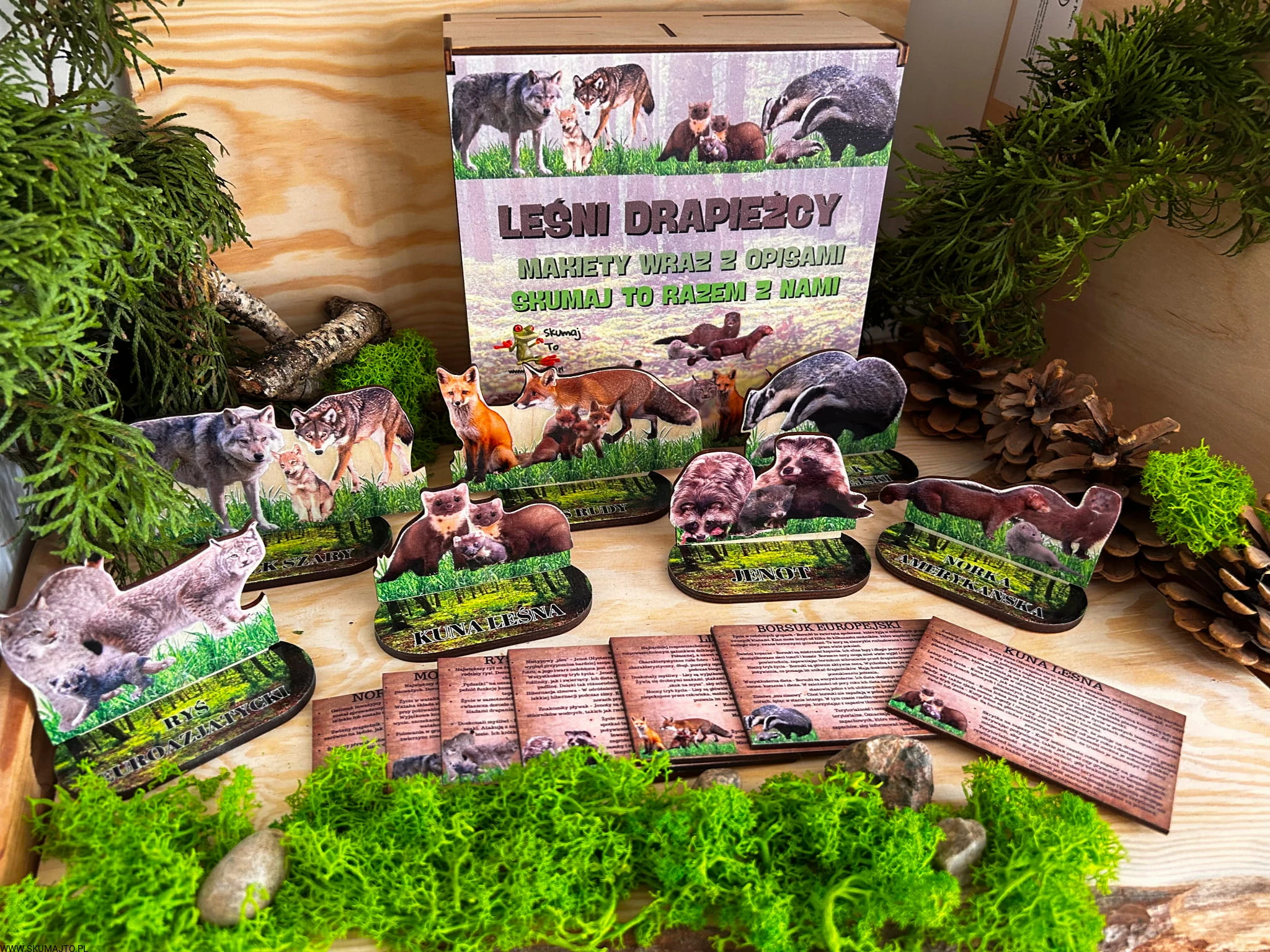 Zestaw „Leśni Drapieżcy” to wyjątkowe narzędzie edukacyjne, które rozwija umiejętności obserwacji, wrażliwość na przyrodę oraz świadomość ekologiczną. Dzięki niemu dziecko nauczy się, jak ważne jest zachowanie równowagi w przyrodzie i jak każdy gatunek pełni swoją rolę w ekosystemie. To nauka przez zabawę, która zostaje na całe życie i wzbogaca wspólne chwile o wartościową wiedzę i fascynujące historie.