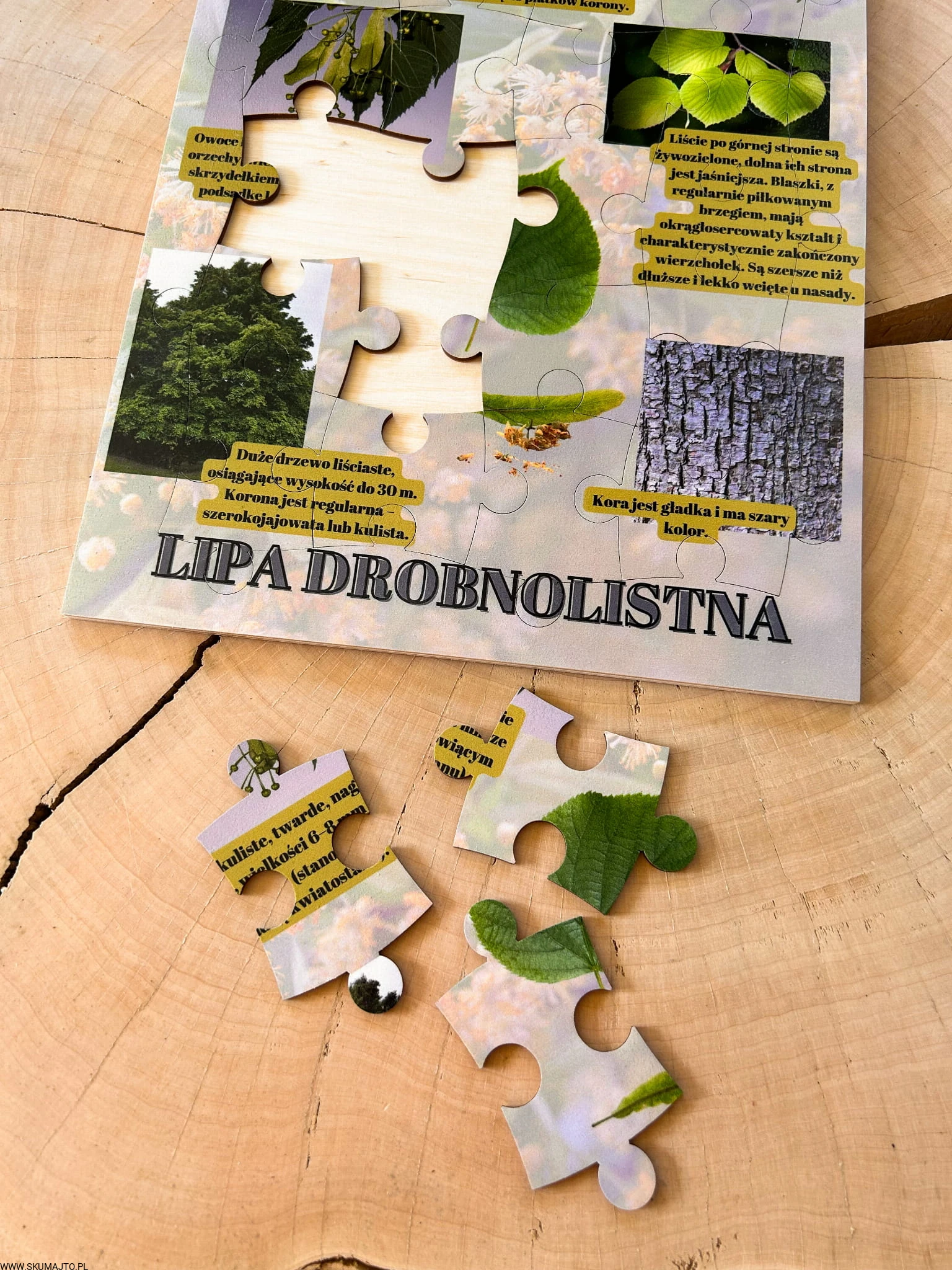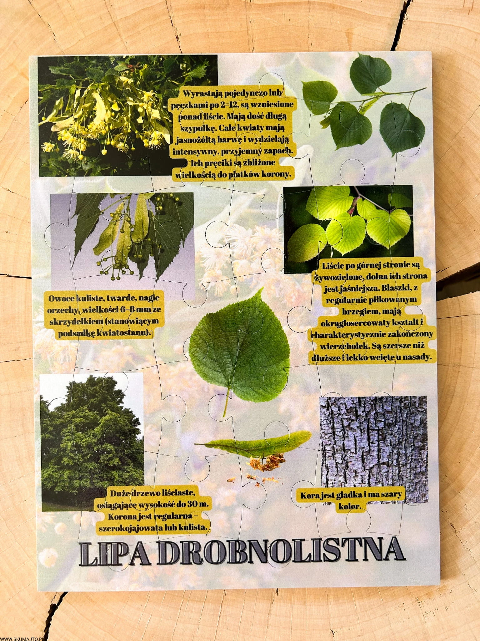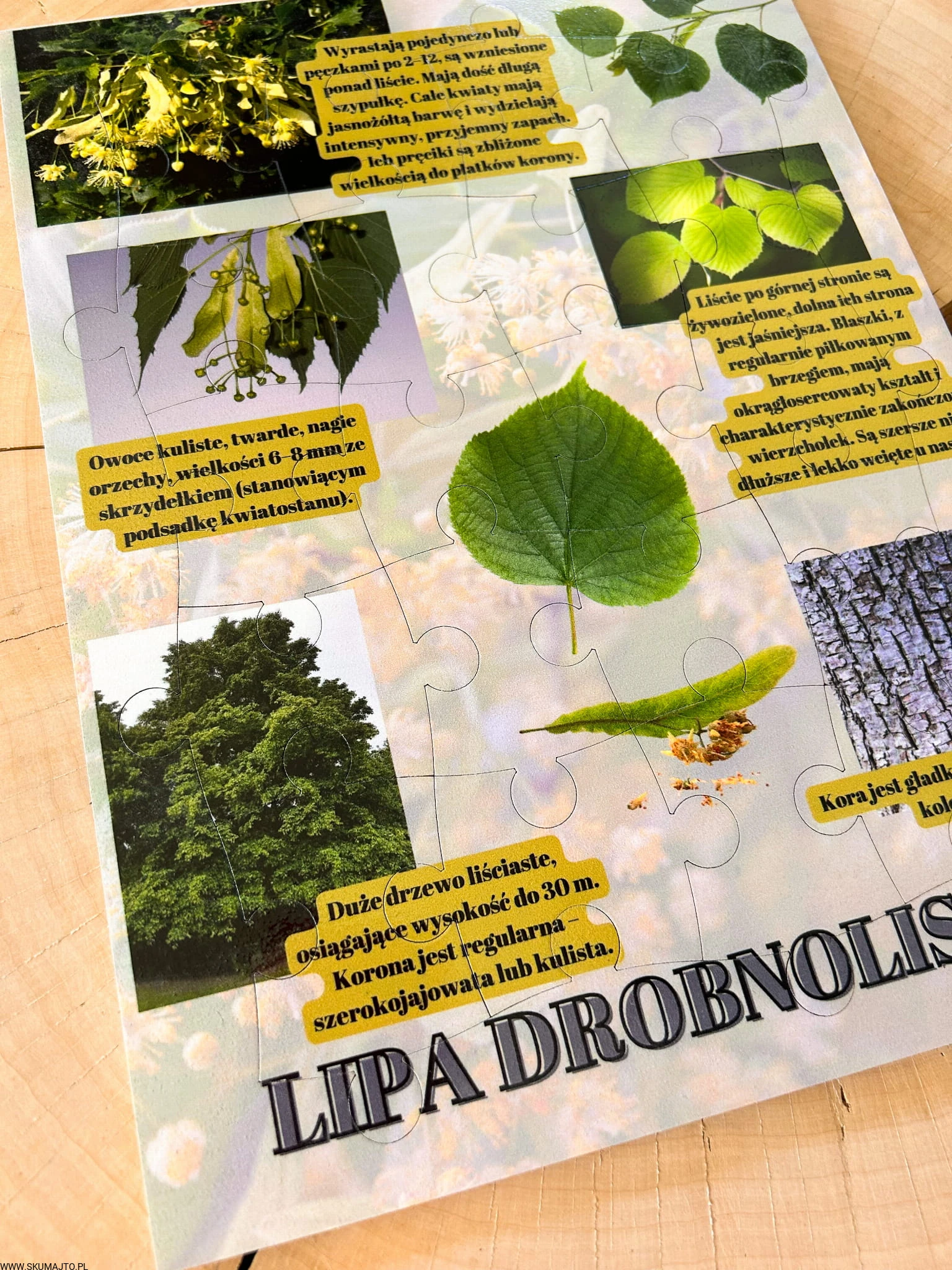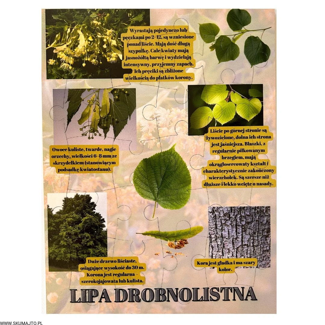 Zabawki edukacyjne, nauka przez zabawę: Nasza układanka to nie tylko zabawa, to także cenna lekcja o lipie drobnolistnej. Dzieci poznają różnorodność tego drzewa i dowiadują się fascynujących faktów, rozwijając jednocześnie swoje umiejętności.