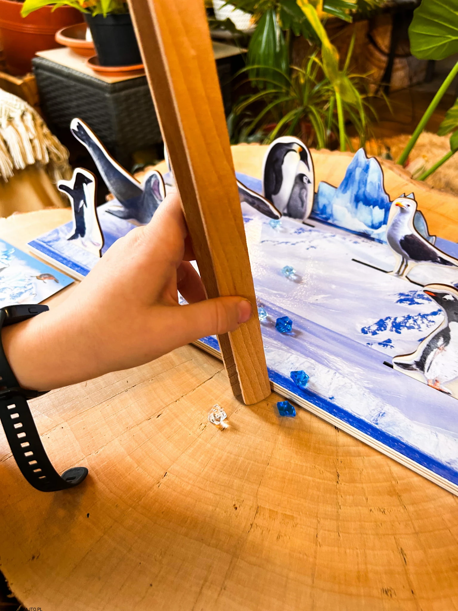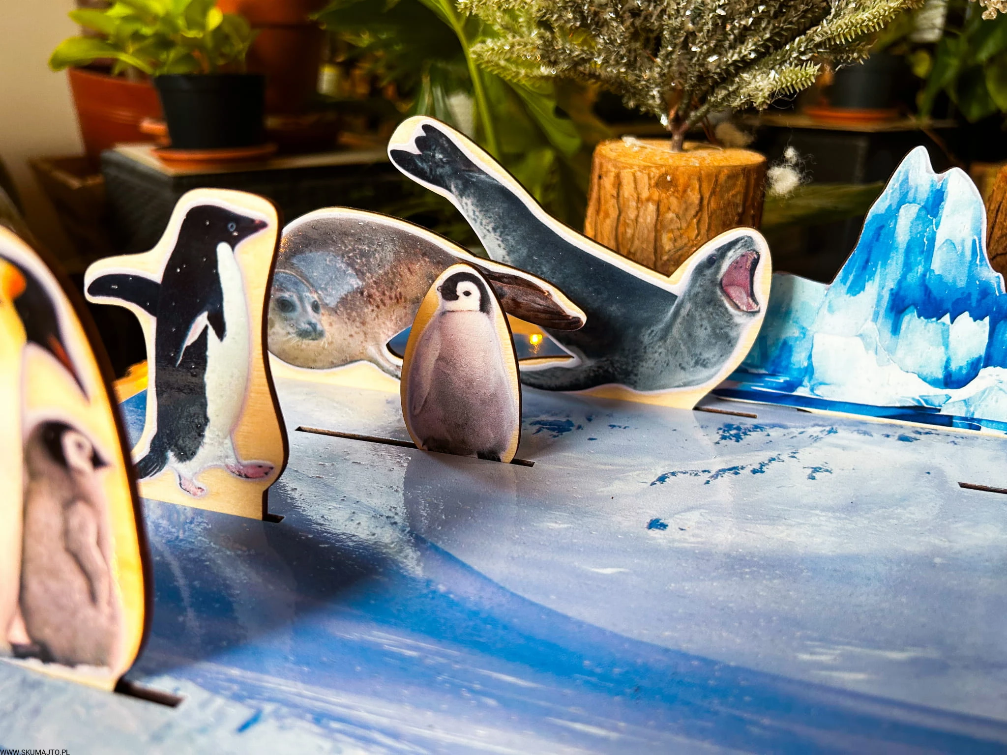 - Edukacja przyrodnicza – dzięki realistycznym elementom i scenerii dziecko poznaje świat Antarktydy, jego mieszkańców i środowisko naturalne.